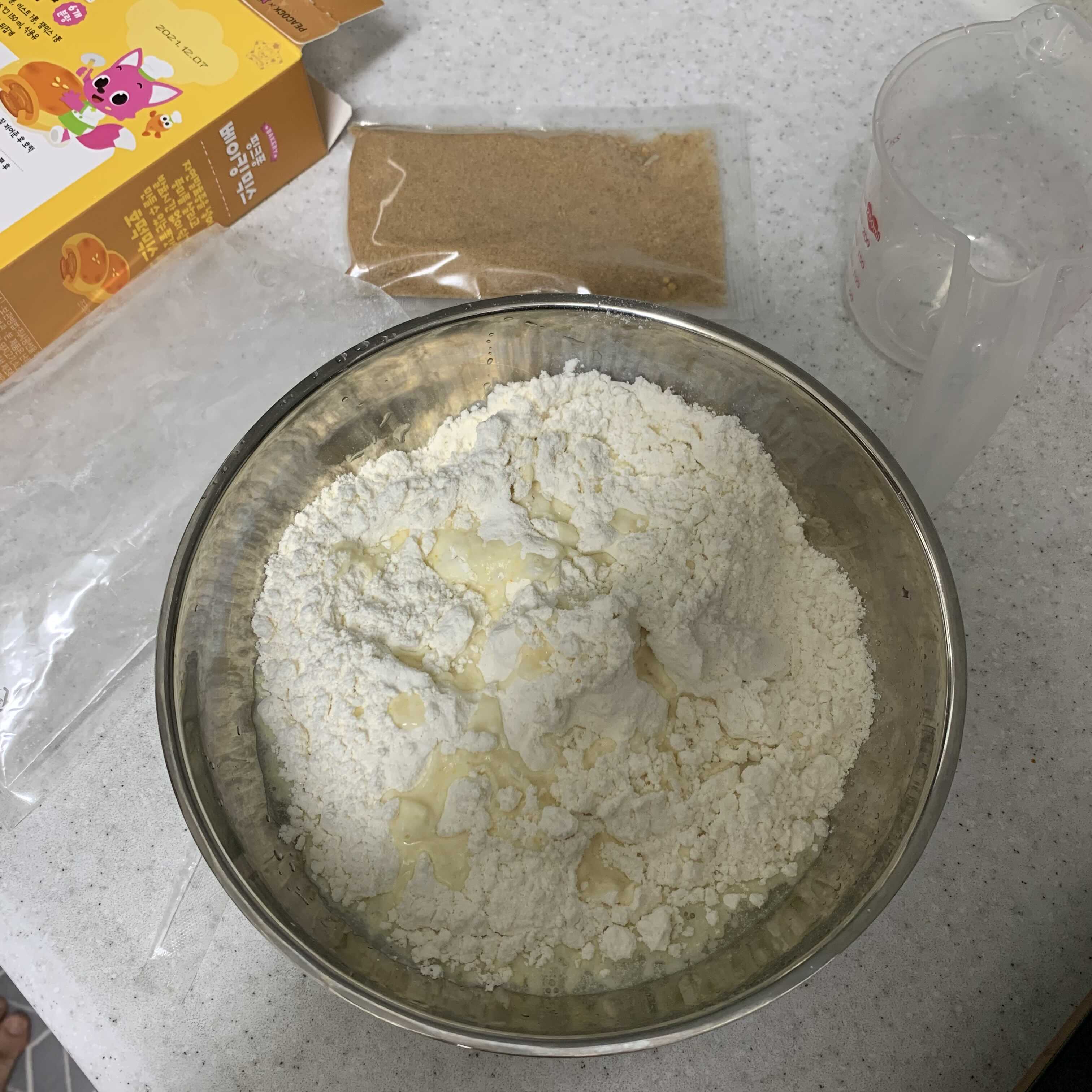 지금부터 시작입니다. 반죽을 섞으면 저런 반죽이 됩니다.