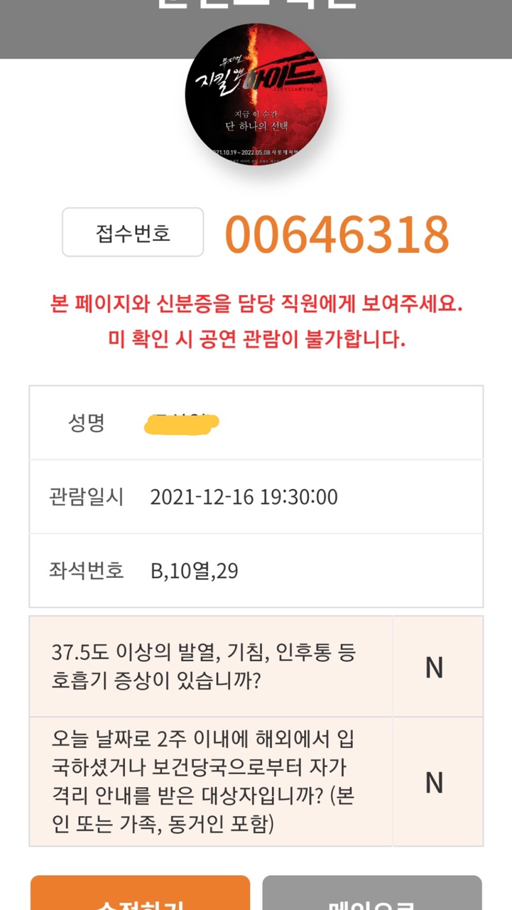 이렇게 철저하게 관리하니 공연을 보는 동안에도 안심이 되었습니다.