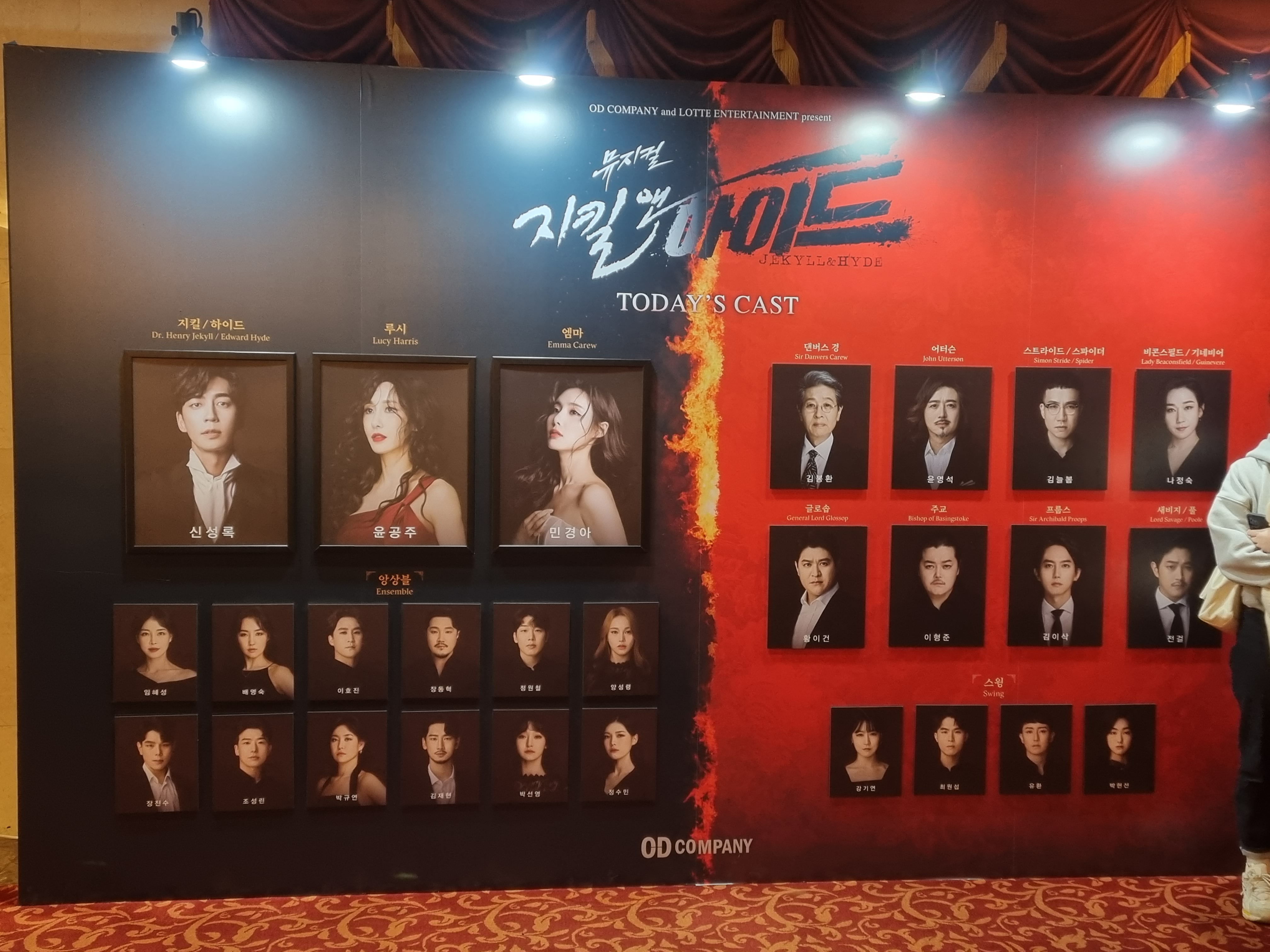 제가 공연보러 갔을 때 Today's cast 지킬/하이드 신성록 , 루시 윤공주, 엠마 안경아 배우님 이셨습니다.