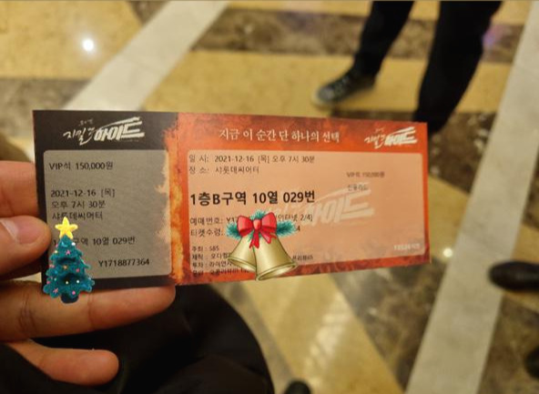앞으로 뮤지컬은 VIP석에서 봐야겠어요. 어떤 블로그 글 보니까 2층에서 보거나 하면 울림이 있기도 하고, 배우들도 잘 보이지 않는다는 의견이 있어서 저는 무조건 앞자리로 추천드립니다.