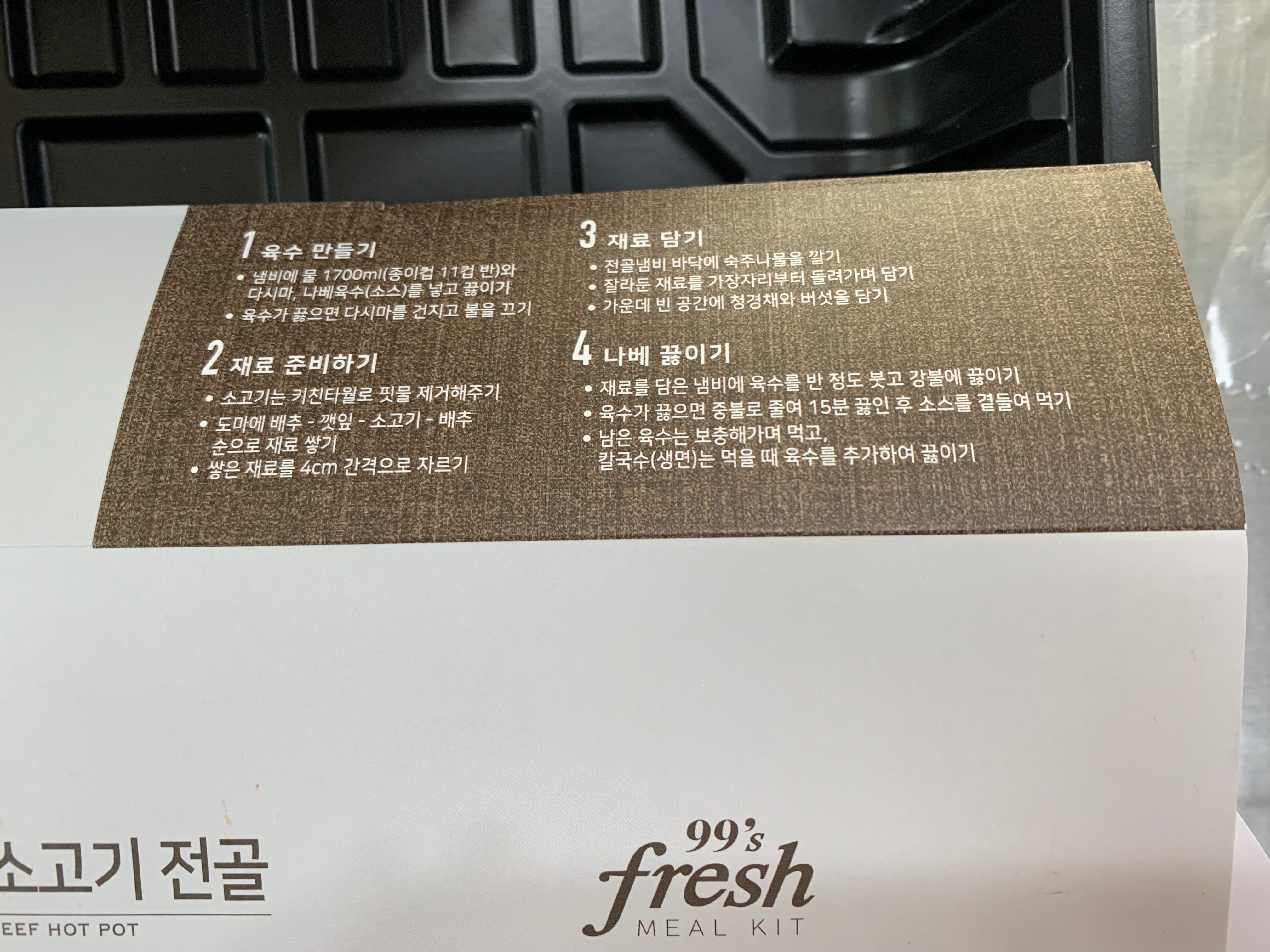 이마트 밀키트 하나를 사왔는데 99's fresh라고 적혀있습니다.
