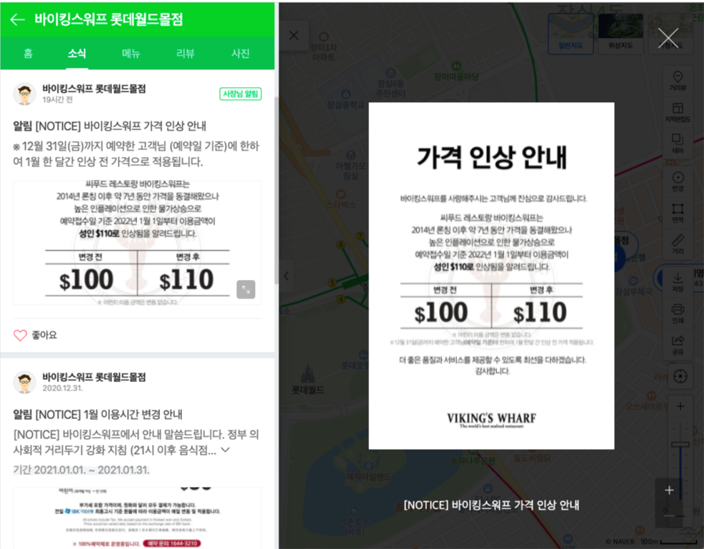 음식점 지점이 많습니다. 바이킹스워프 롯데월드몰점, 코엑스, 영등포, 광교 등 있는데 가시는 곳을 선택 후 전화를 합니다.