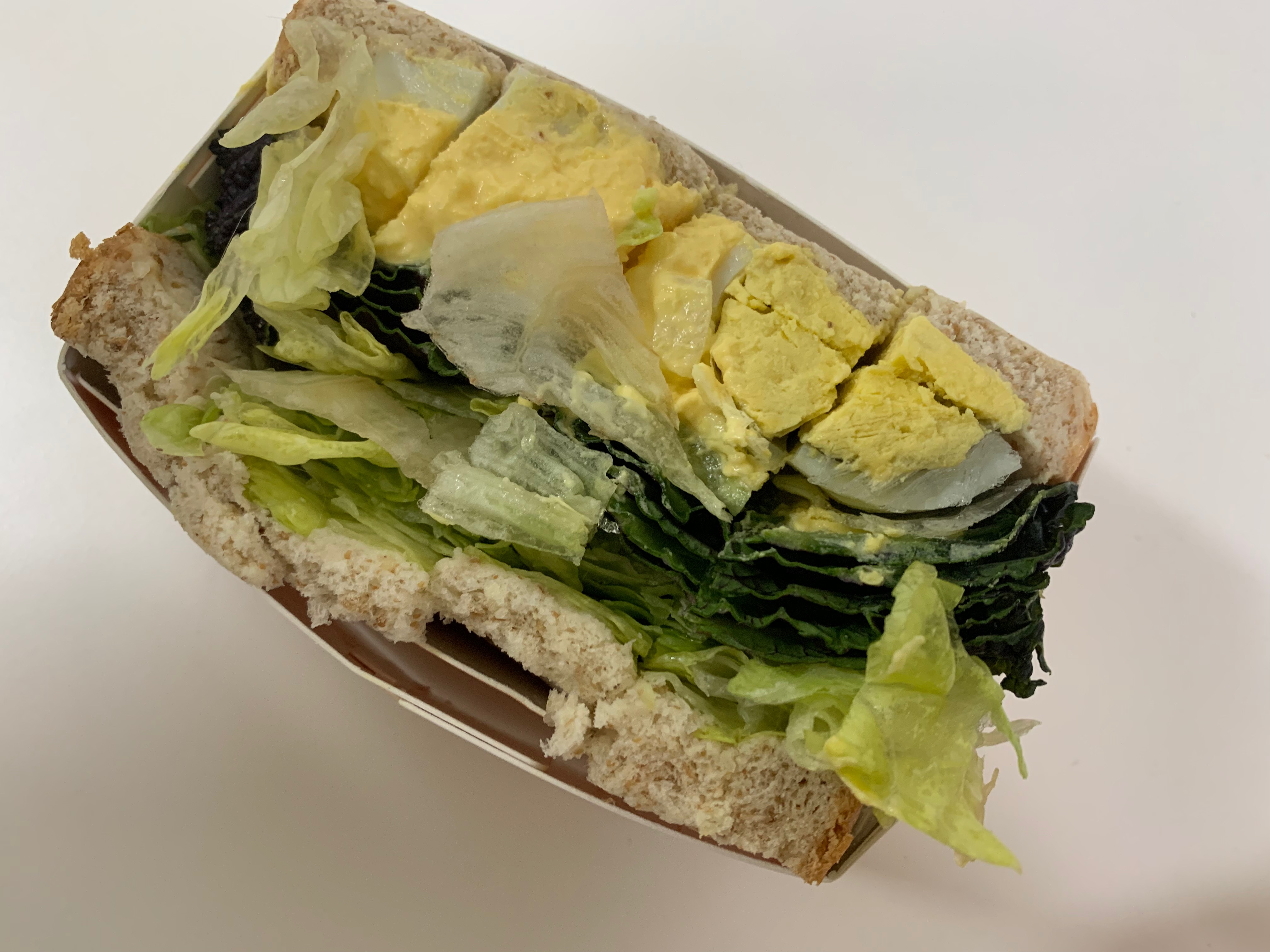 고소한 호밀빵 사이에 양상추와 각종 채소들이 들어있고 한입으로 먹을 수 없을만한 두께를 갖고 있습니다.