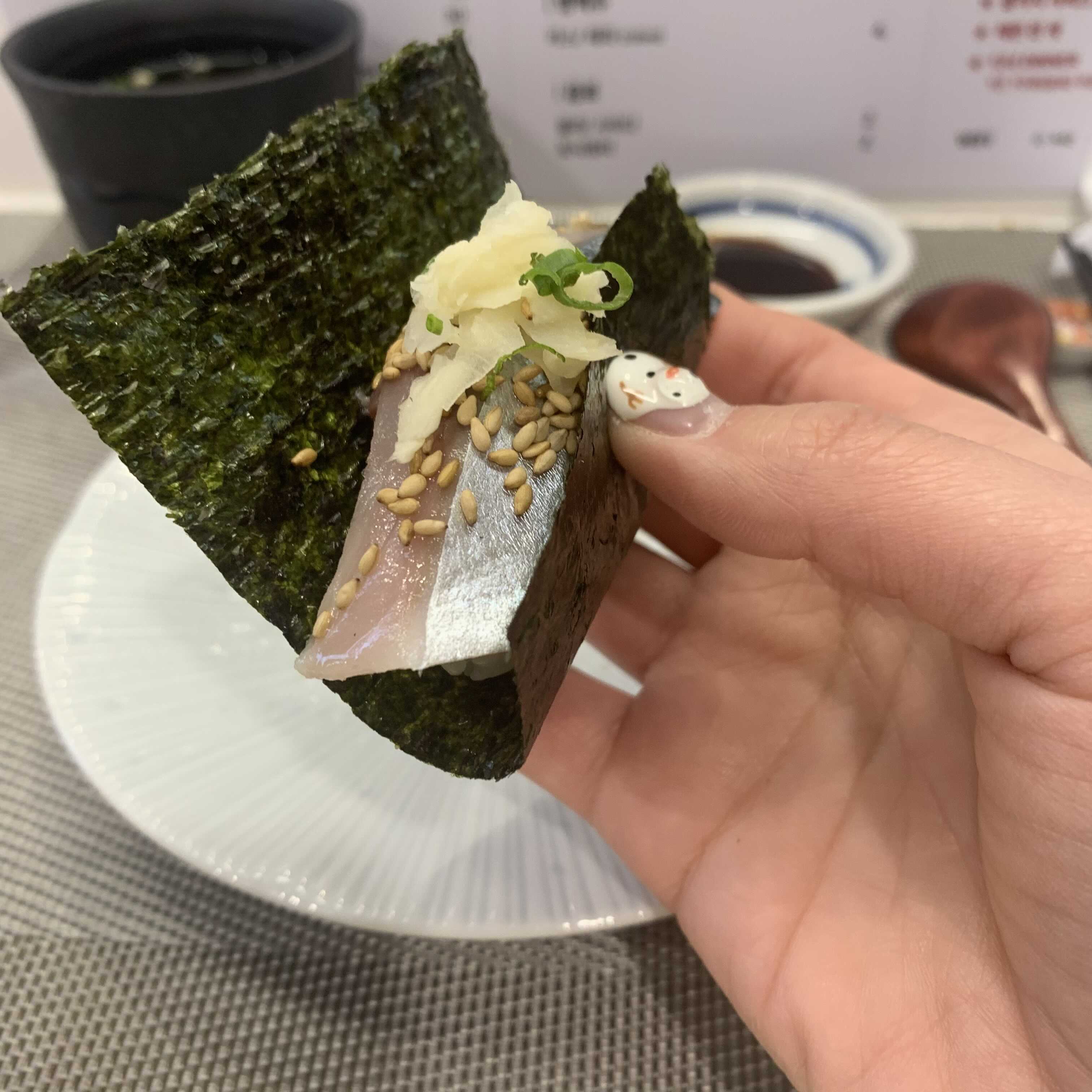 고등어초밥. 한입에 쏙 다 넣어야 한다고 하셨습니다!