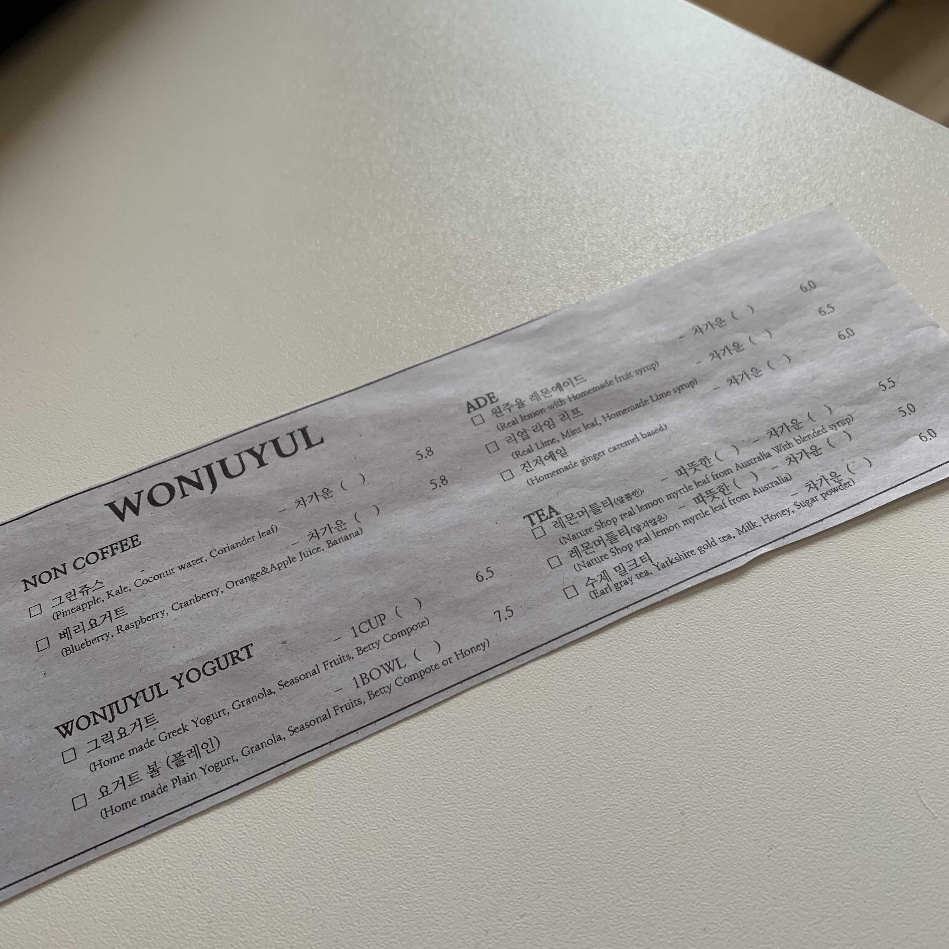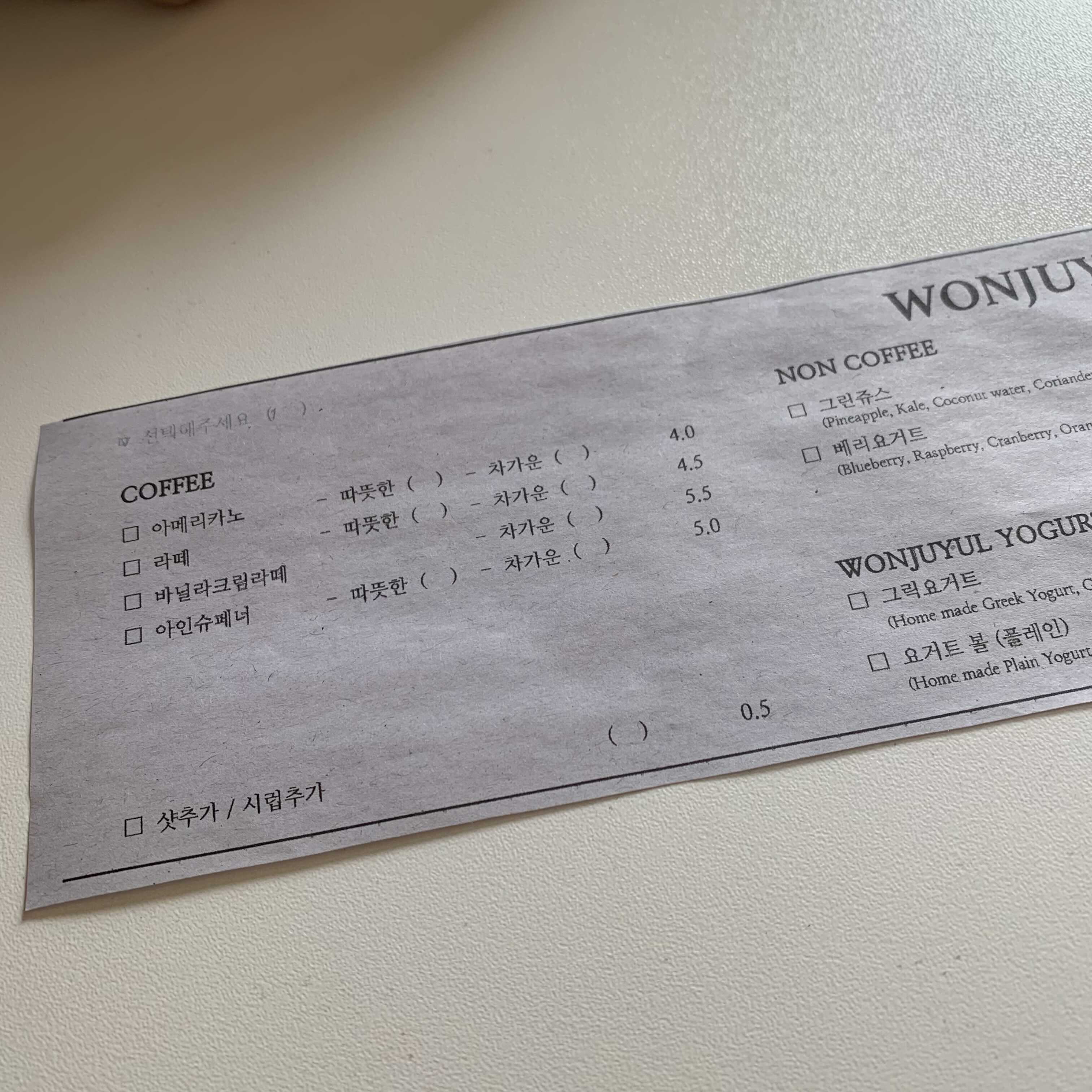 아날로그틱한 이 메뉴판... 여기에 연필로 체크하고 주문하면 됩니다.