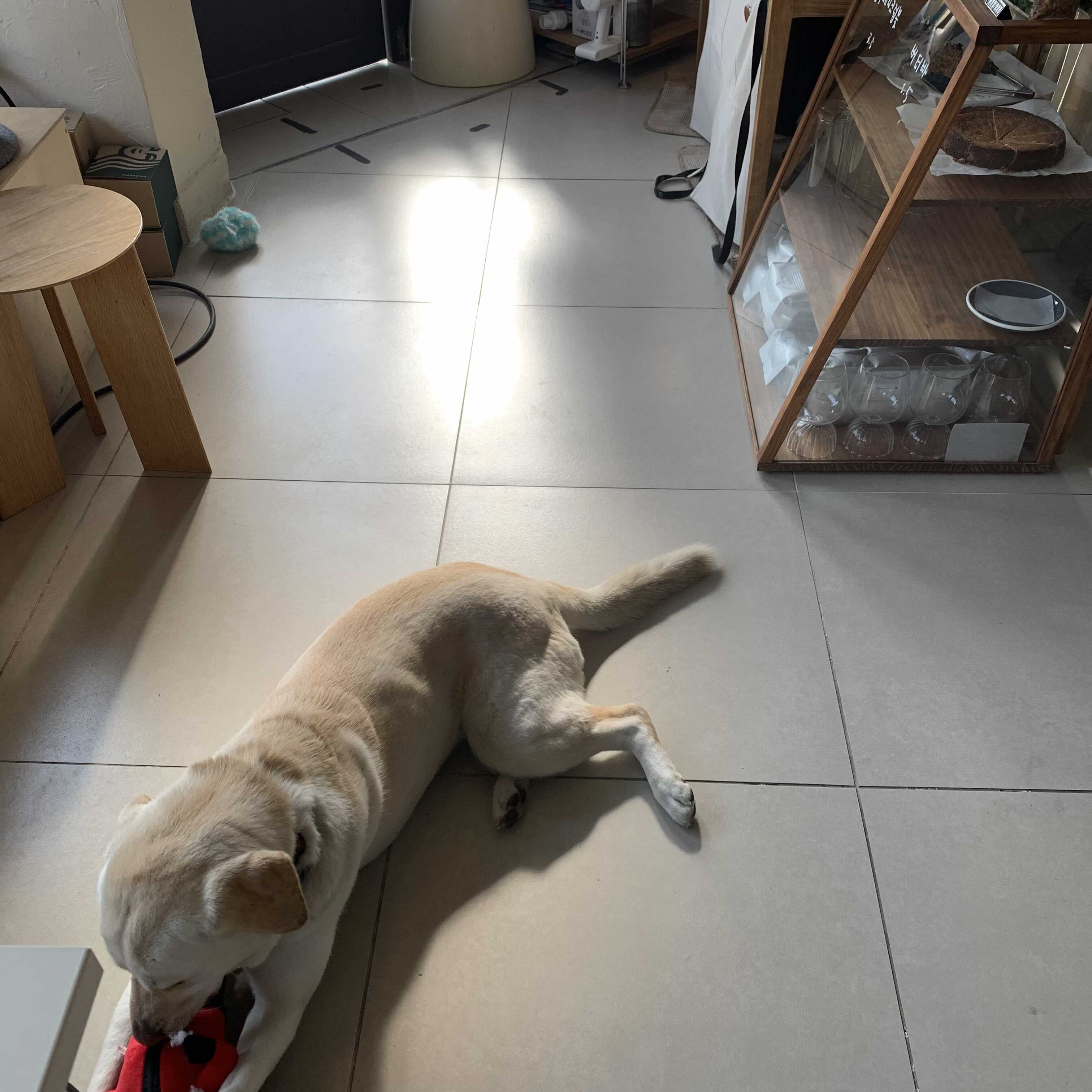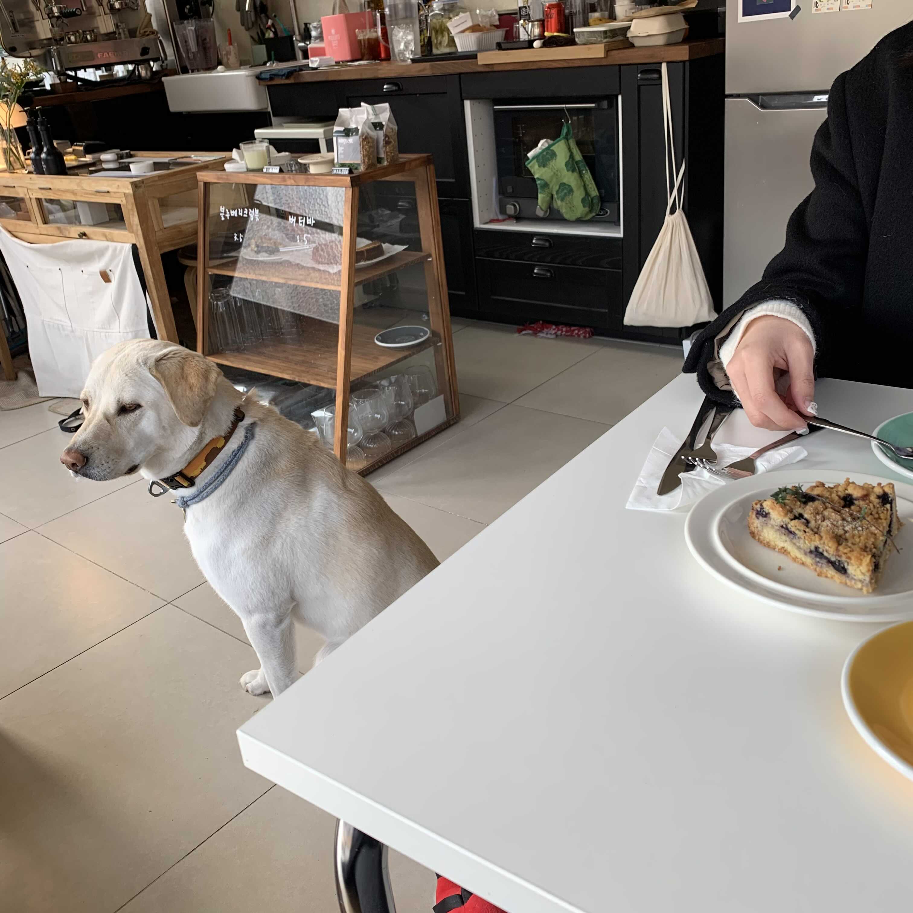 파이 강아지가 함께 있습니다! 반려동물 동반할 수 없는 카페입니다. 파이는 이 곳의 마스코트이자 지킴이인 것 같습니다 :)