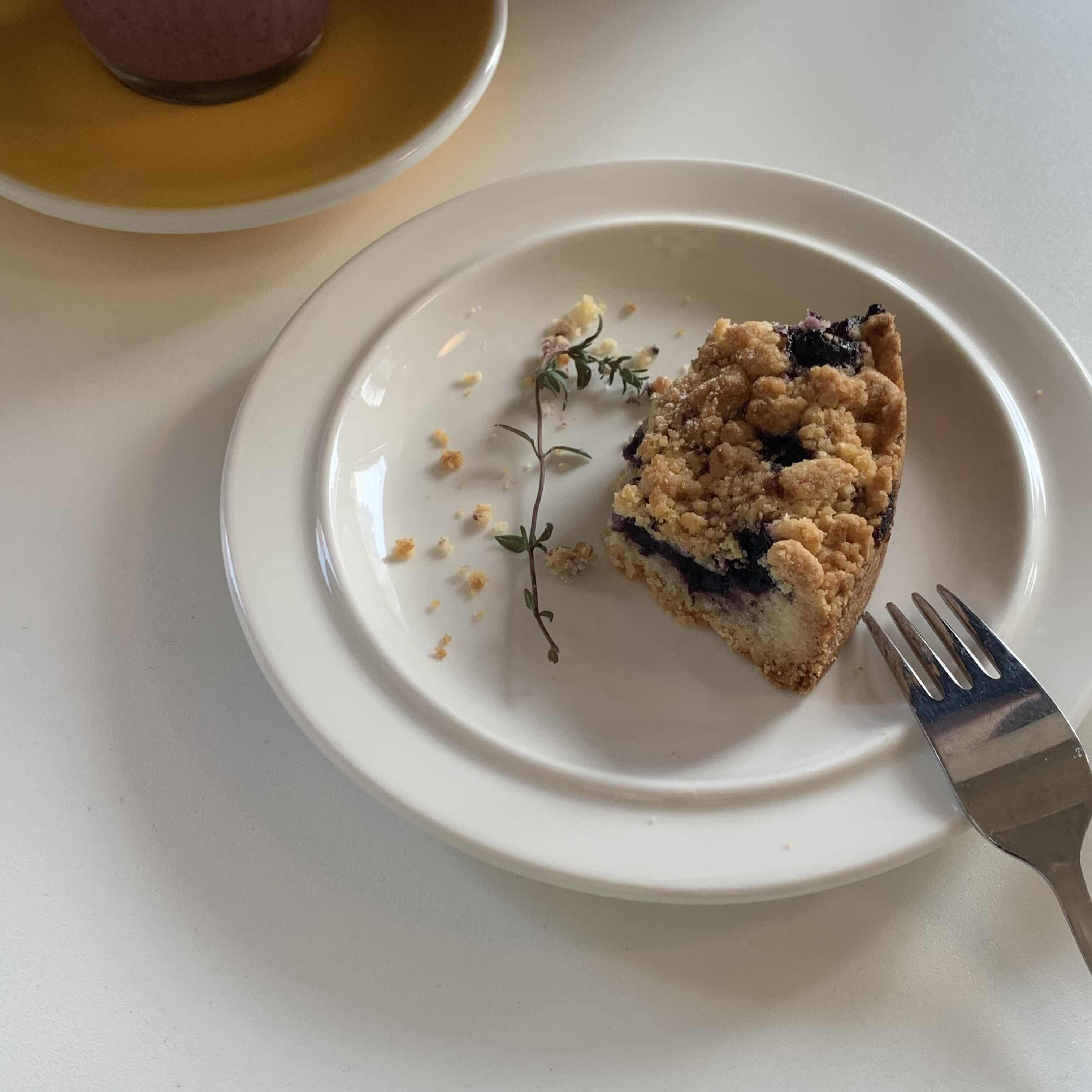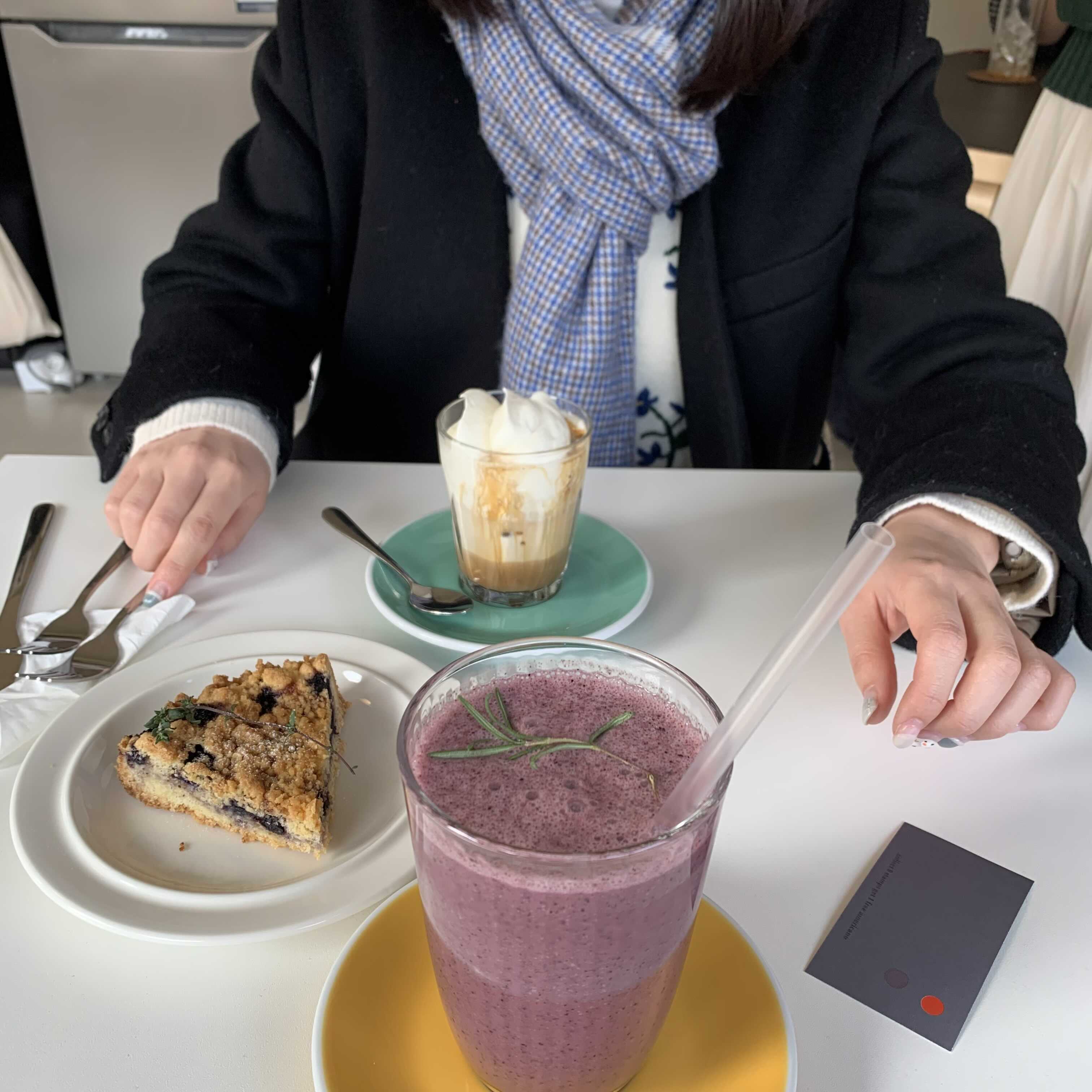 달달한거 못 끊어... 언제쯤 아메리카노를 원샷할 수 있는 어른이 될까요? 블루베리 크럼블은 소보루가 올려져 있어