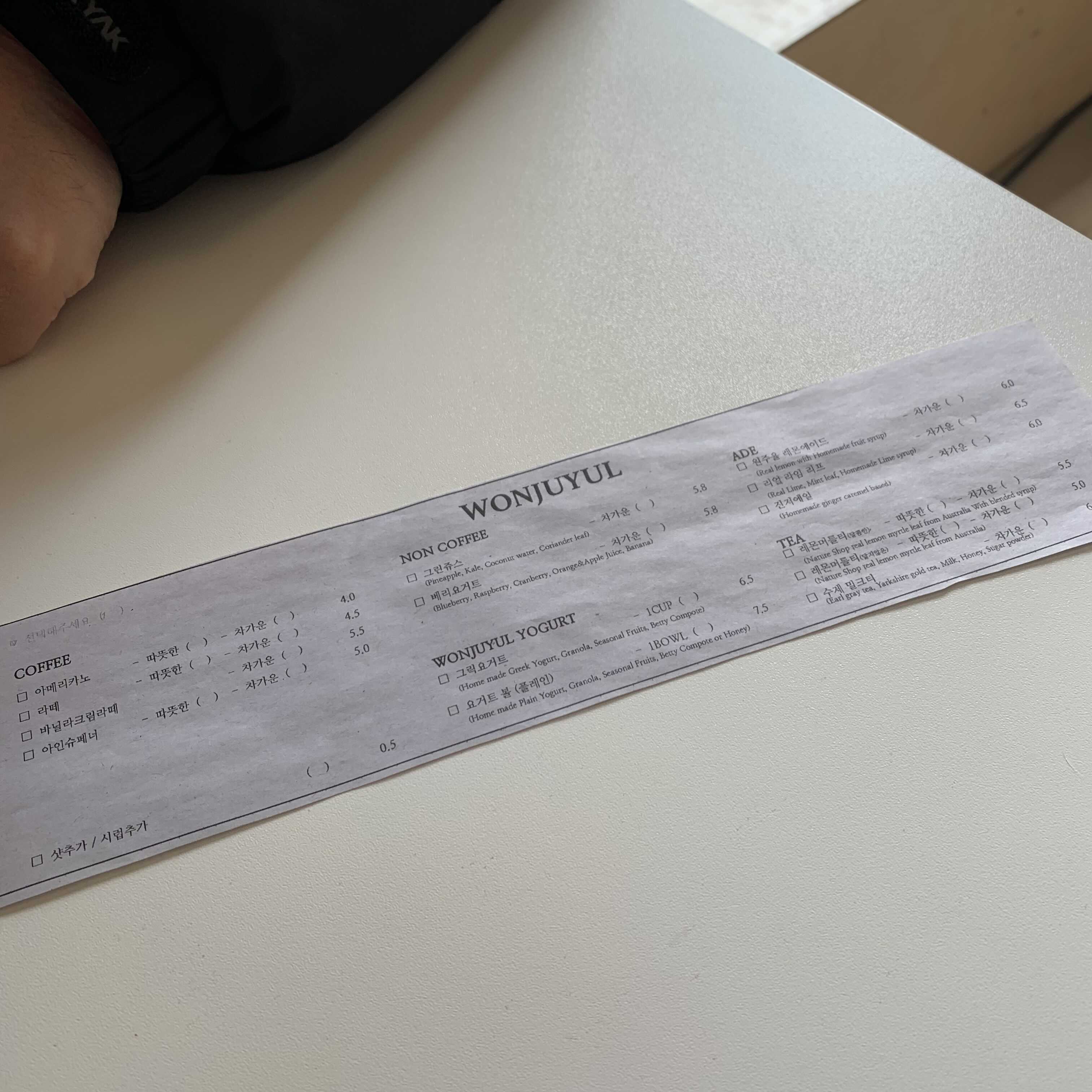 그리고 저는 너무 좋았던게, 이 종이에 체크할 수 있도록 해주시니 메뉴를 바로 가까이에서 볼 수 있고 자세히 볼 수 있어서 너무 좋았습니다.