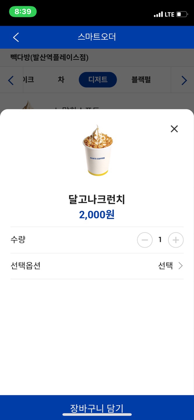 백종원 카페로 유명한 빽다방에서 아이스크림 포장해왔어유,