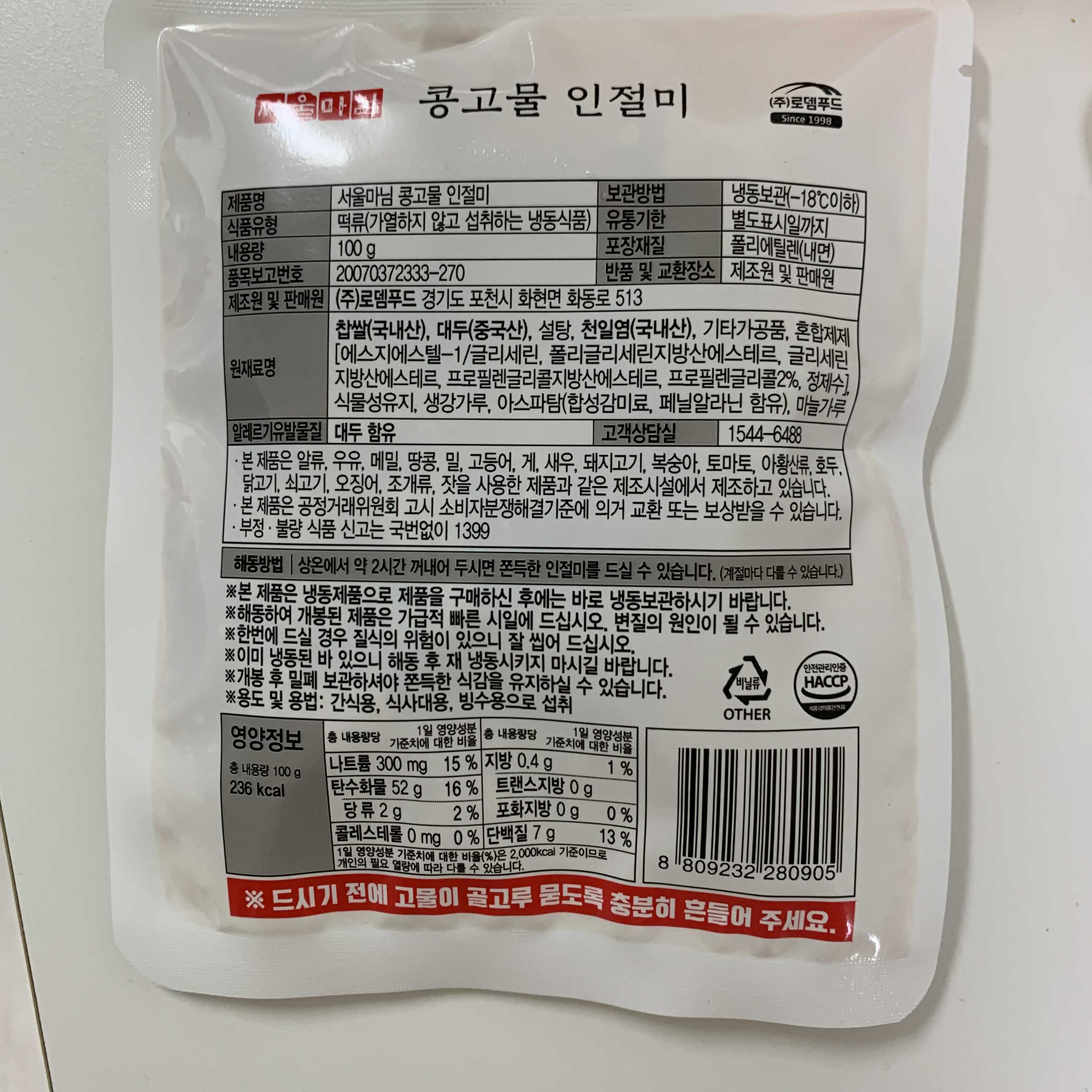 냉동보관이고 국내산 찹쌀을 사용했다고 합니다!