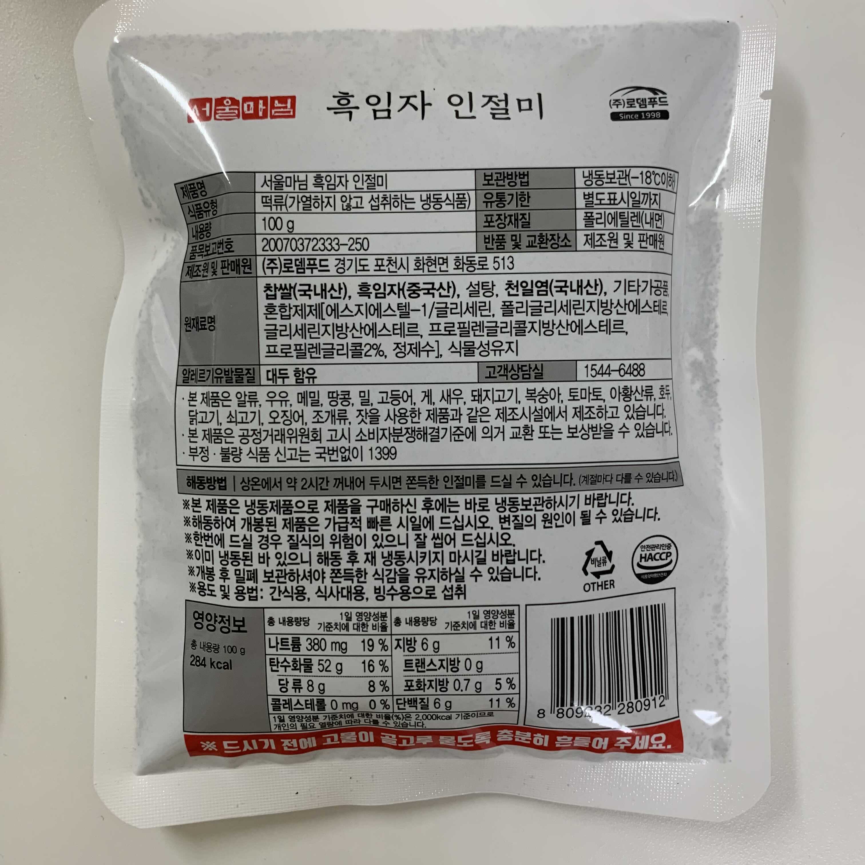 흑임자떡도 해동 후 먹었는데, 인절미랑은 다른맛이라 두개 같이 먹으니 조합이 괜찮았어요!