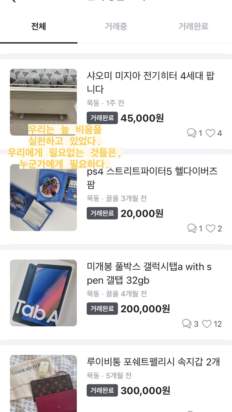 당근마켓에 올릴 때는 기간을 정해 놓은 후 이번 주말까지 안팔리면 처분하자! 라는 생각으로 올린다.
