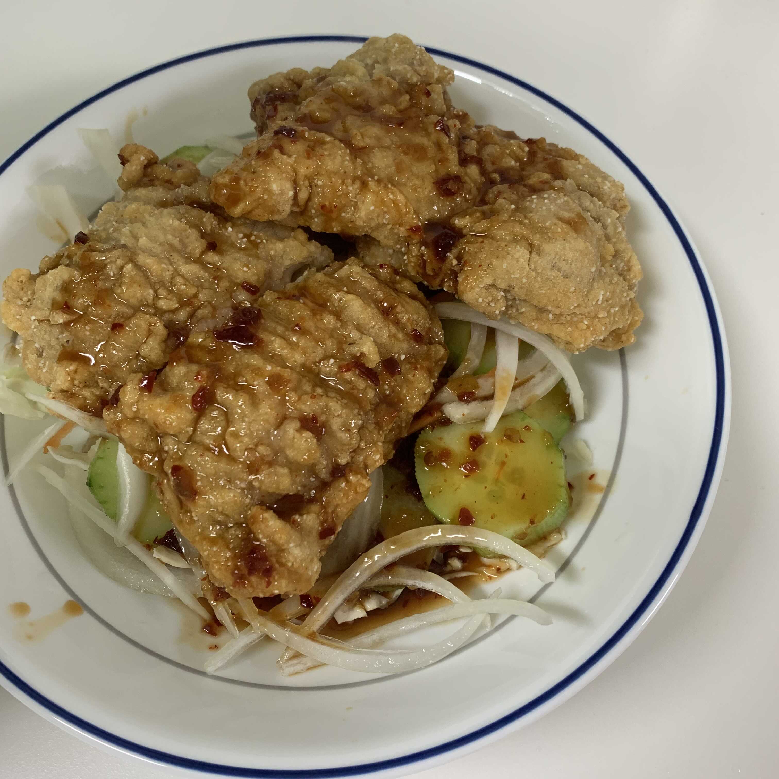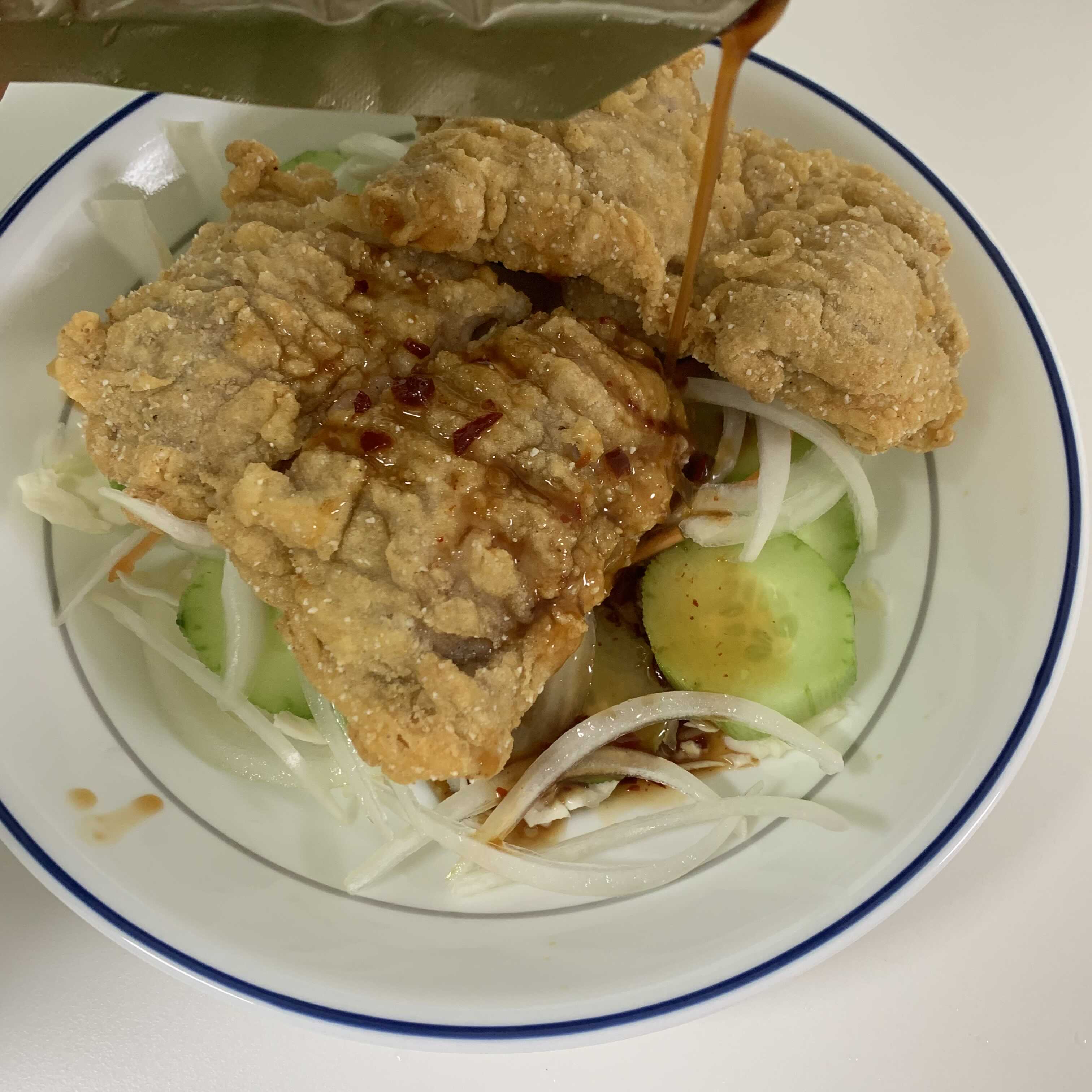 바삭바삭하고 야채인 양파를 함께 먹으니,