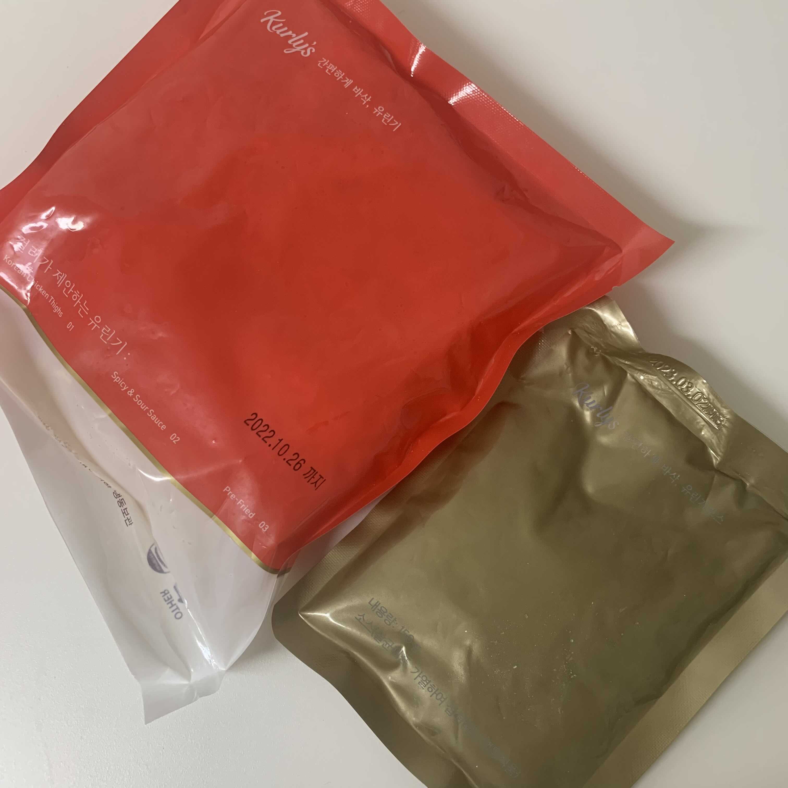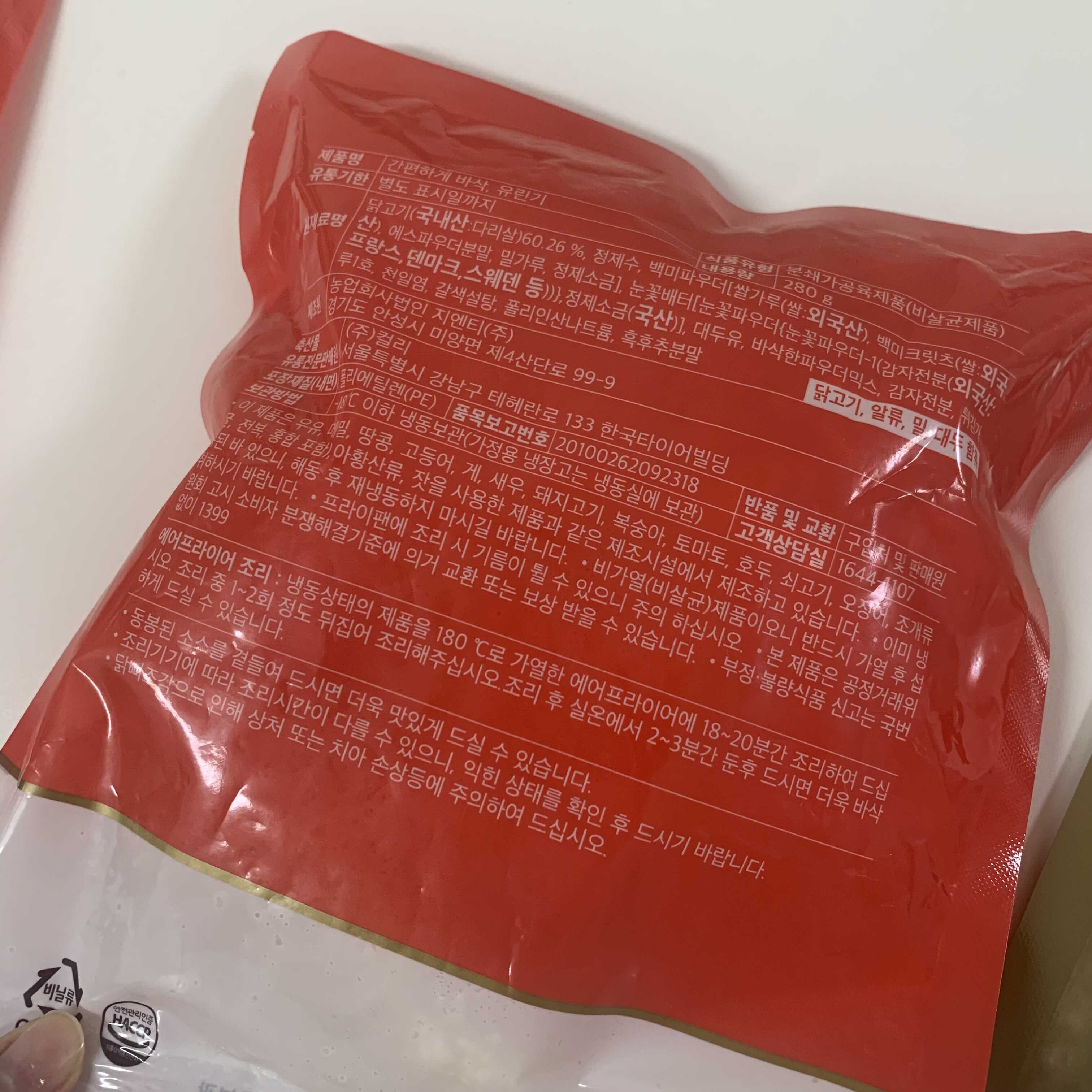 소스는 매콤새콤하고 감칠맛을 살린 초벌로 한번 튀겨내어 에어프라이어로 간편하게 조리하면 된다고 겉봉투에 적혀있습니다!