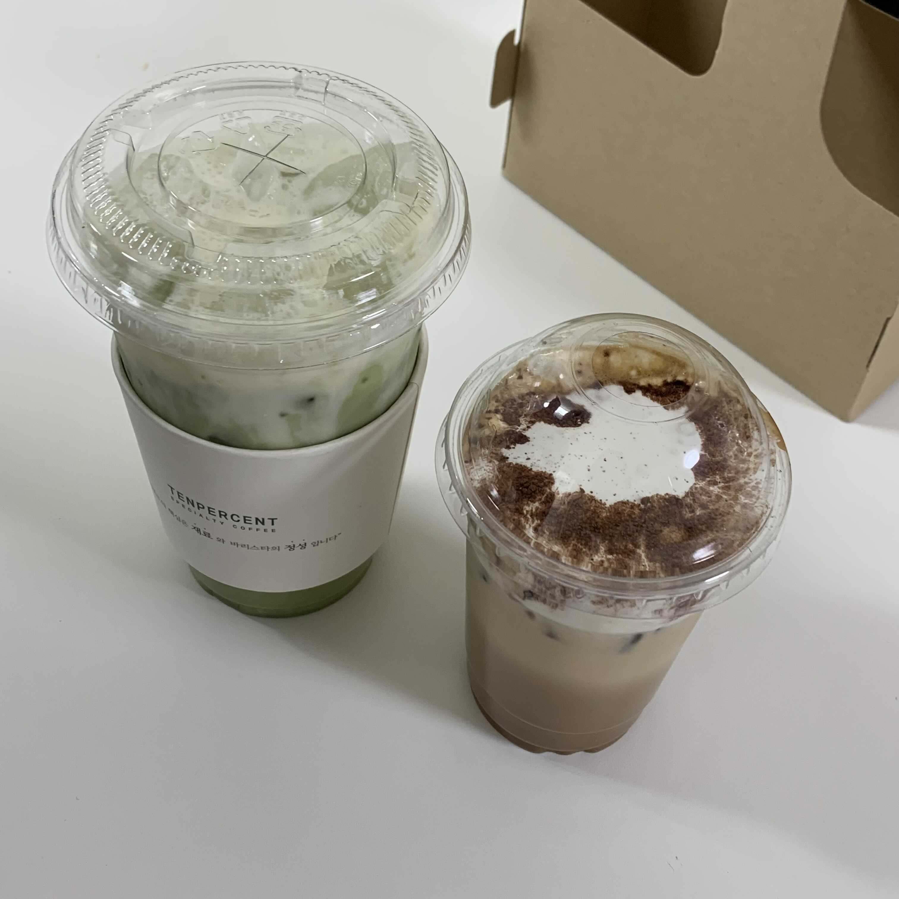 왼쪽은 크림치즈말차, 오른쪽은 텐라떼입니다.