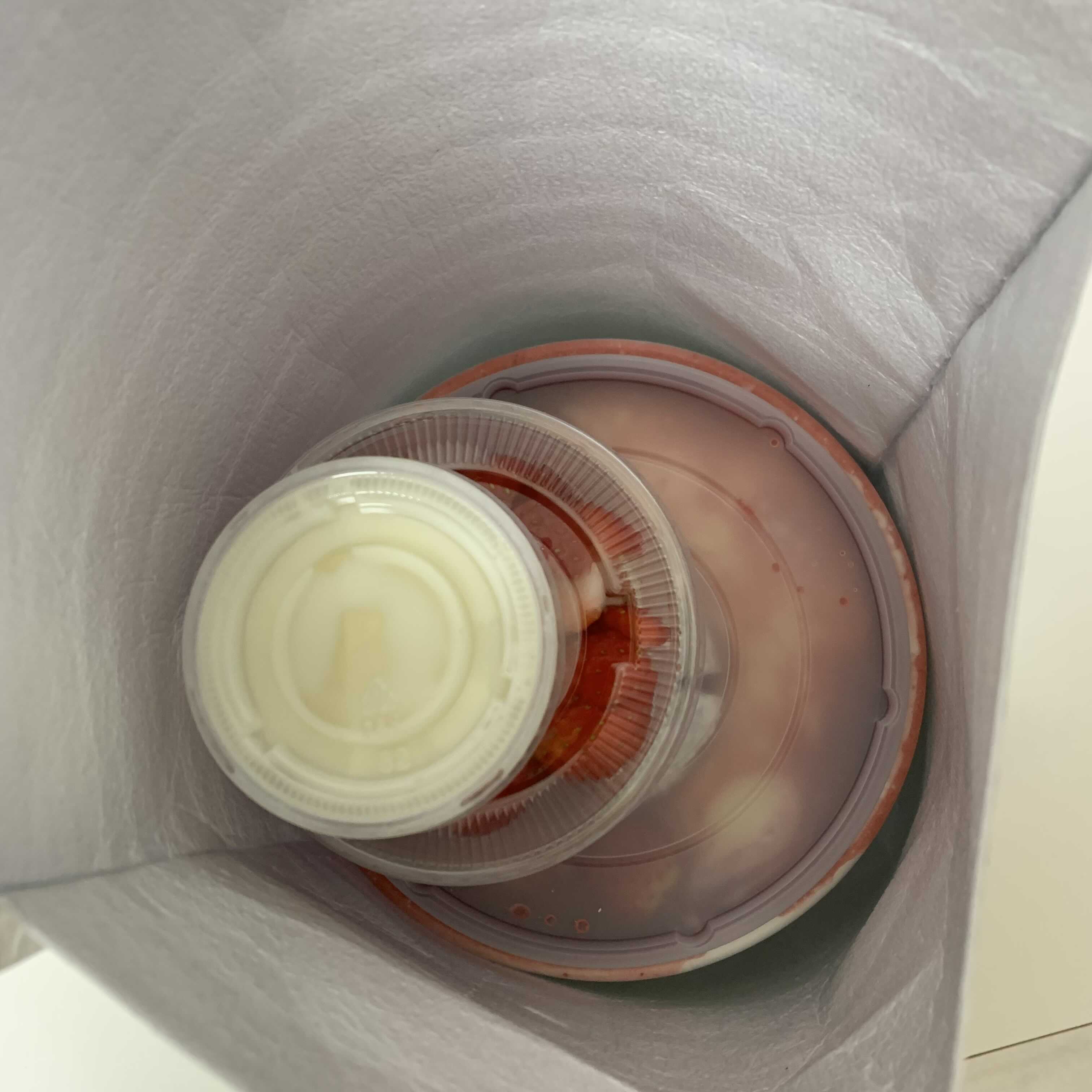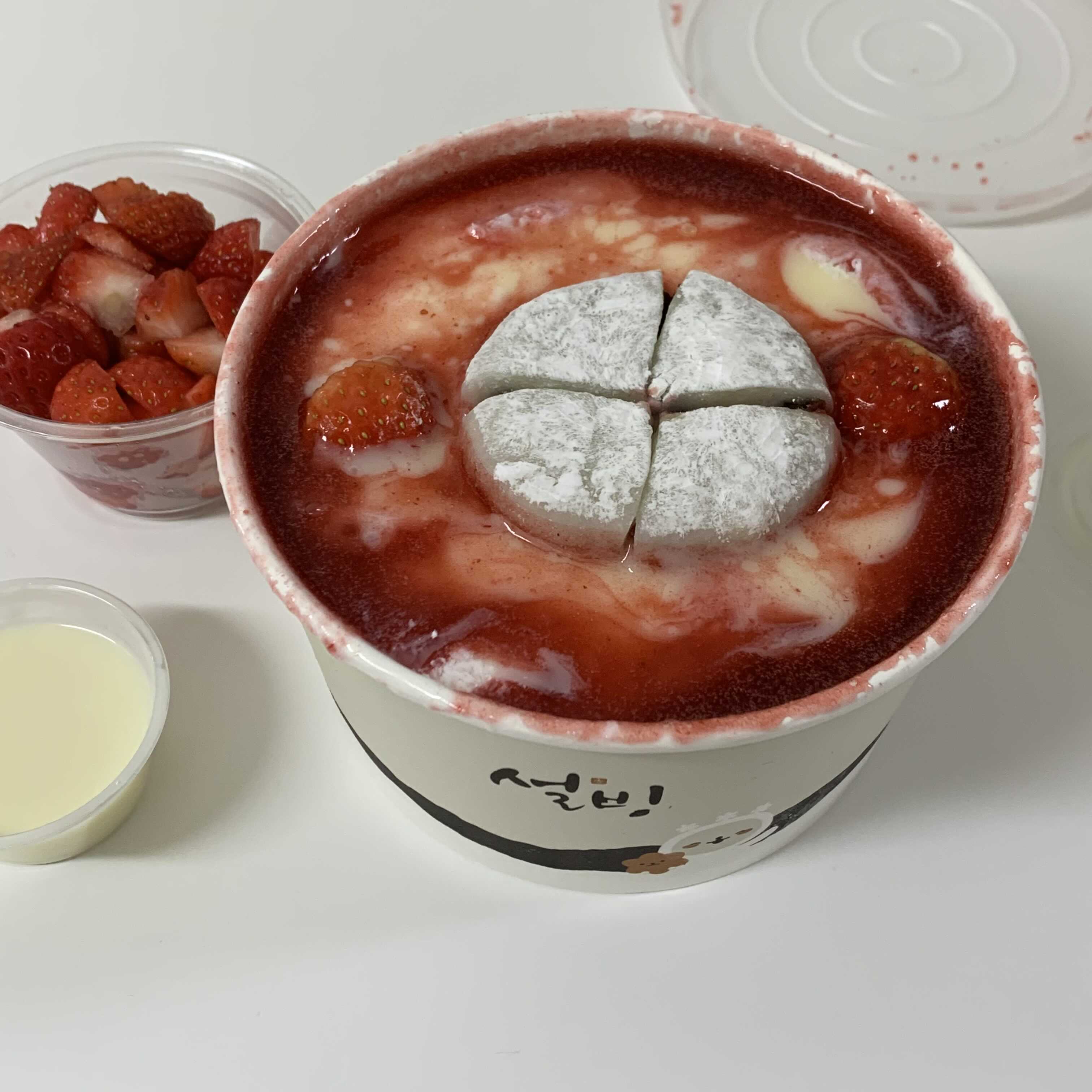 빙수 한그릇과 연유와 딸기 이렇게 세가지 포장이 되어 있었어요.