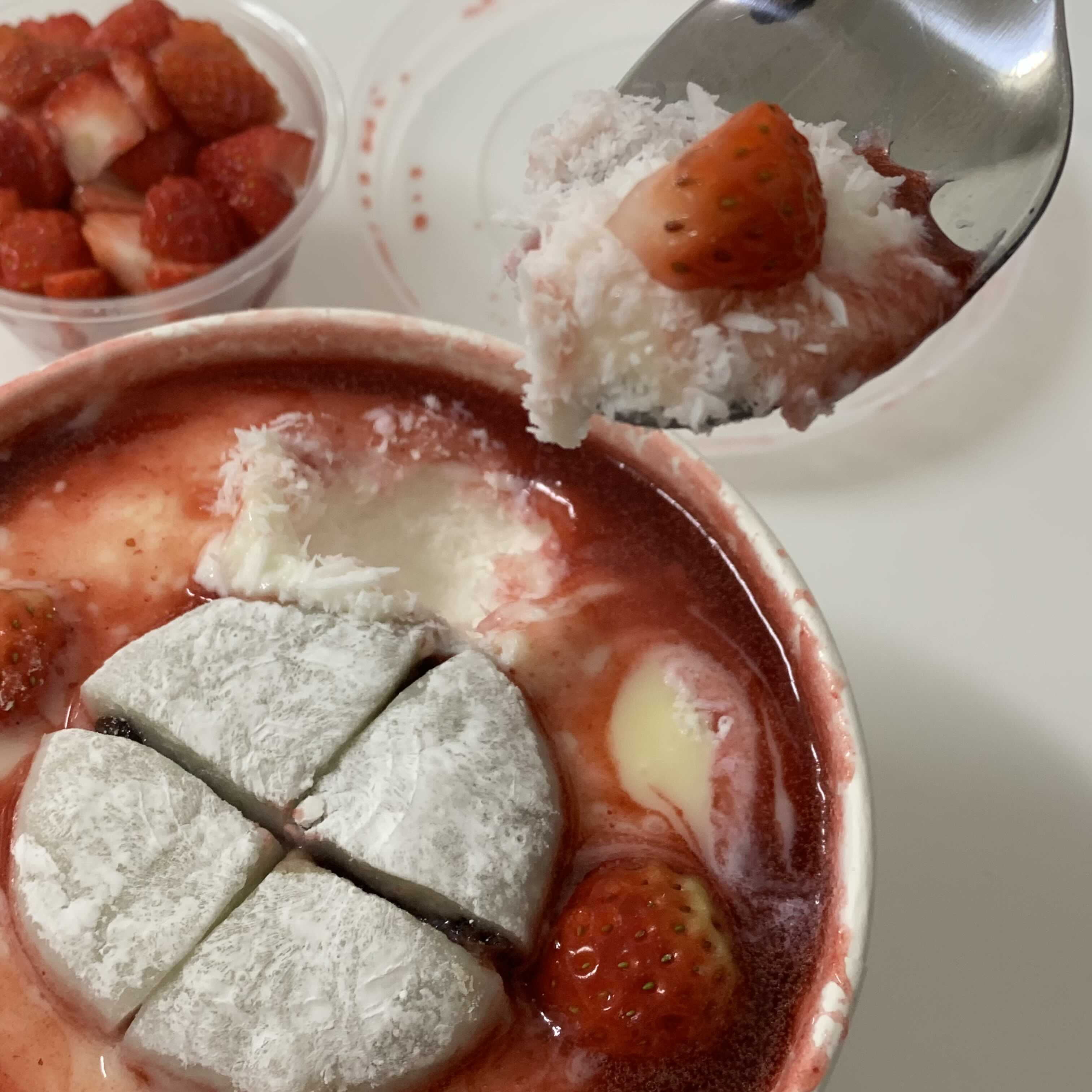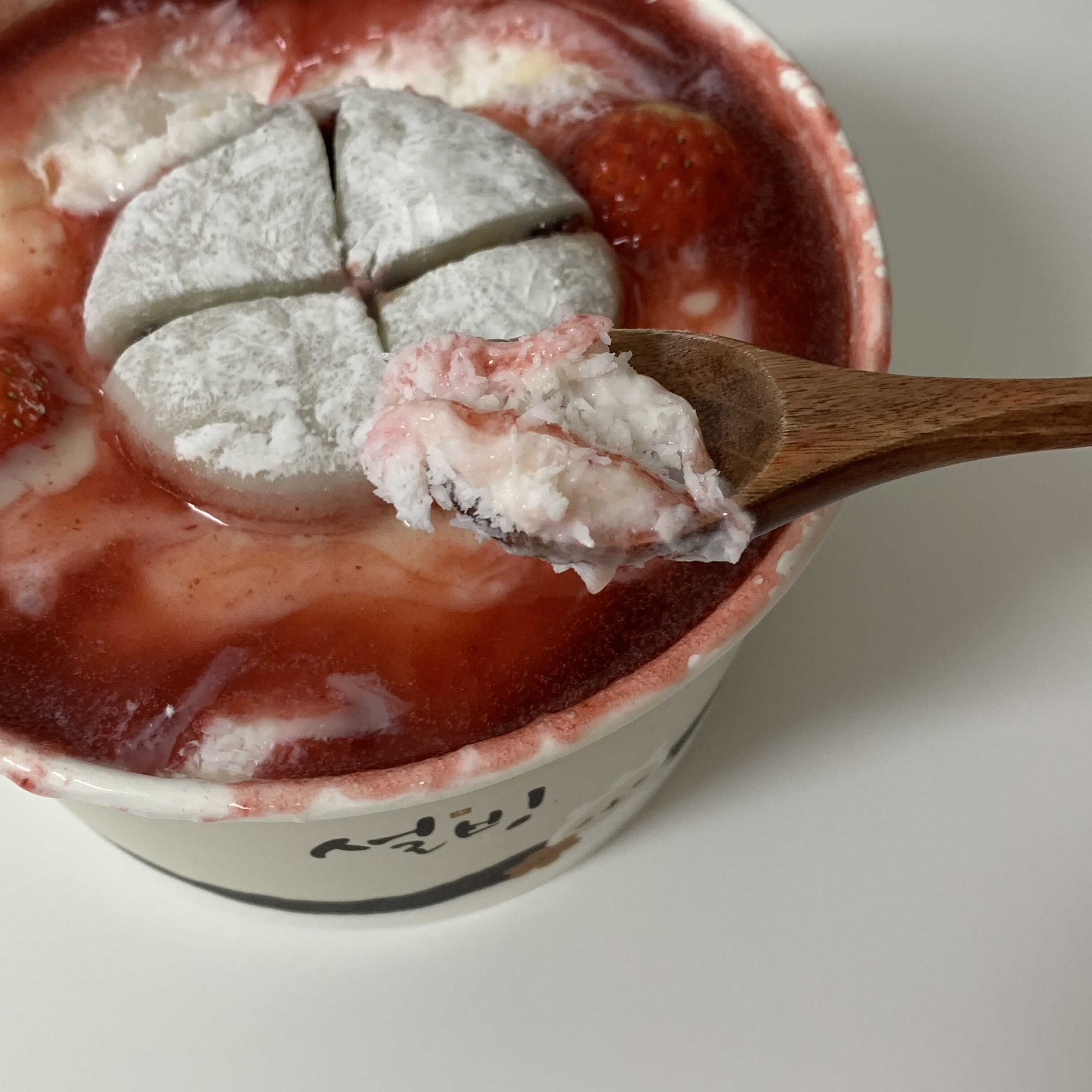 설빙에서는 보통 메론빙수나, 인절미빙수 많이 먹었는데 딸기 빙수는 처음이에요!