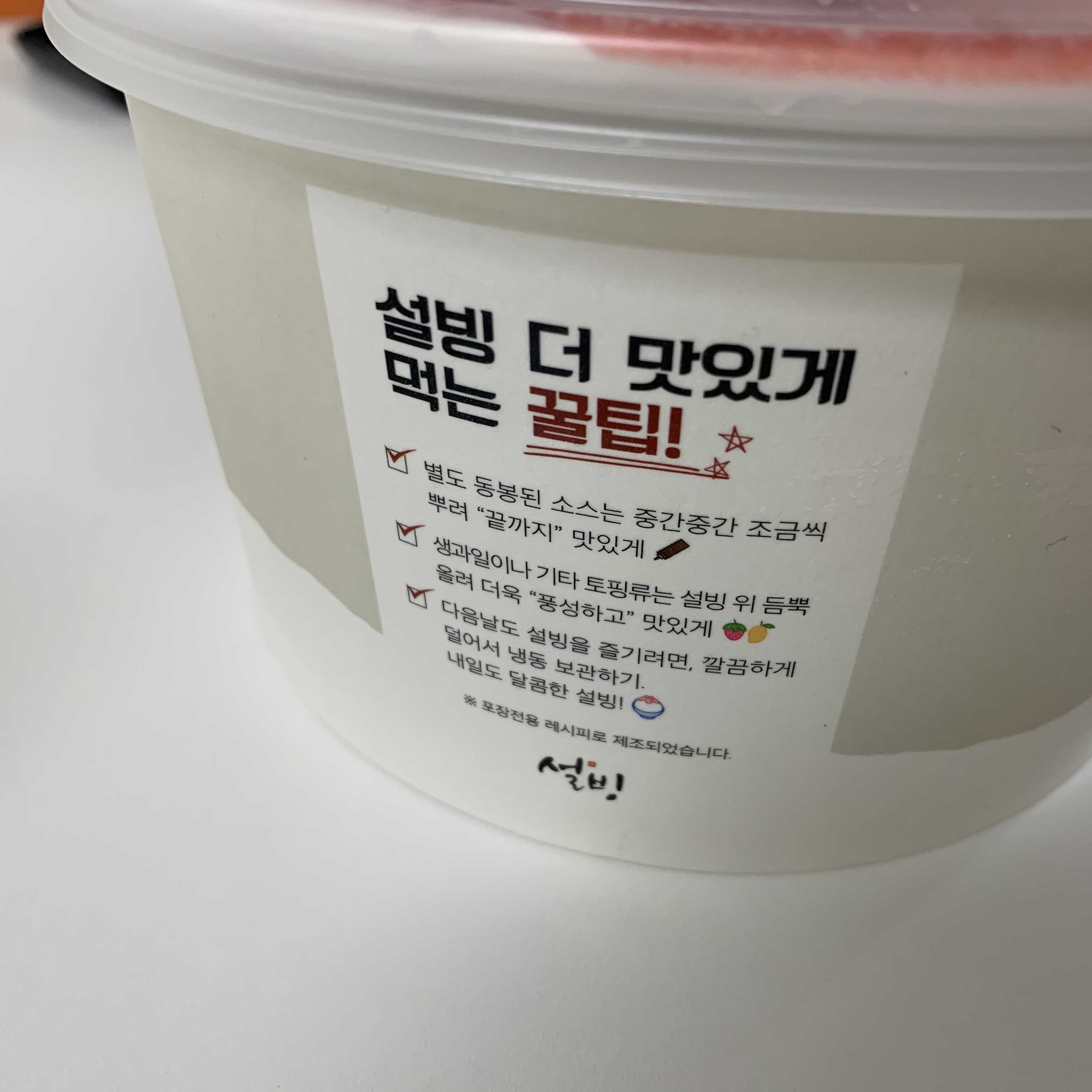 그래서 안전하게 집에서 먹기 위해 설빙에서 빙수를 포장 했는데요~~