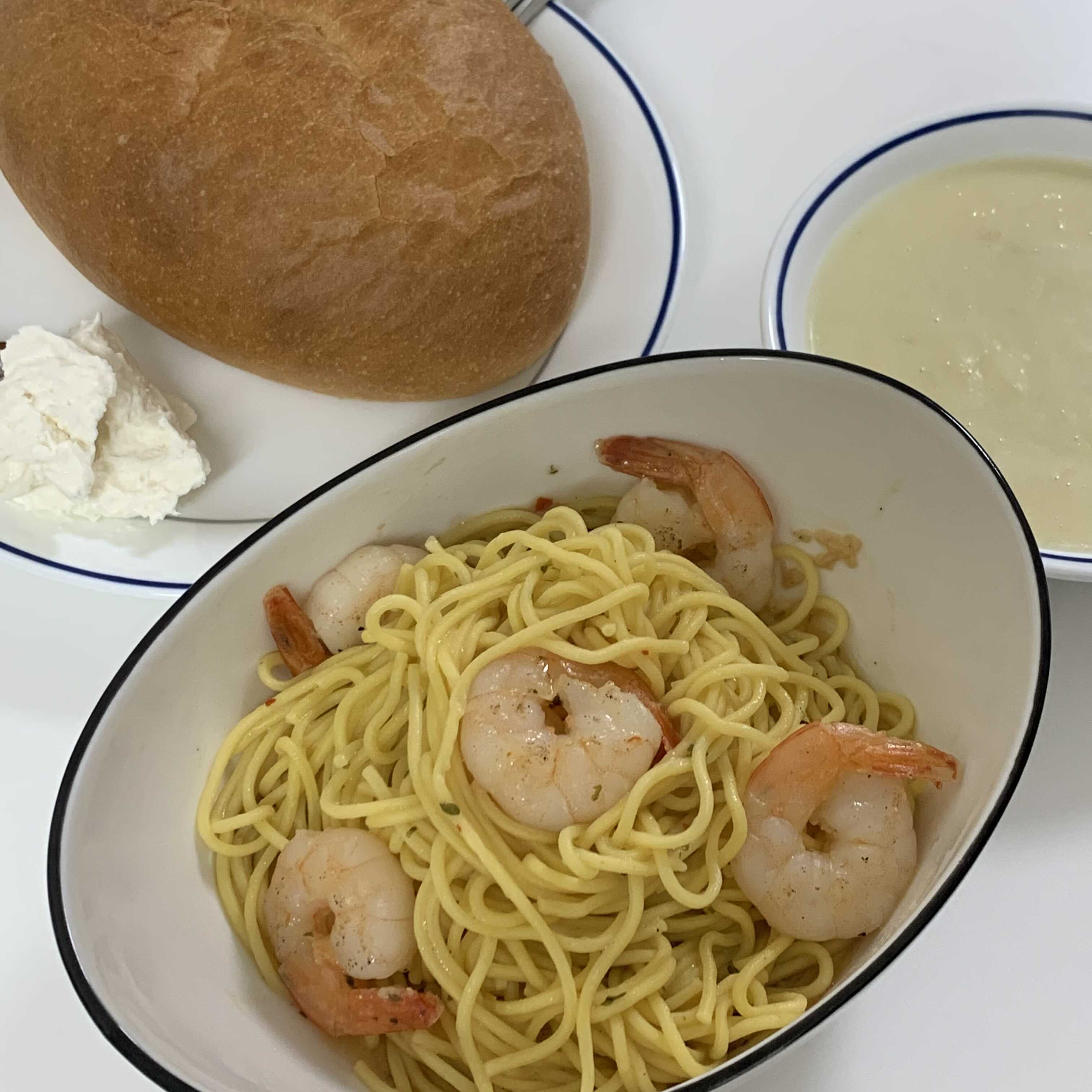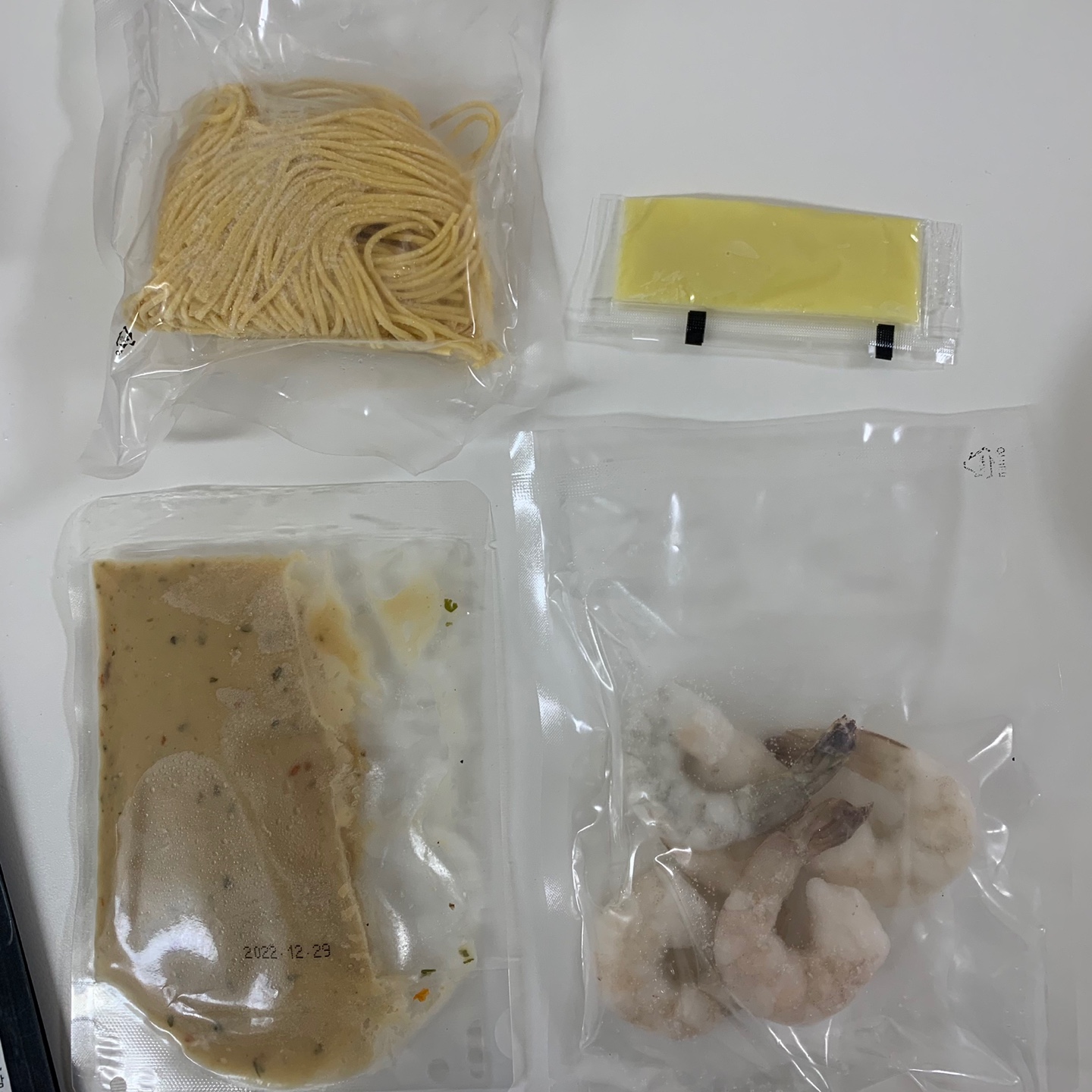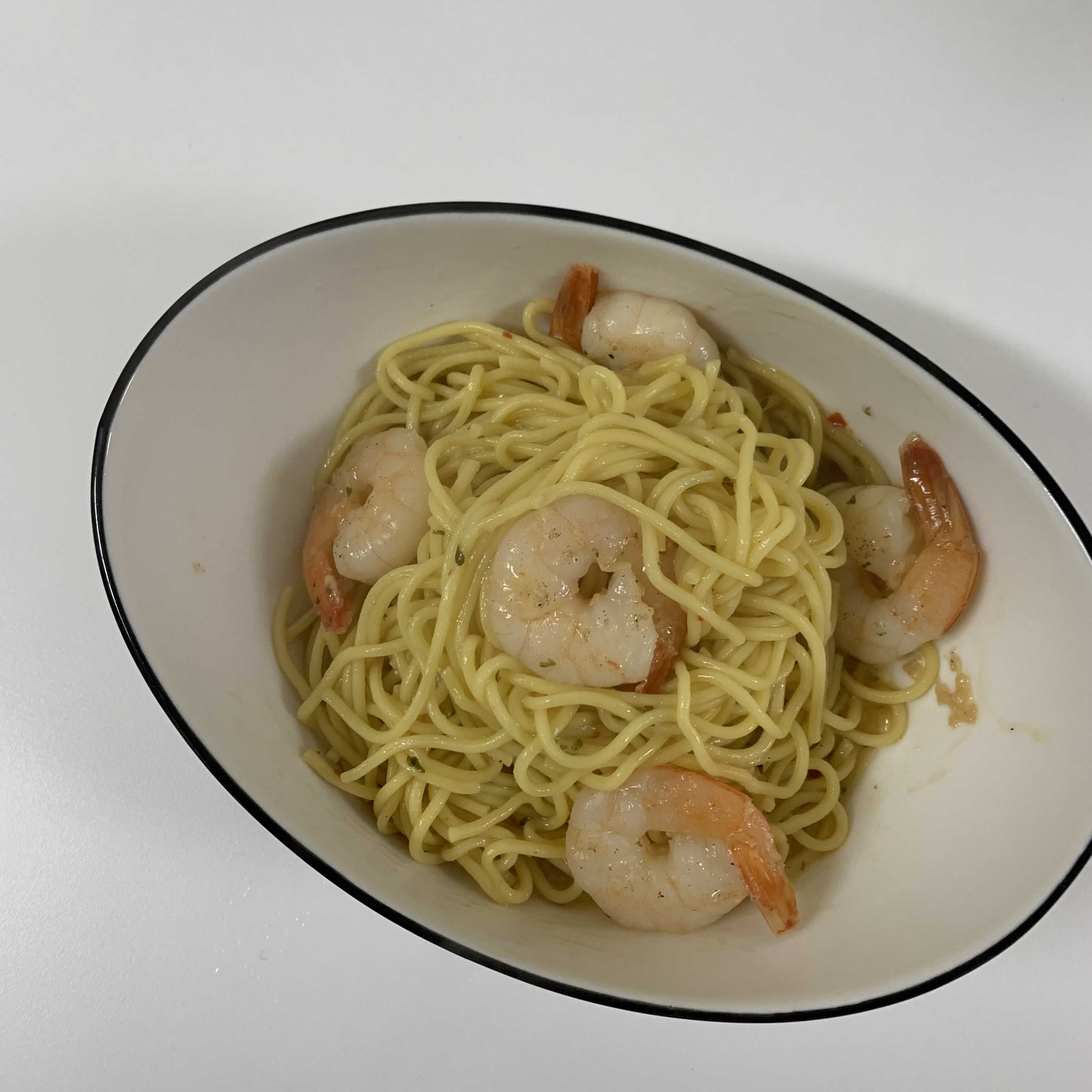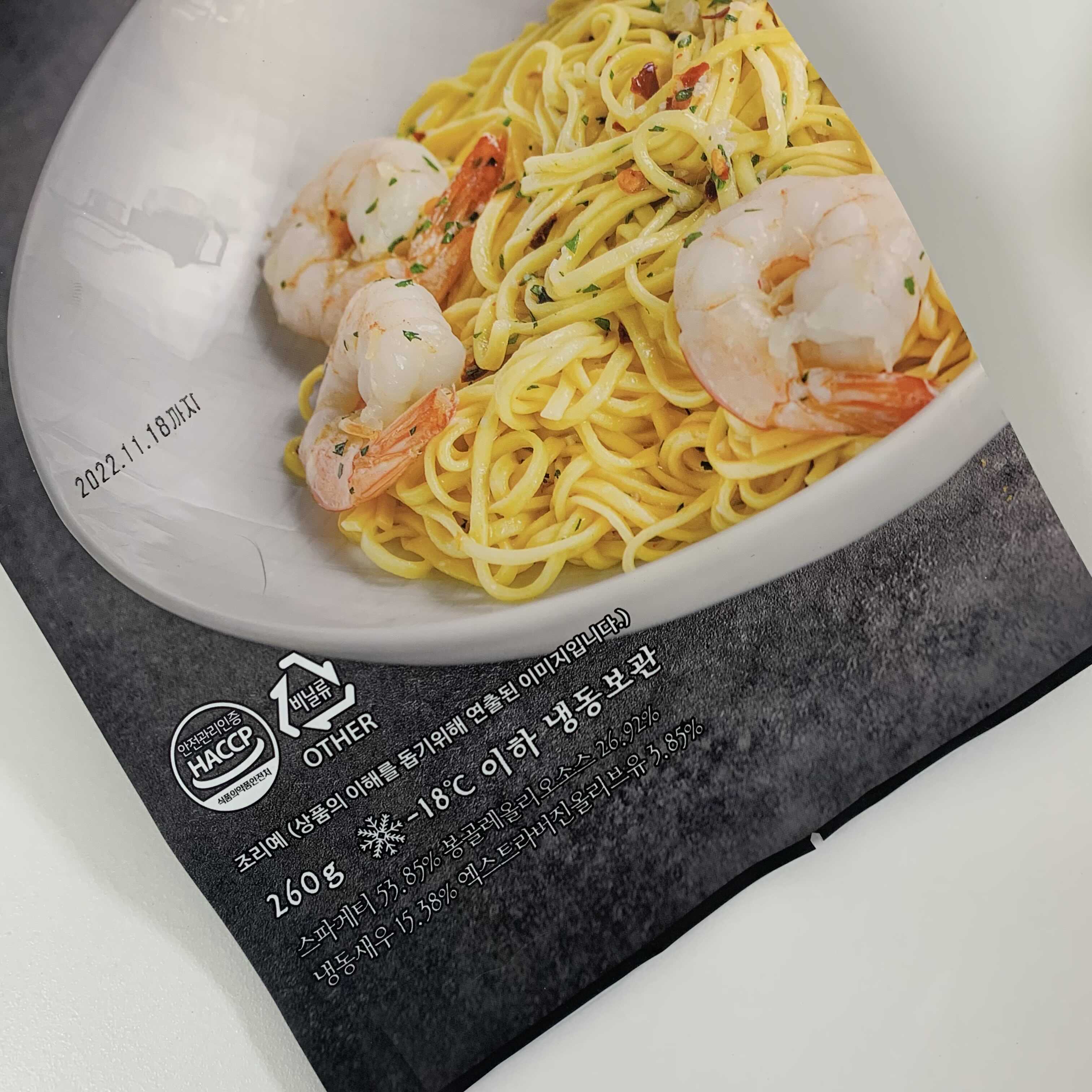 스파게티 알라치타라(140g), 엑스트라버진 올리브오일(10g), 새우(40g), 봉골레 올리오 소스(70g)
