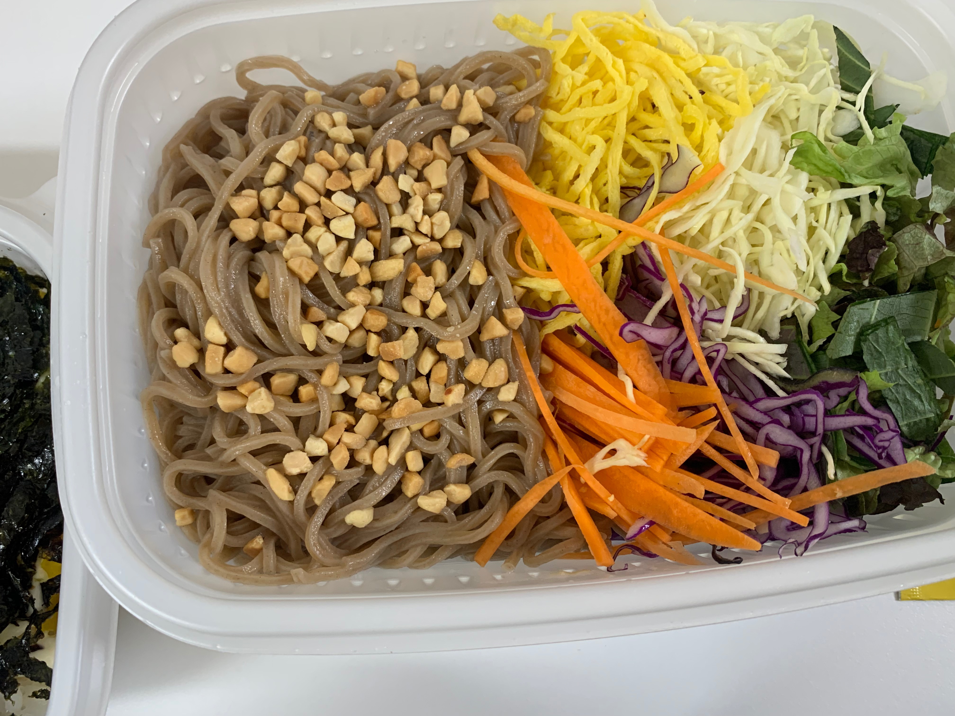 막국수에 양배추와 김가루 상추와 지단 등 고명으로 겉들여져서 함께 비벼먹으면 새콤달콤한 맛의 막국수입니다.