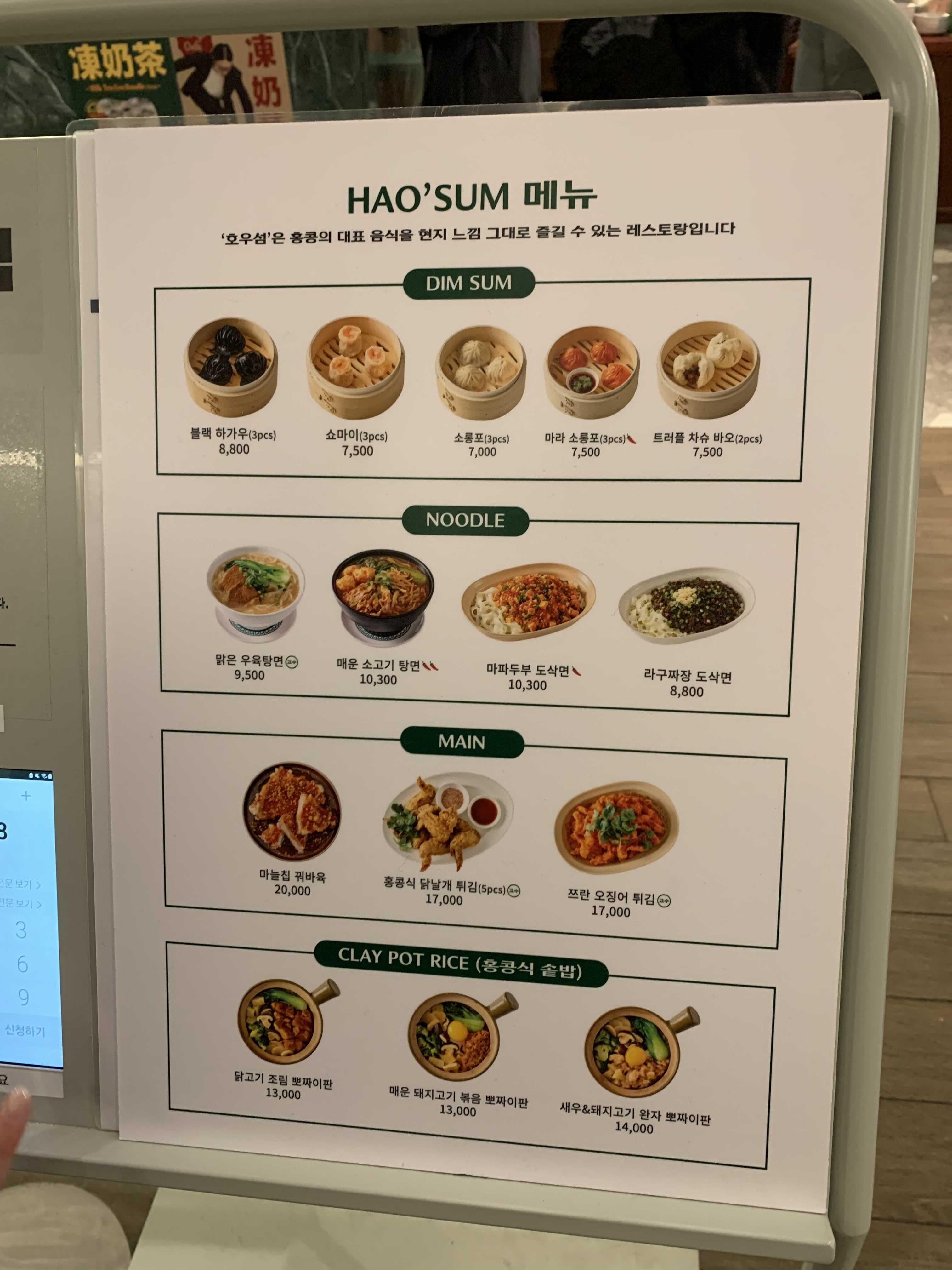 딤섬, 누들, 메인, 홍콩식 솥밥의 큰 틀의 메뉴로 되어있습니다.