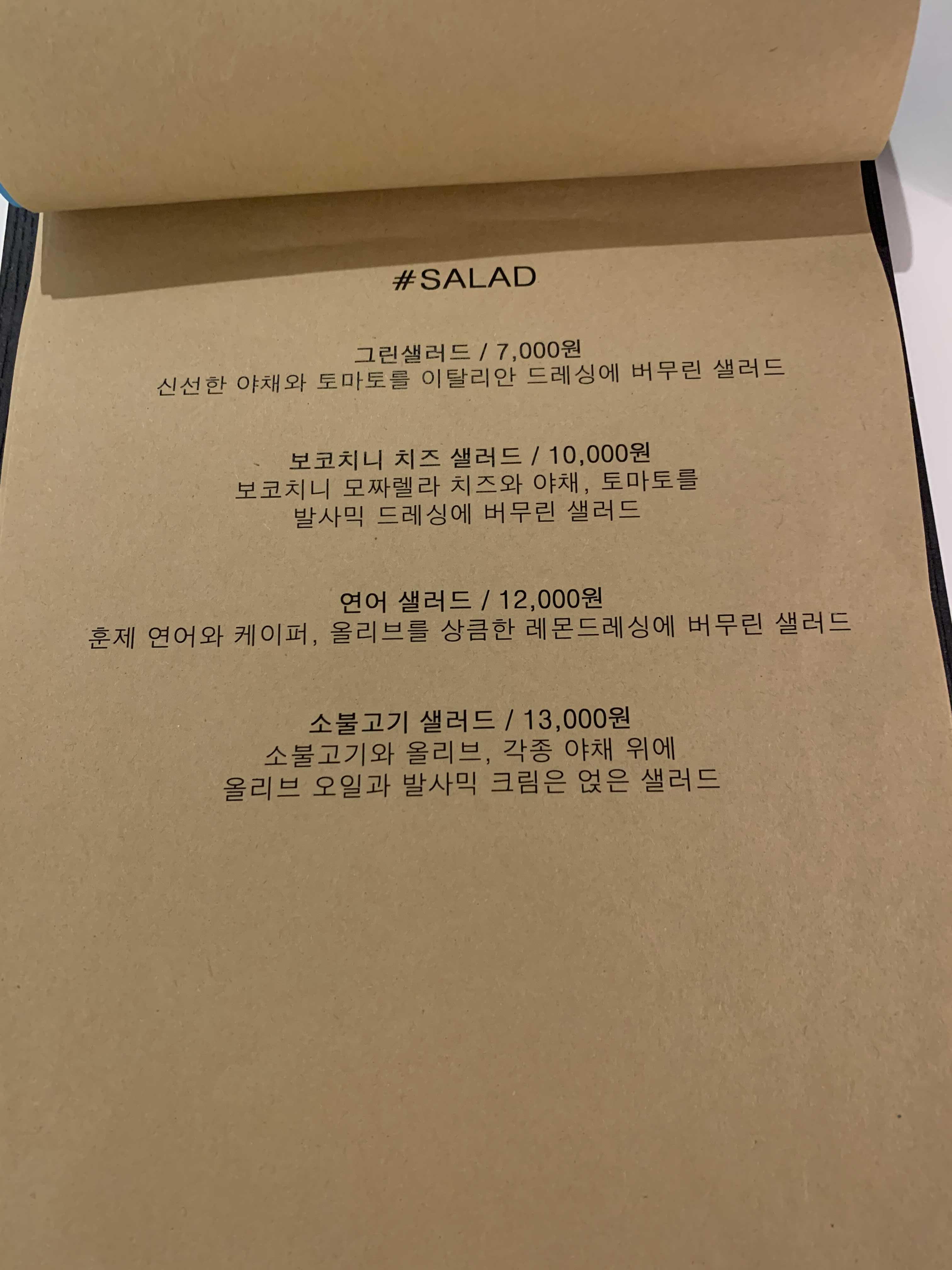 샐러드부터 시작해서 파스타도 오일, 로제, 토마토 등 있는데 가격도 많이 비싸지 않은거같아요.