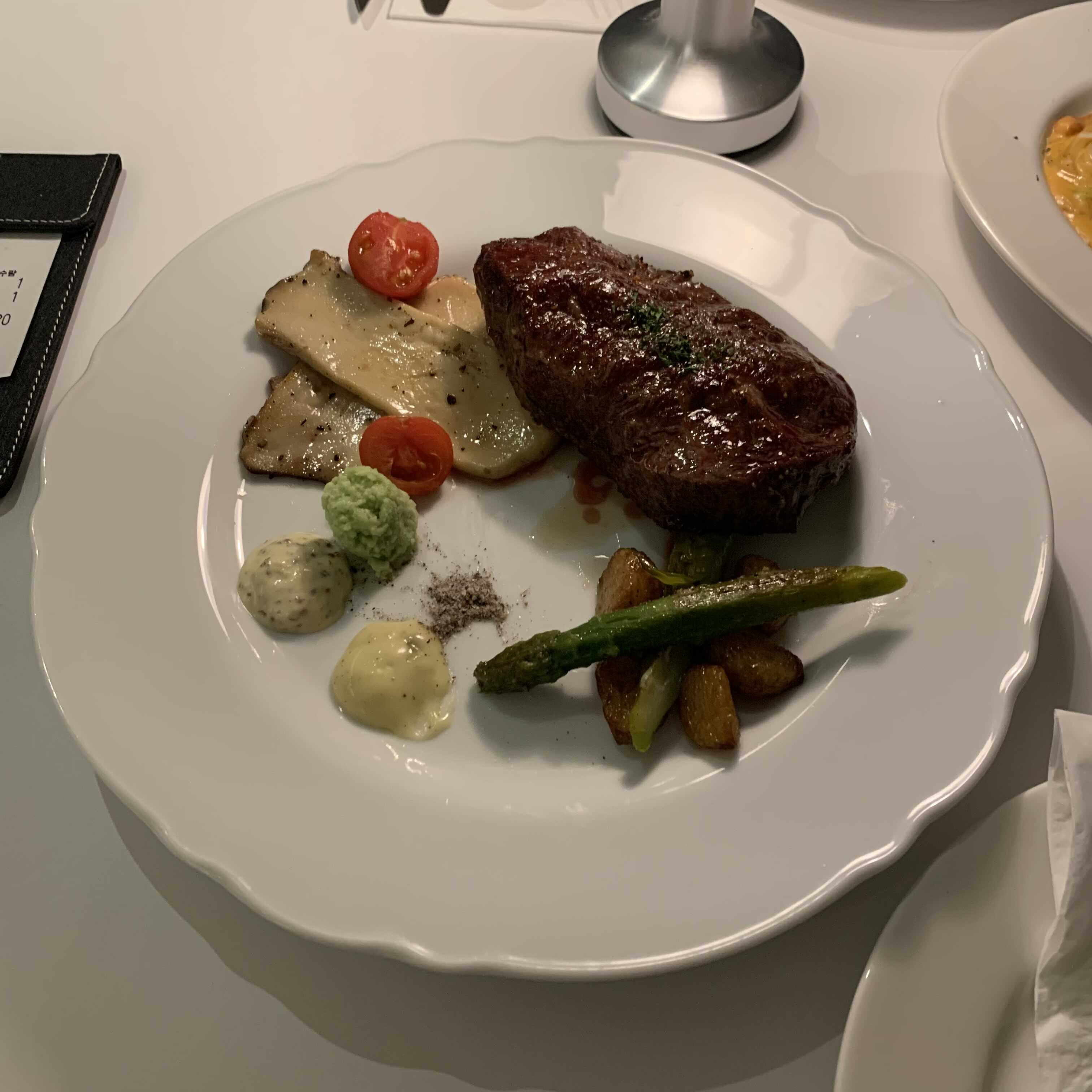 훈연으로 구운 부채살과 버터에 구운 야채가 함께 나오는데,
