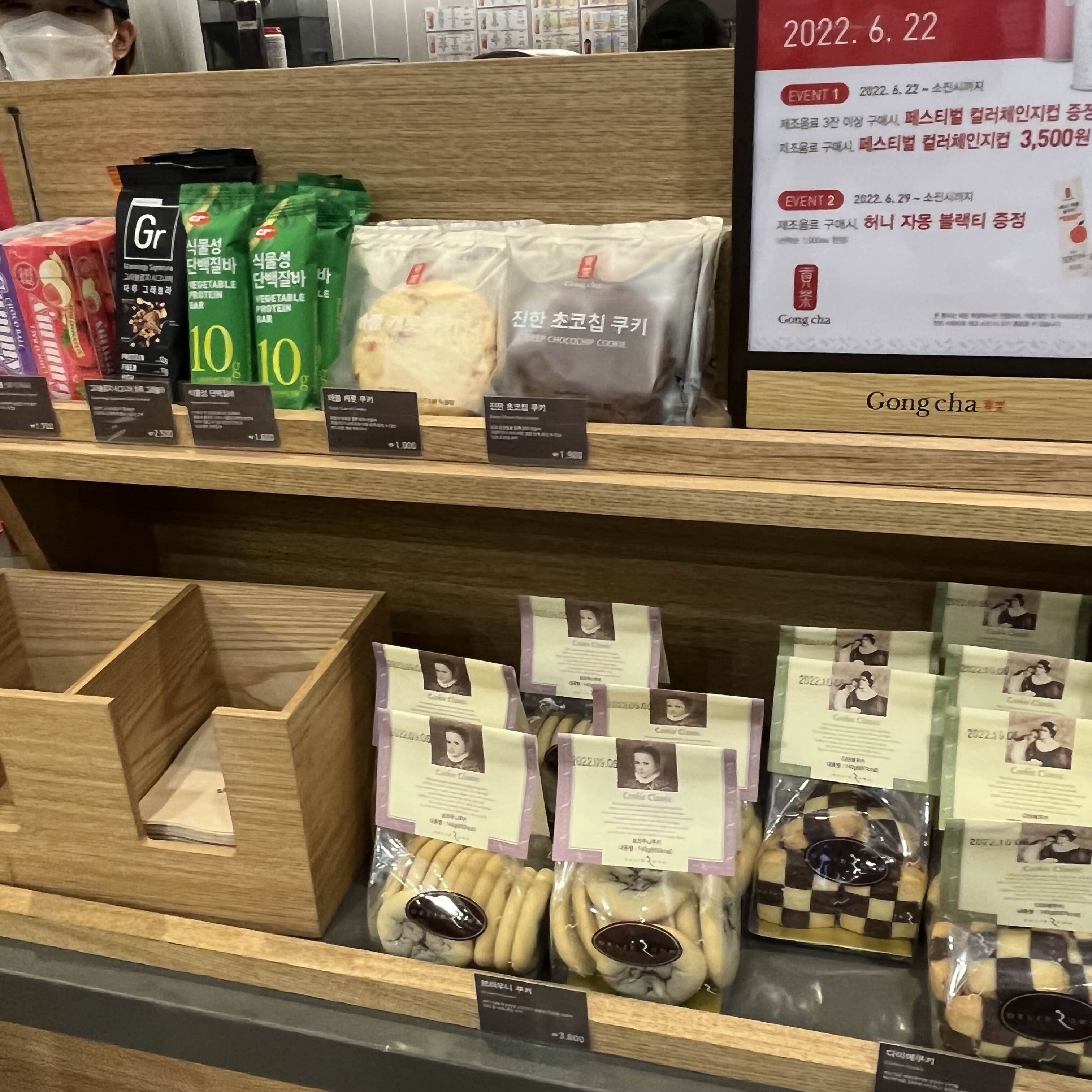 깔끔하게 포장되어 진열되어 있어서 사고 싶더라구요~~ 음료 말고도 쿠키와 다른 간식거리도 판매하고 있습니다!
