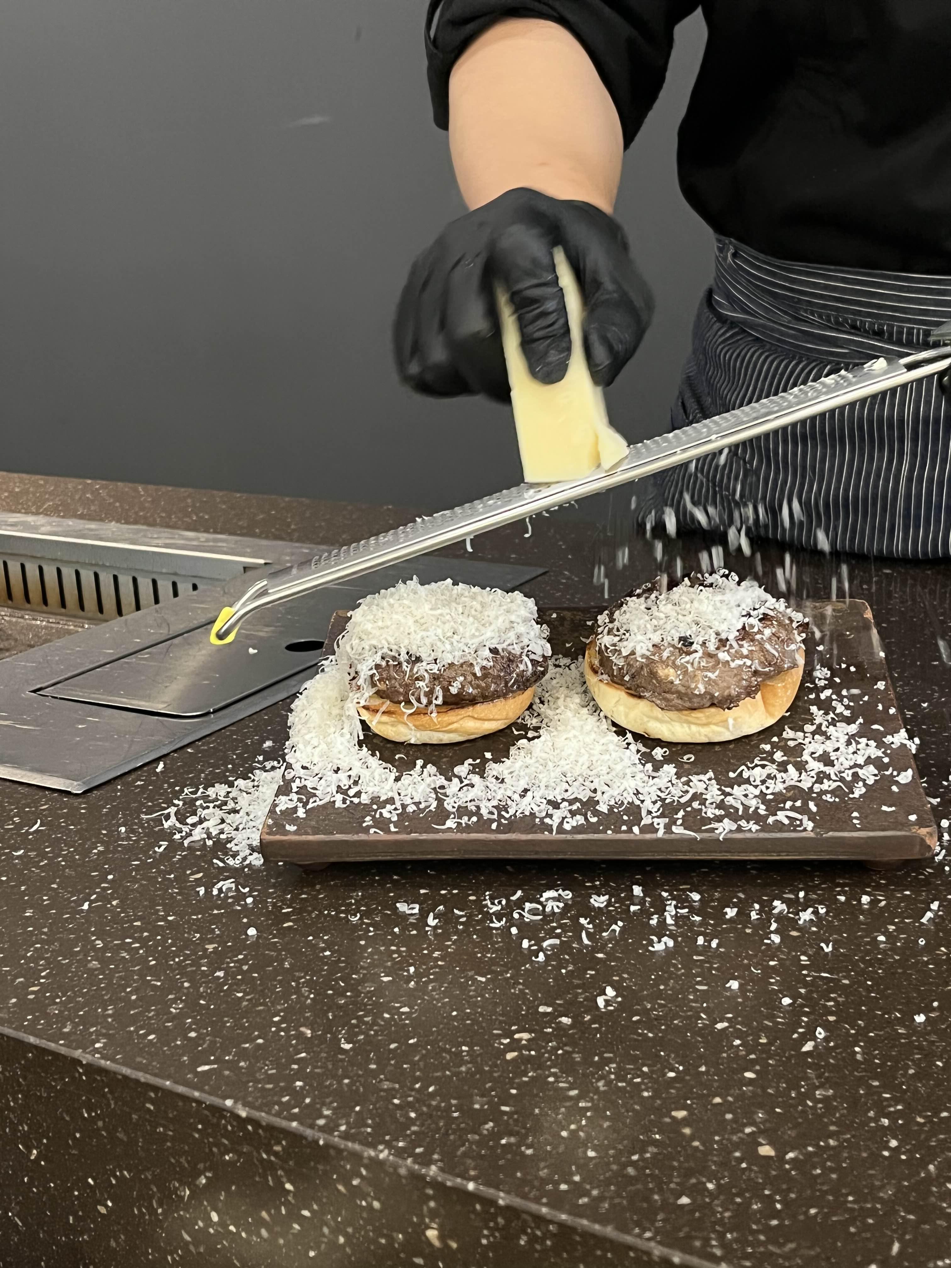 고기를 다 먹은 후 한우버거를 만들어주시는데 직접 또 패티랑 함께 구워주세요.