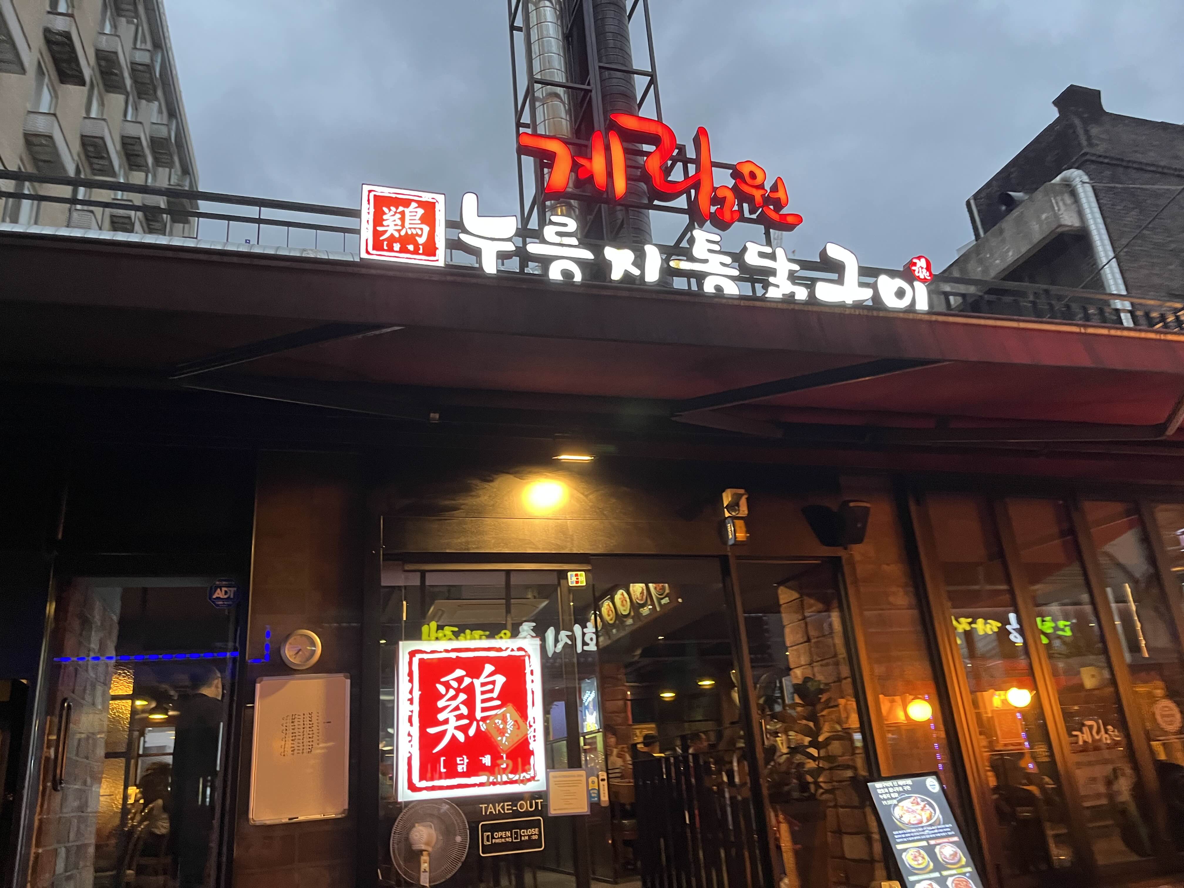 누룽지통닭이 너무 먹고싶었는데 집 근처에 없어서 회기역까지 갔어요!
