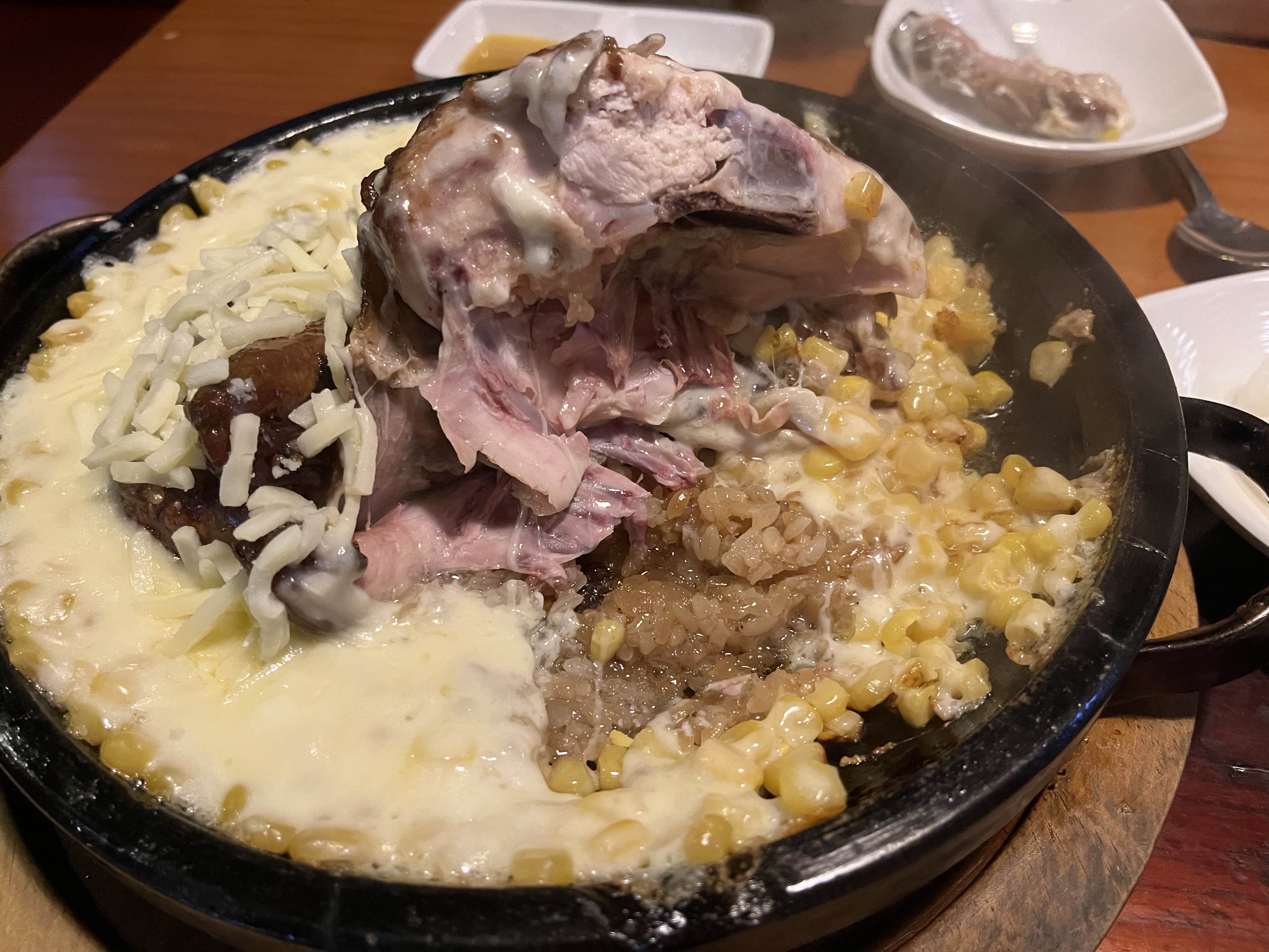 찹쌀 누룽지와 함께 치즈속에 감춰진 부드러운 속살의 닭이 있는데, 진짜 쫄깃한 식감 좋아하신 분들이나 누룽지 좋아하시고
