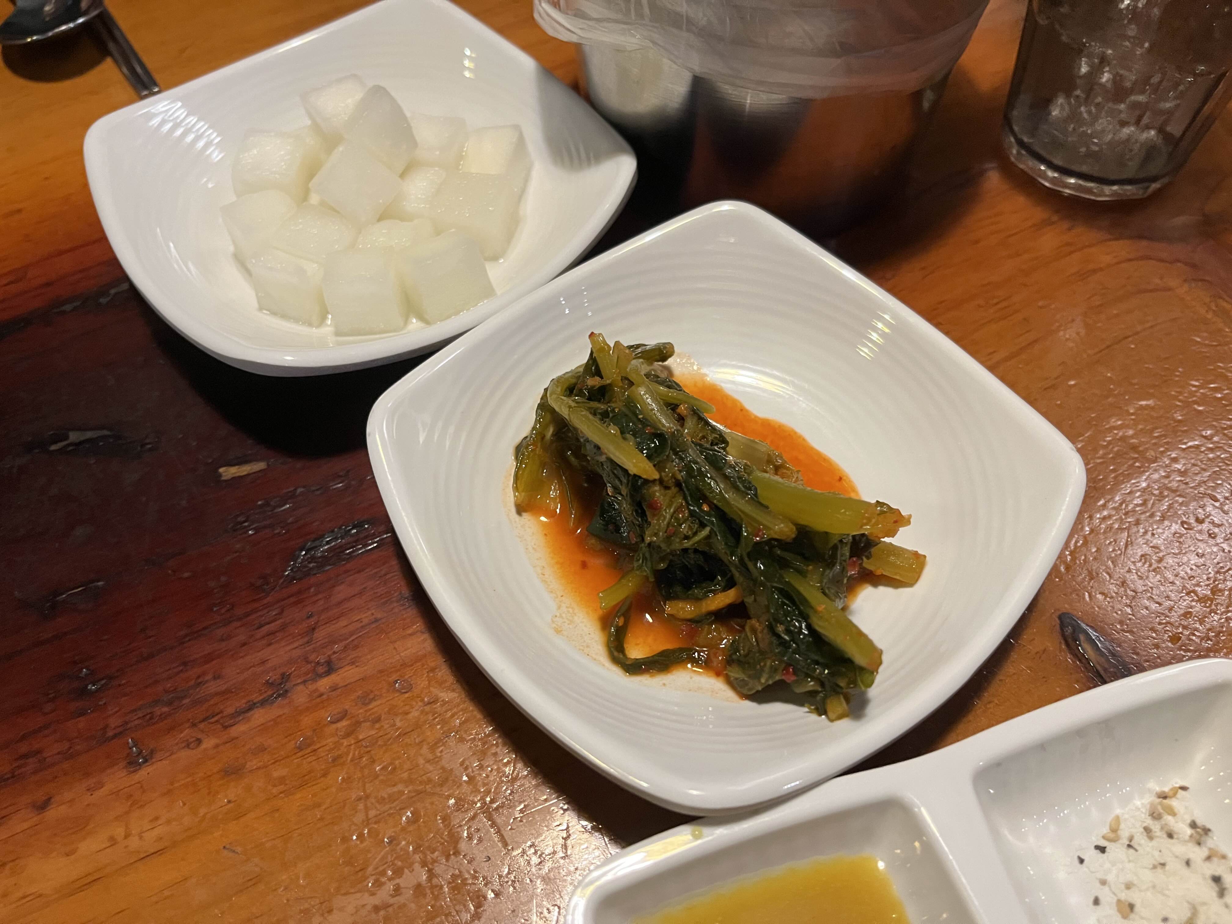 반찬은 이렇게 무랑, 김치인데 치즈가 조금 느끼한데 반찬이랑 같이 먹으면 느낀한 점을 잡아줘서 좋더라구요!