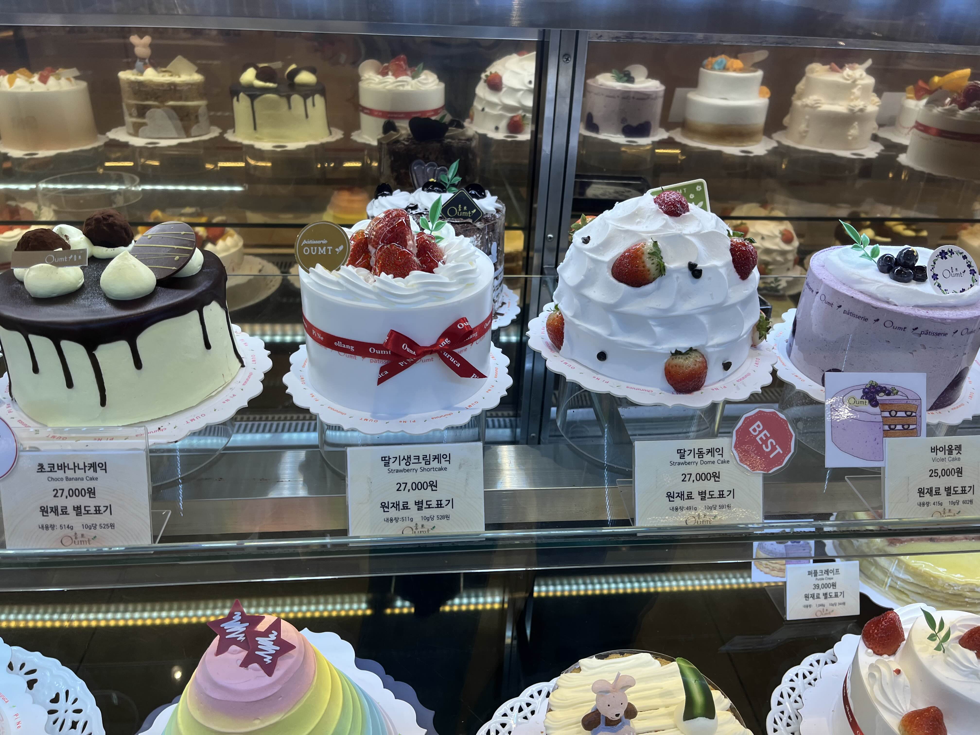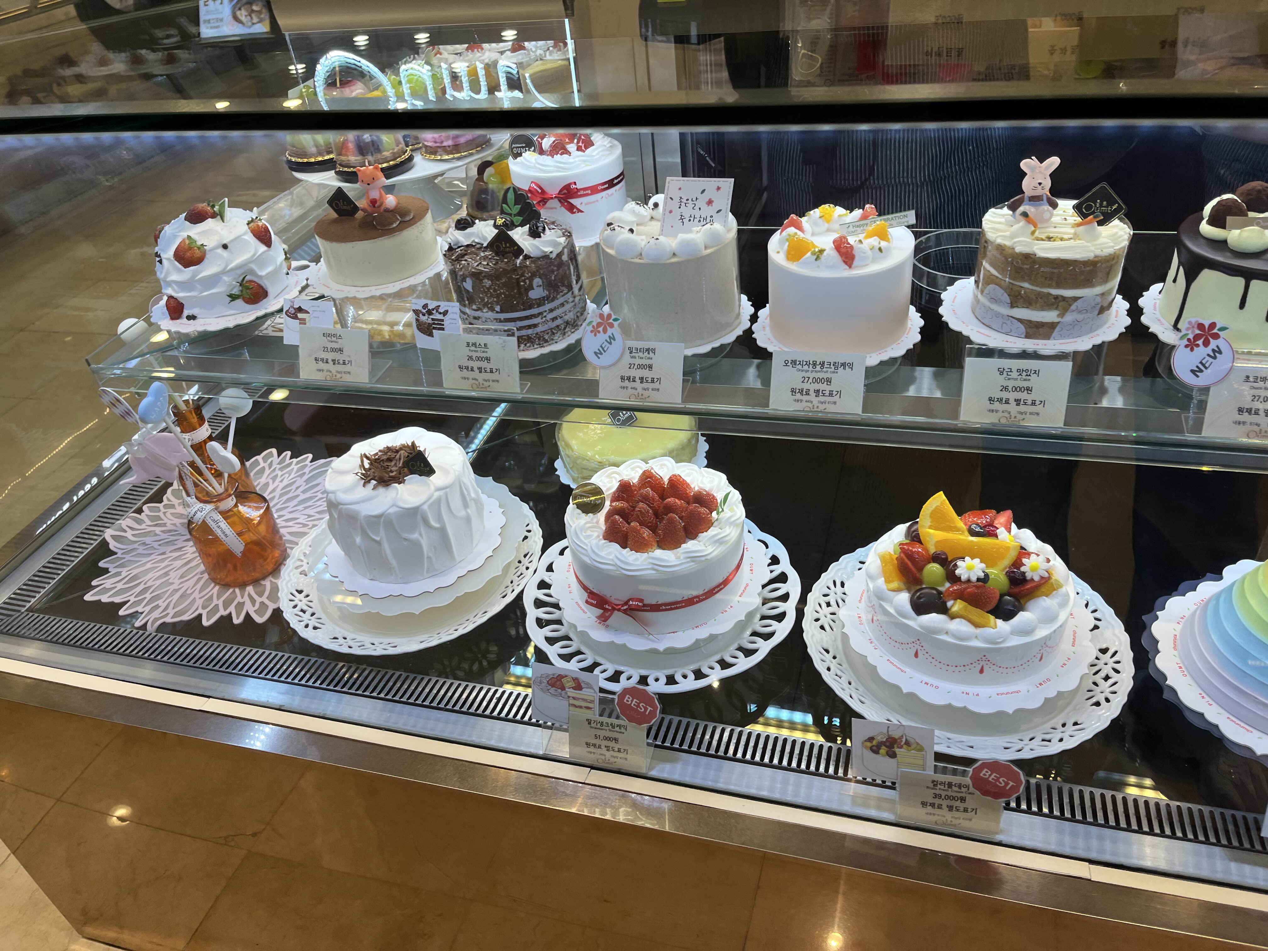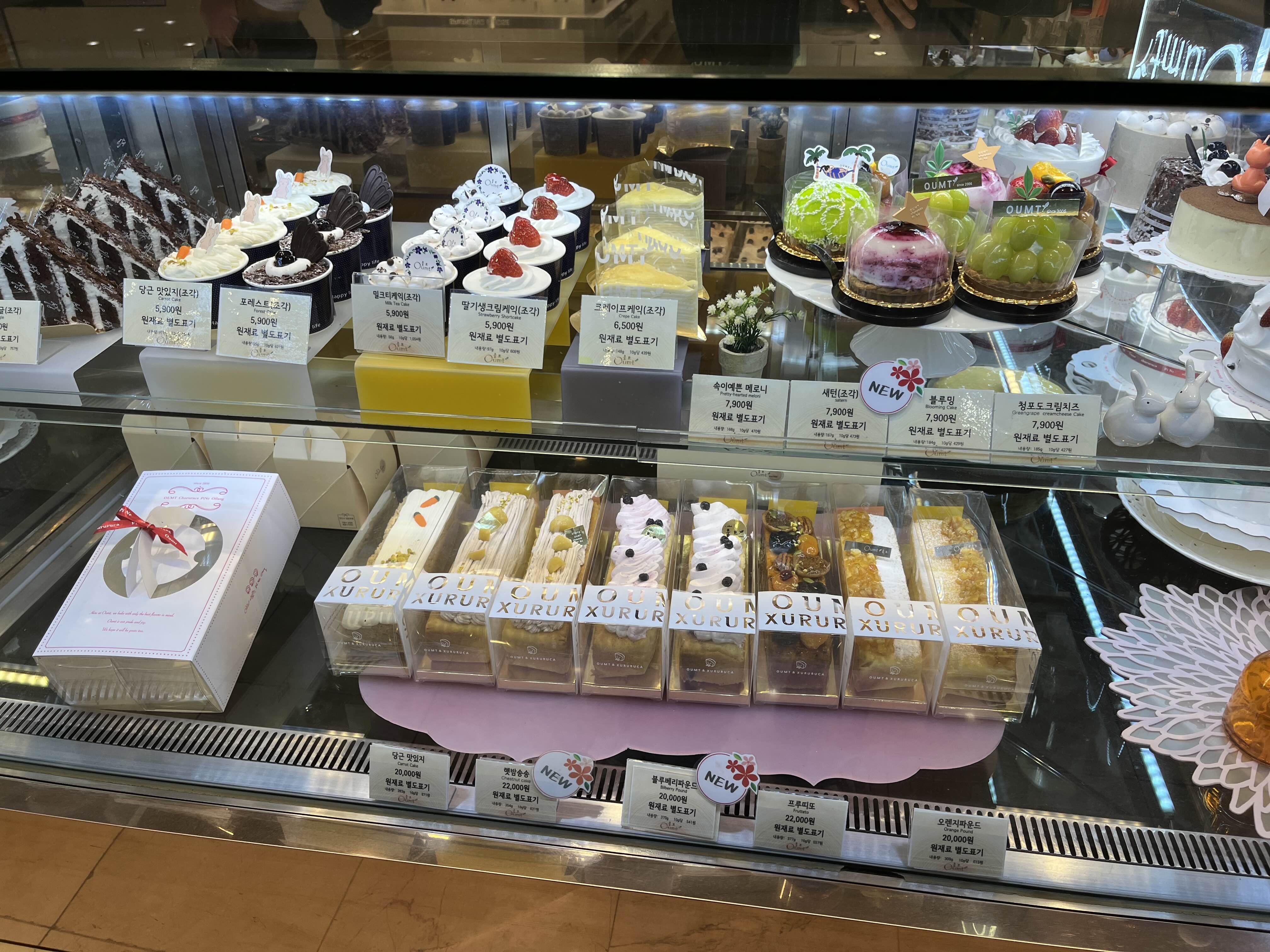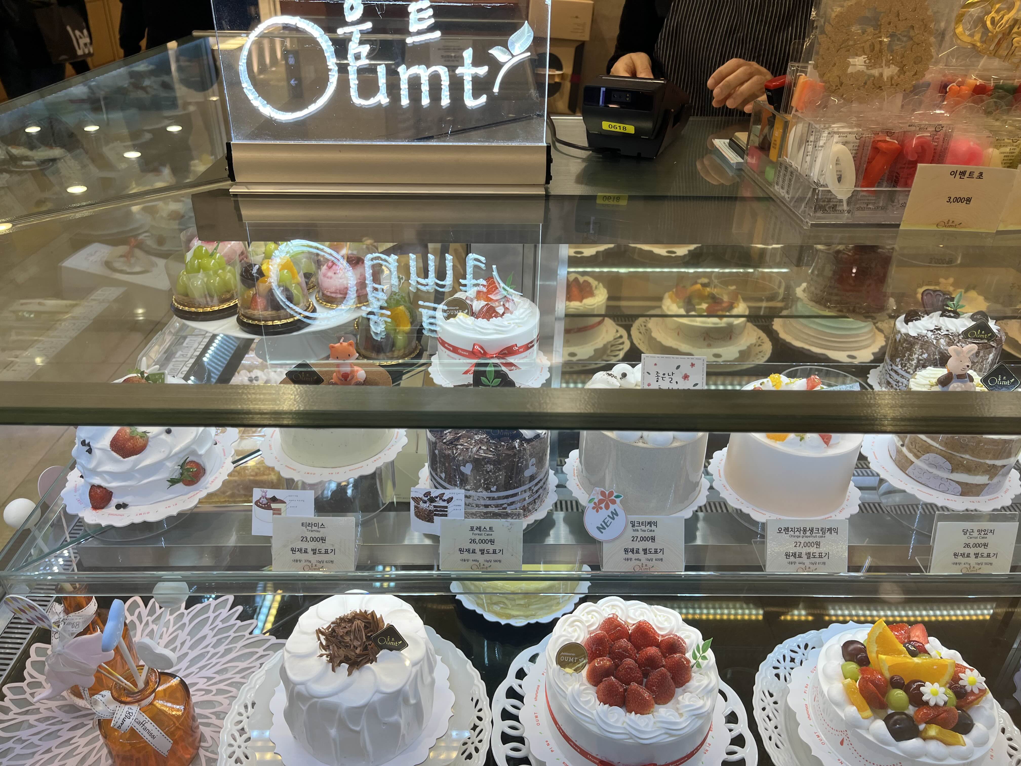 움트 케이크 종류가 다양하더라구요! 2단 케이크도 있고, 초코케이크, 티라미수, 딸기 케이크, 당근케이크 등 다양한 것들이 있는데