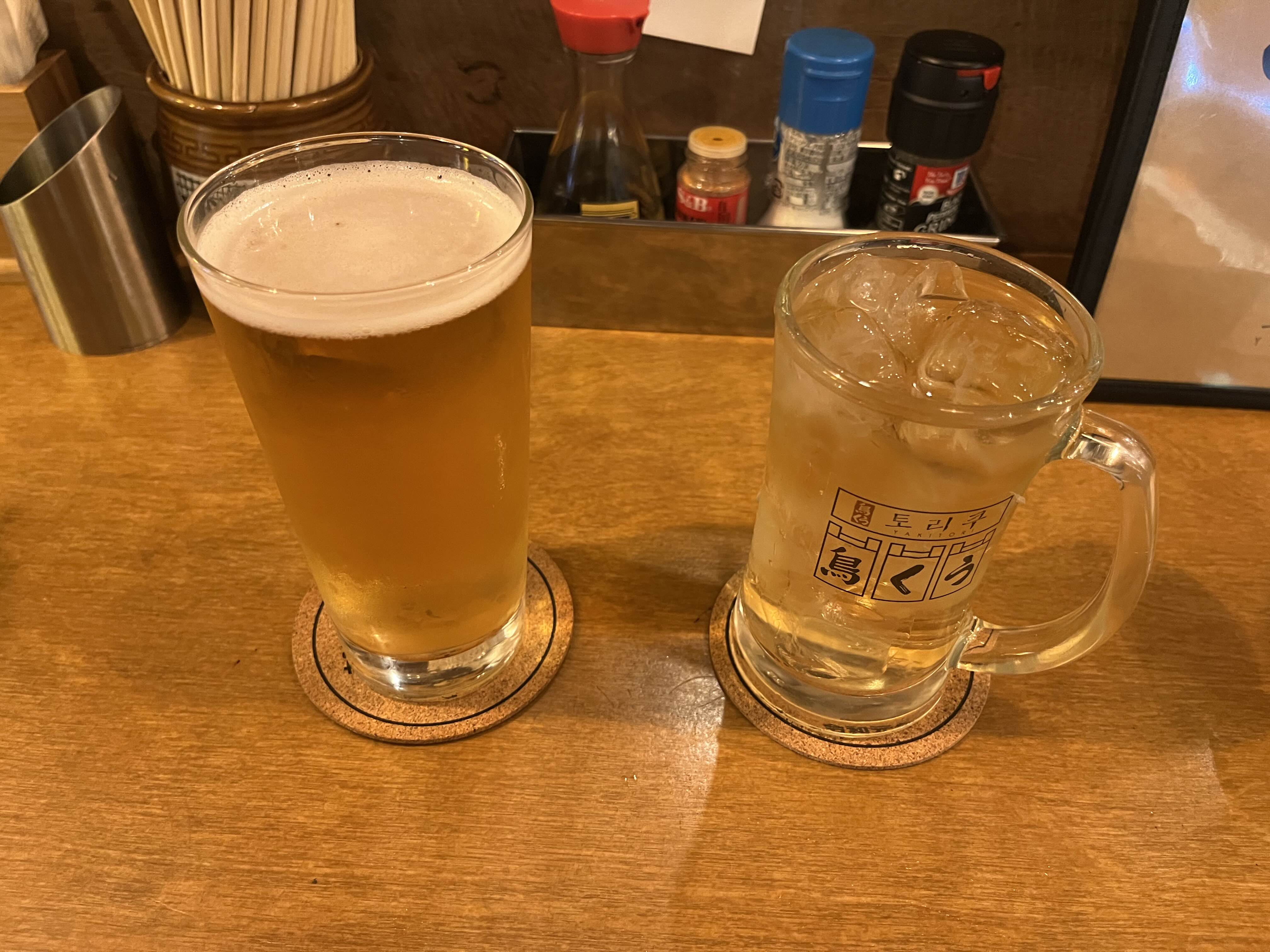 먼저 꼬치가 나오기 전에 하이볼과 유자생맥이 나왔습니다! 이거 먹으려고 하루종일 열심히 살았다...