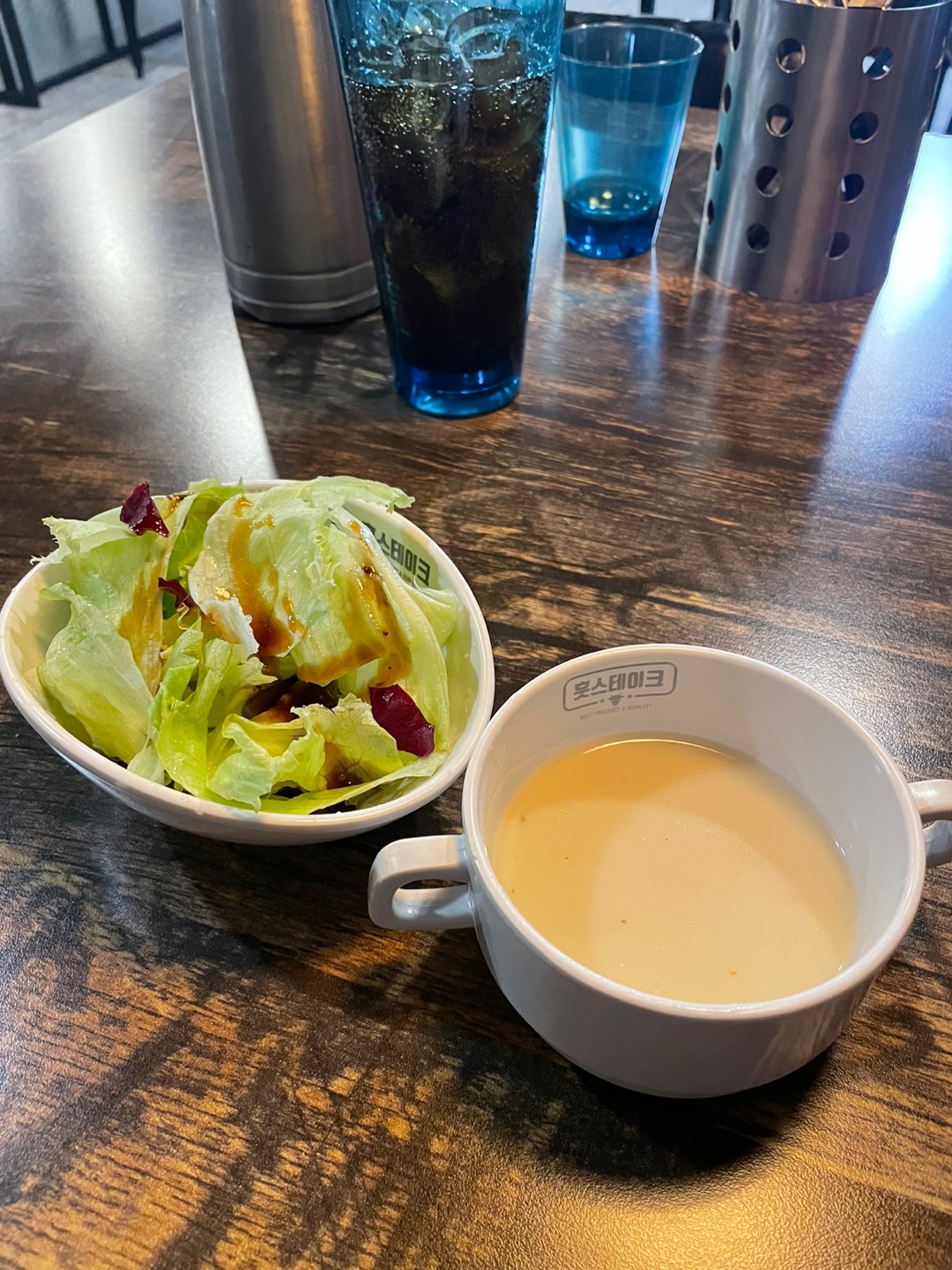 먼저 제공된 샐러드와 스프입니다.