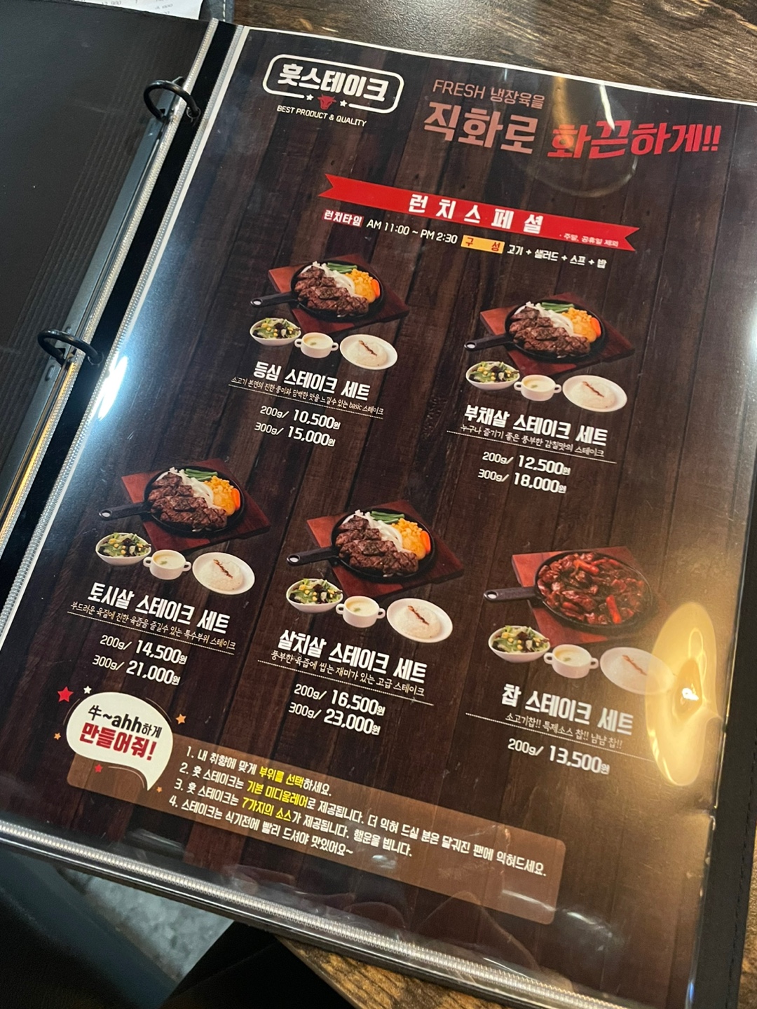프리미엄 냉장육 등심스테이크 런치에 오면 스페셜 메뉴로 좀 더 저렴하게 먹을 수 있습니다.