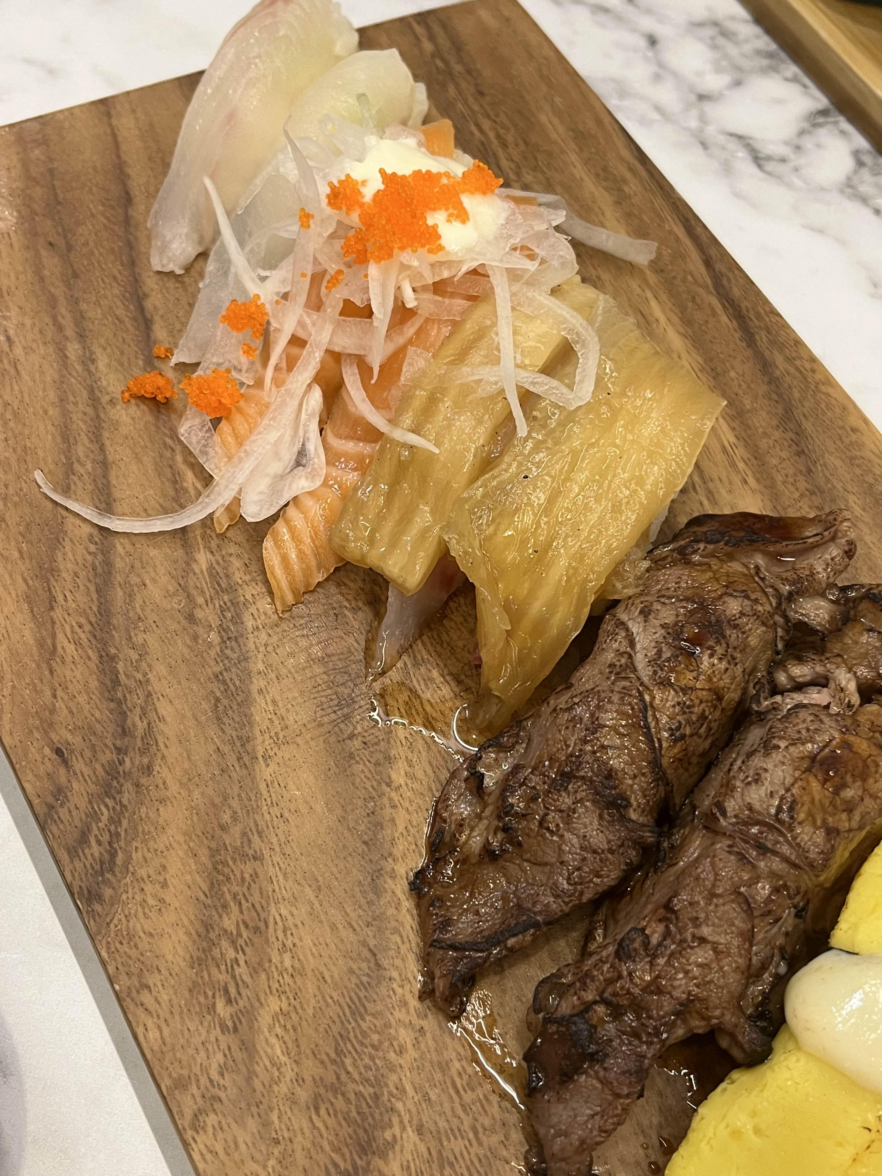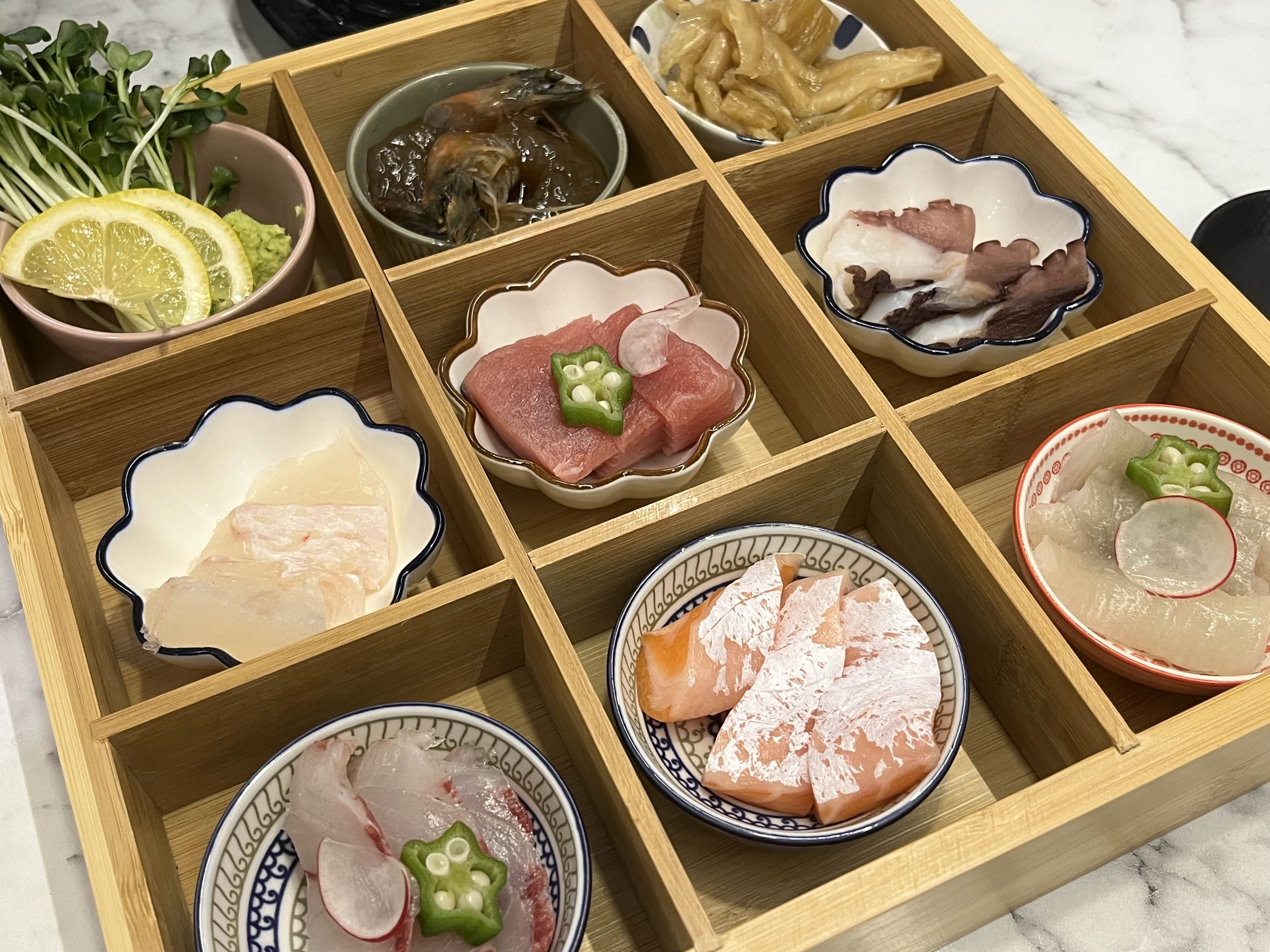 여기 사시미는 두툼하고 신선한 느낌이라 가장 좋았어요. 회 종류를 잘 모르는데 연어, 참치 등 다양한 사시미가 제공됩니다!