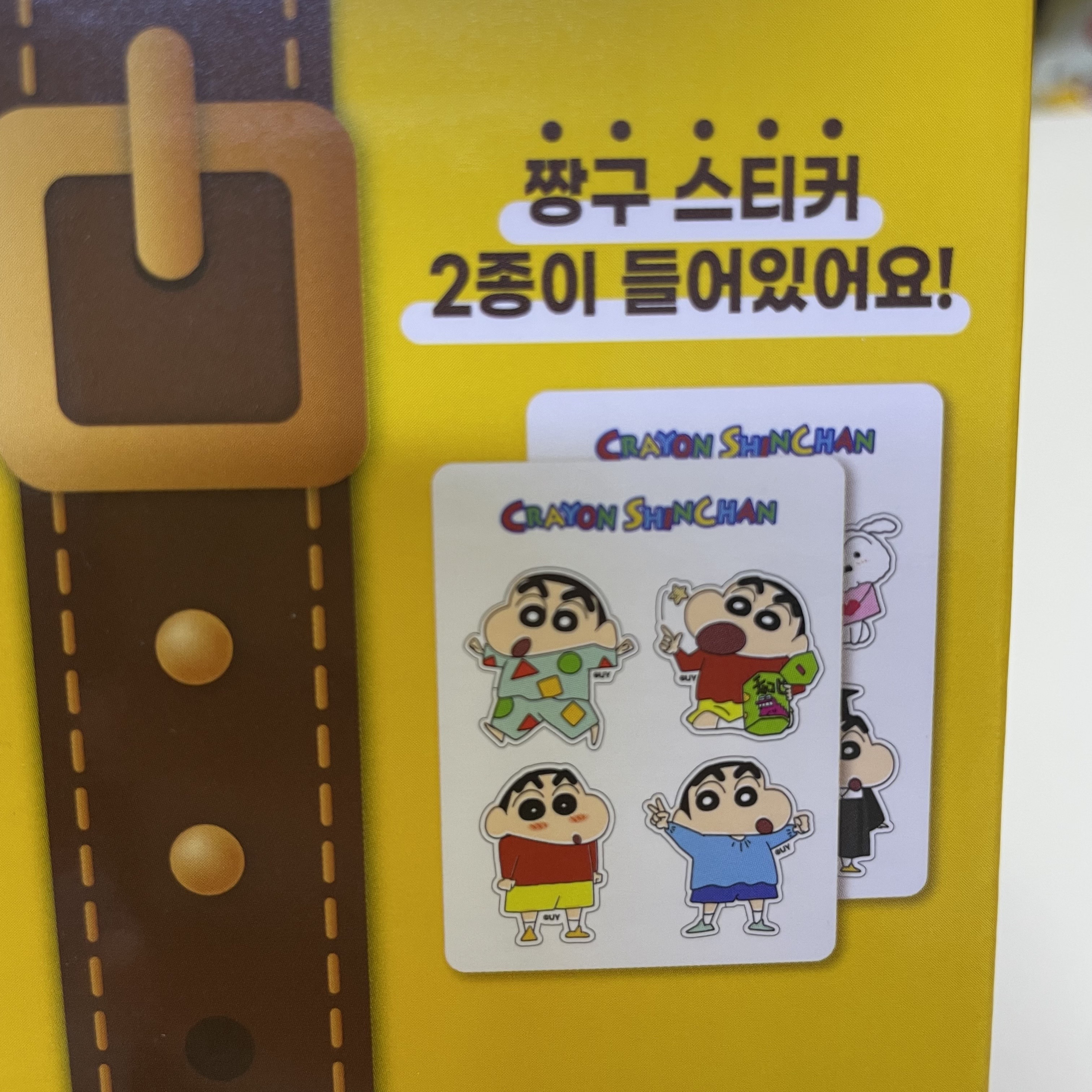 짱구스티커 2종이 들어있다고 합니다! 띠부씰이면 좋았을텐데 띠부실이 아니니 참고하세요.