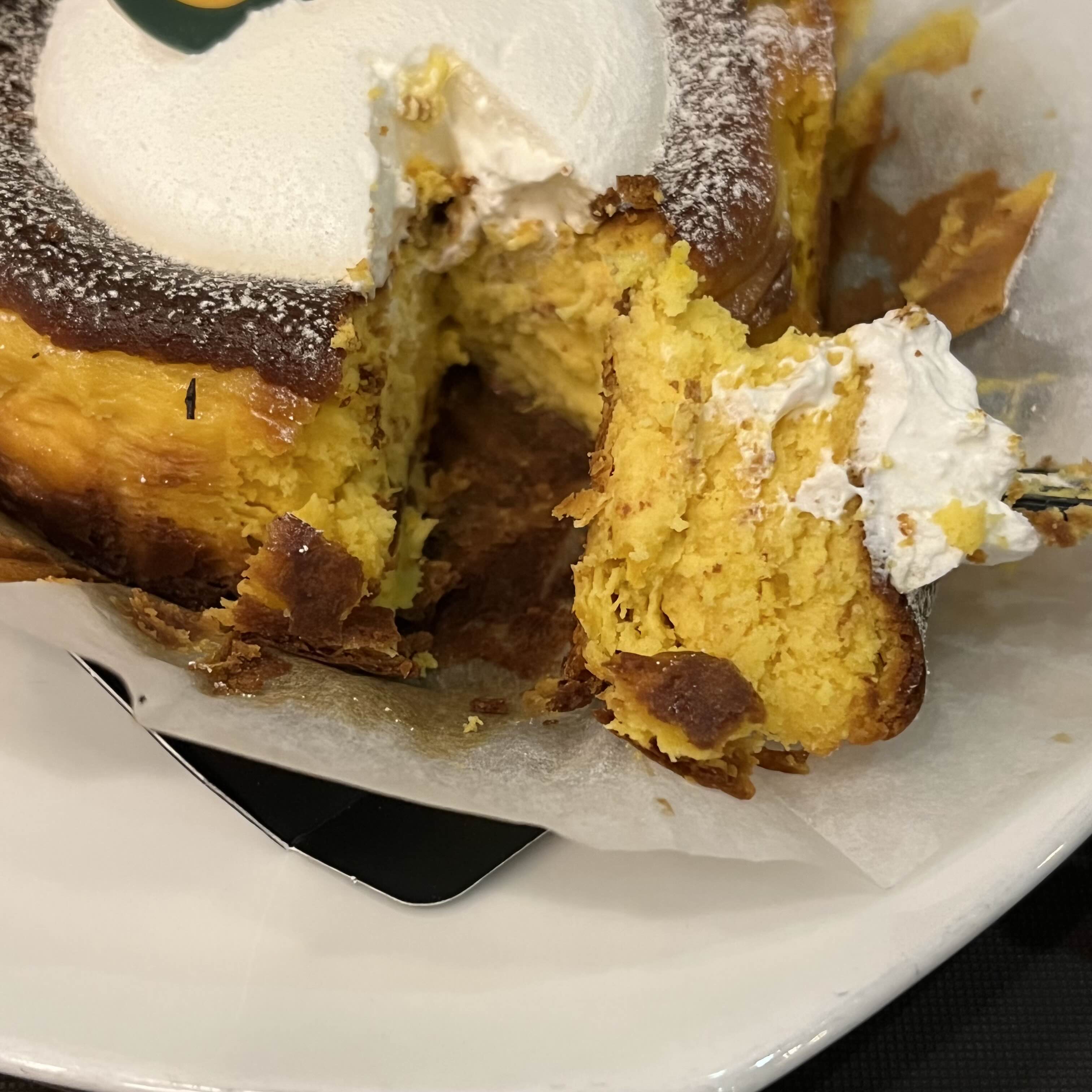 단호박과 크림치즈를 가득 넣고 구운 스모키한 향의 진한 바스크 케이크입니다.