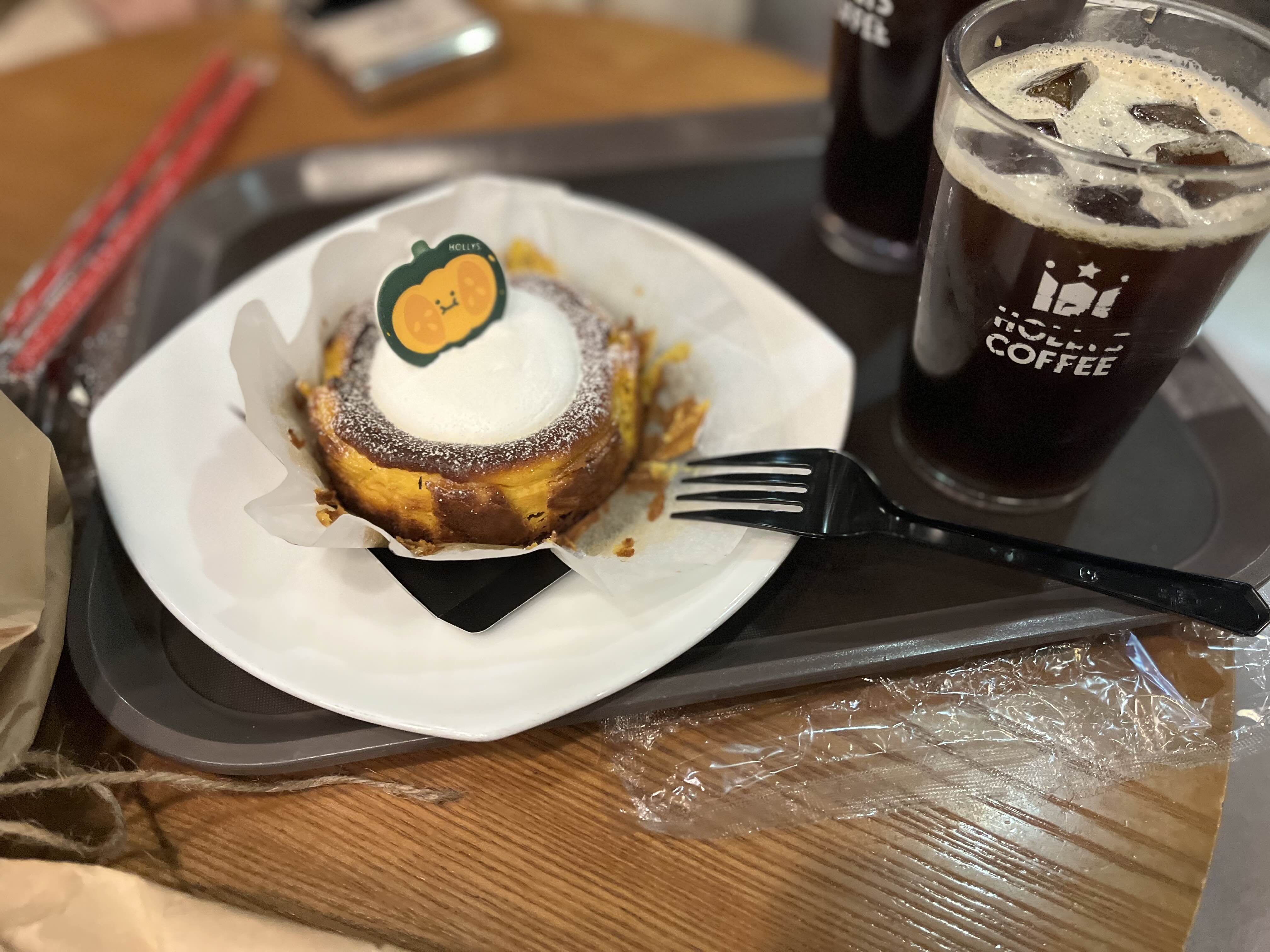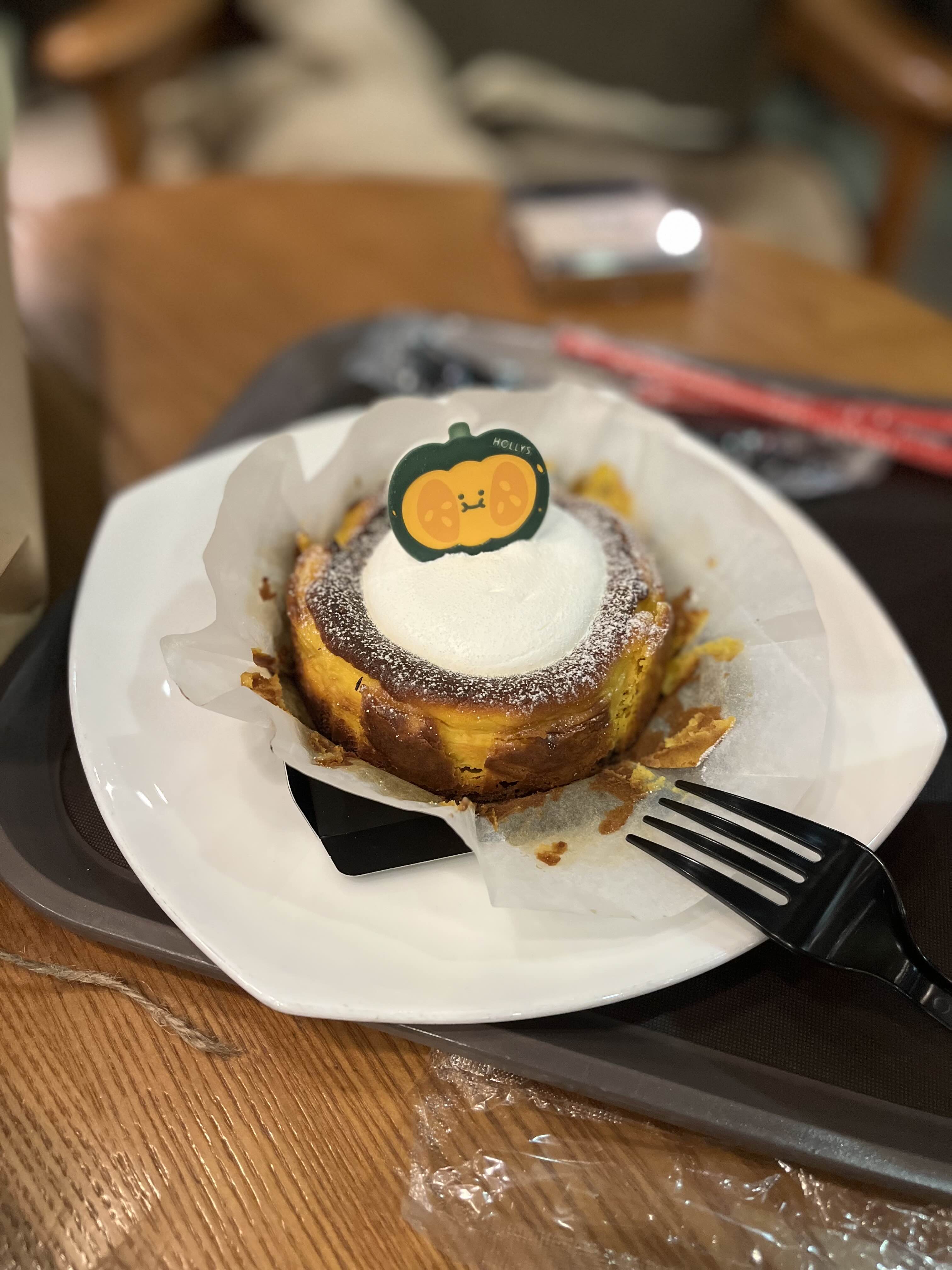 할로윈데이를 맞이해서 나온 케이크인가 단호박 바스크 치즈케이크를 주문해서 아메리카노랑 먹었는데,