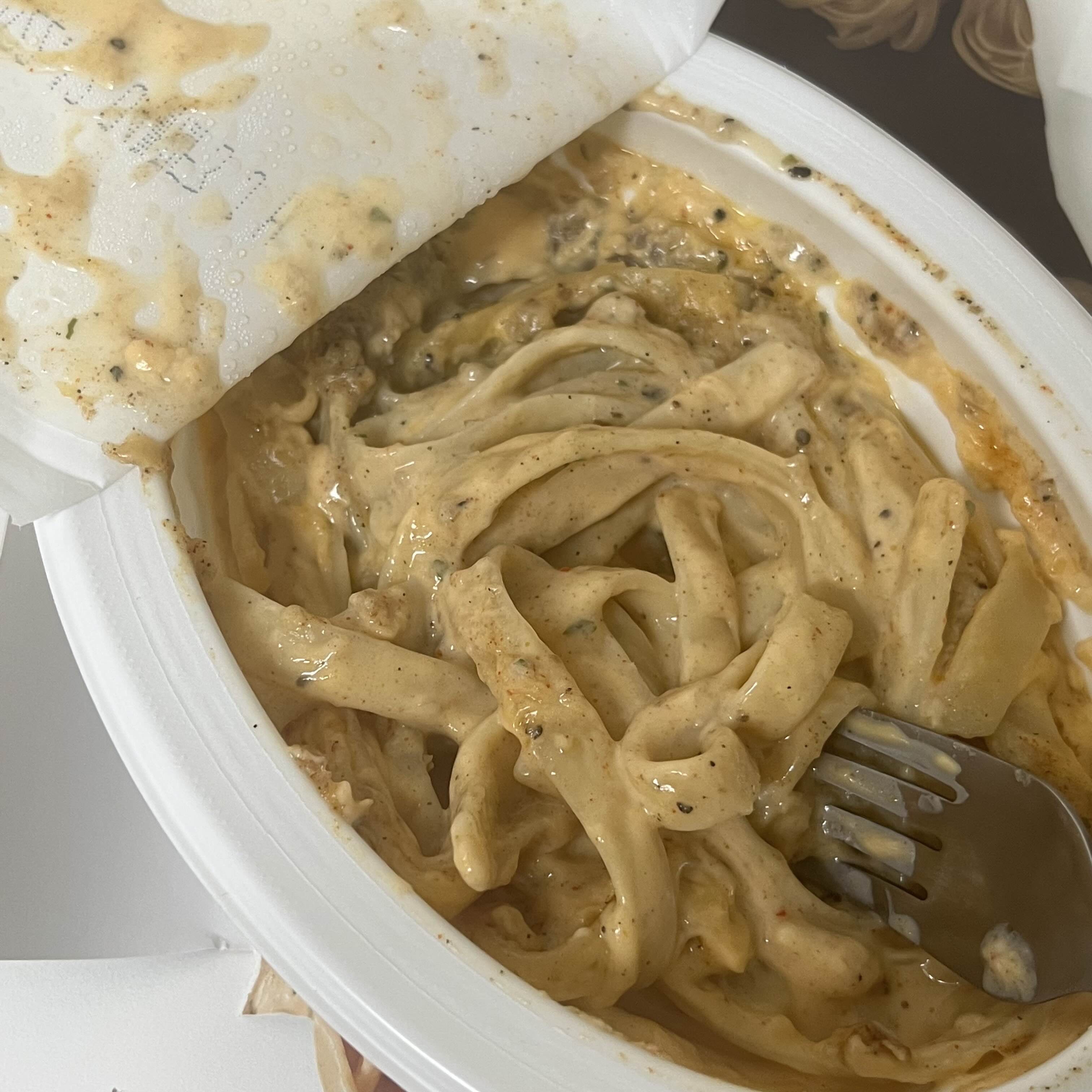 페투치네가 들어가서 매콤한 맛이 나면서 진한 크림소스 맛이 납니다.