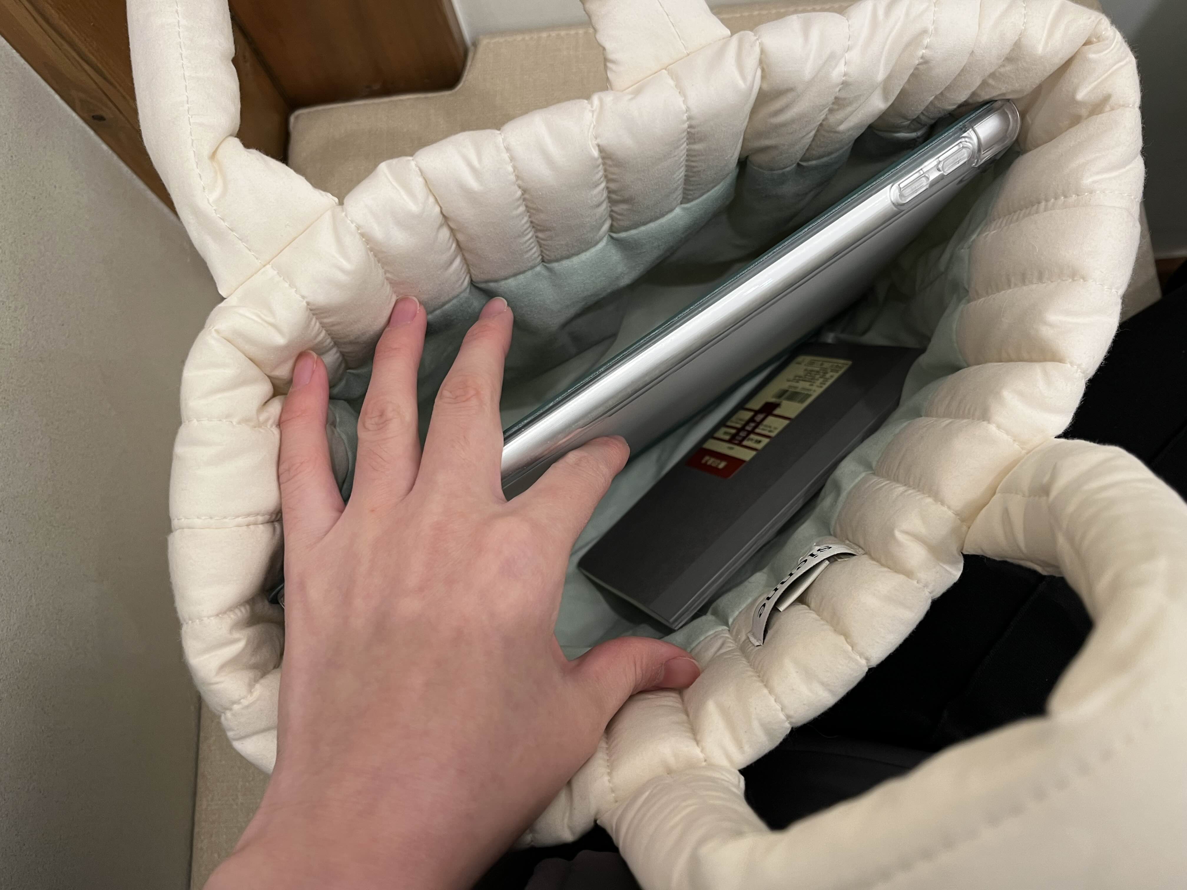 패딩백이라 겨울에 들기 포근한 느낌도 들어서 따뜻해보이는게 장점입니다.