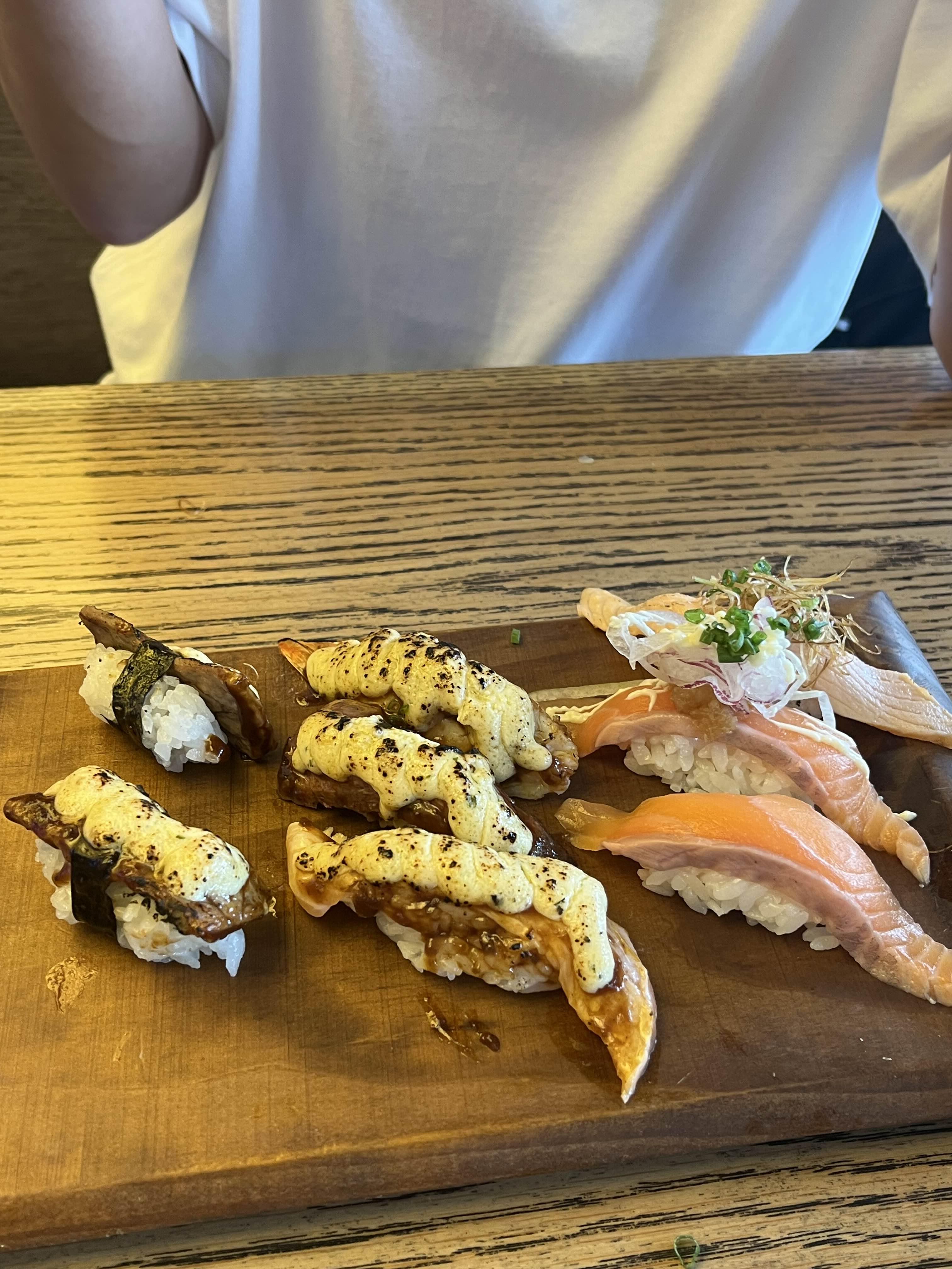 저는 연어가 가장 맛있었어요. 동생도 연어랑 갈릭치즈를 좋아하는데 여기 생기기전에는 스시히로미를 방문했는데 확실히 이곳이 회도 좀 더 두껍고 신선한 느낌을 받았습니다.