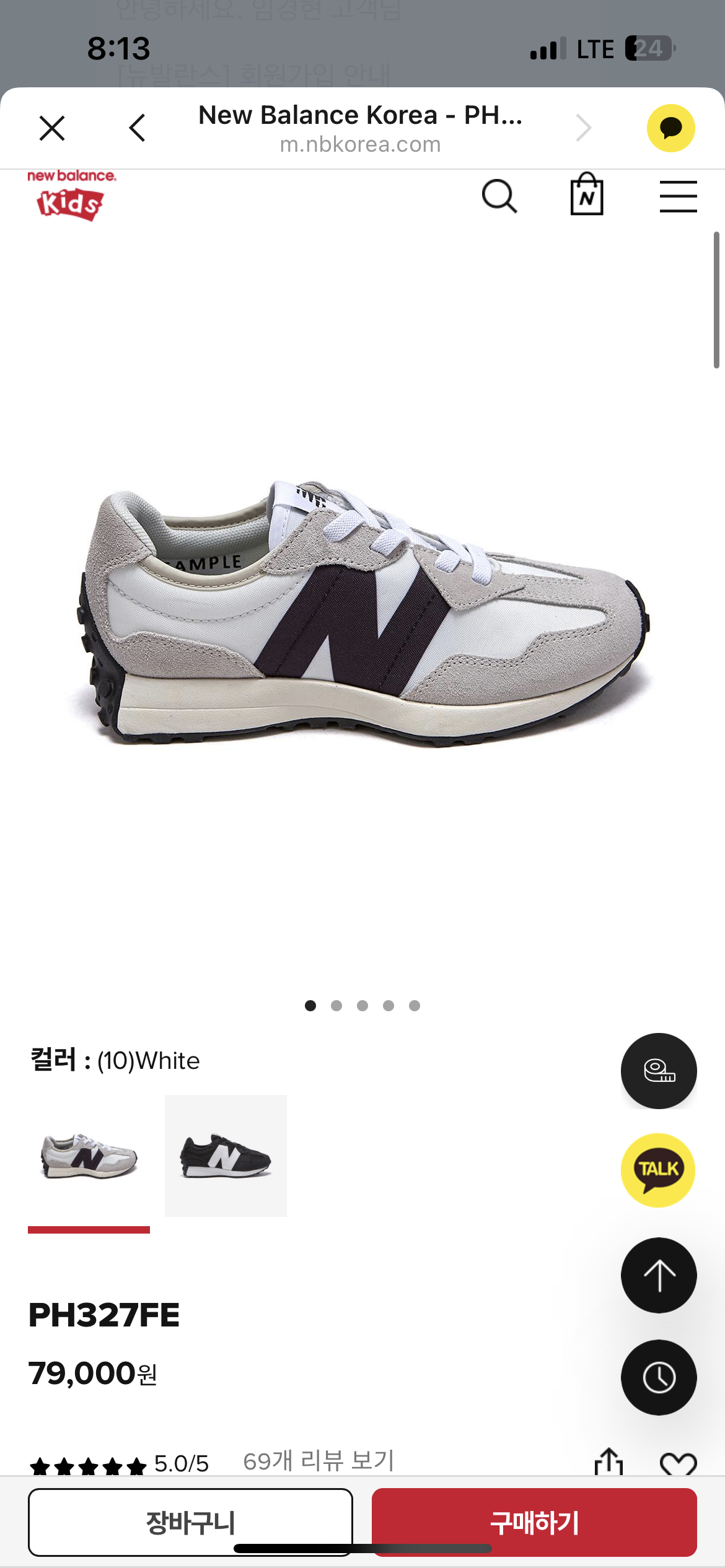 가격은 79,000원이고 매장에 방문했더니 이제 뉴발문빔은 나오지 않는다고 씨솔트 흰검으로 주문했습니다.