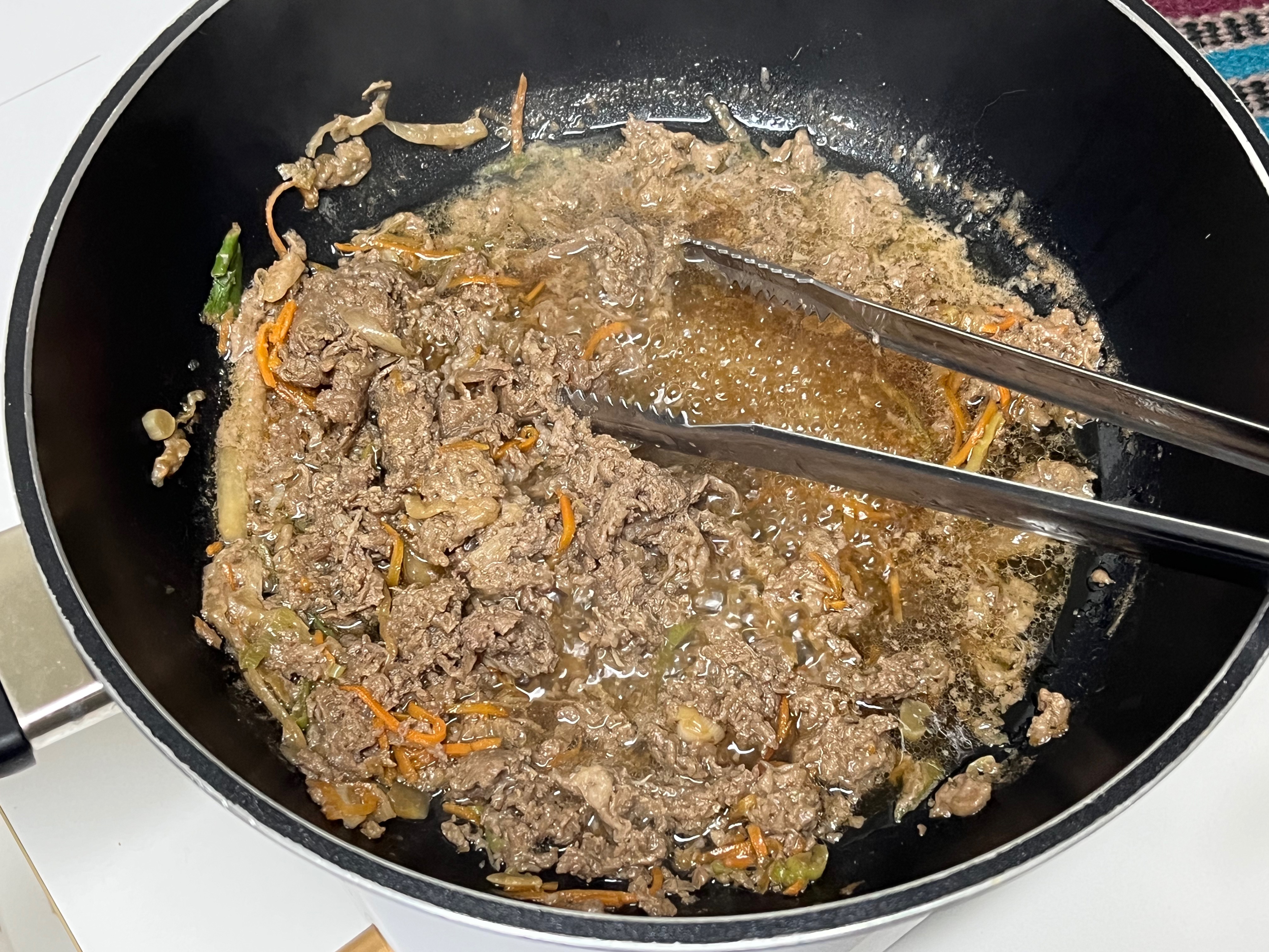2. 양념과 고기를 통째로 팬에 익혀 주시면 특유의 향과 달짝지근한 불고기의 맛을 느낄 수 있습니다.