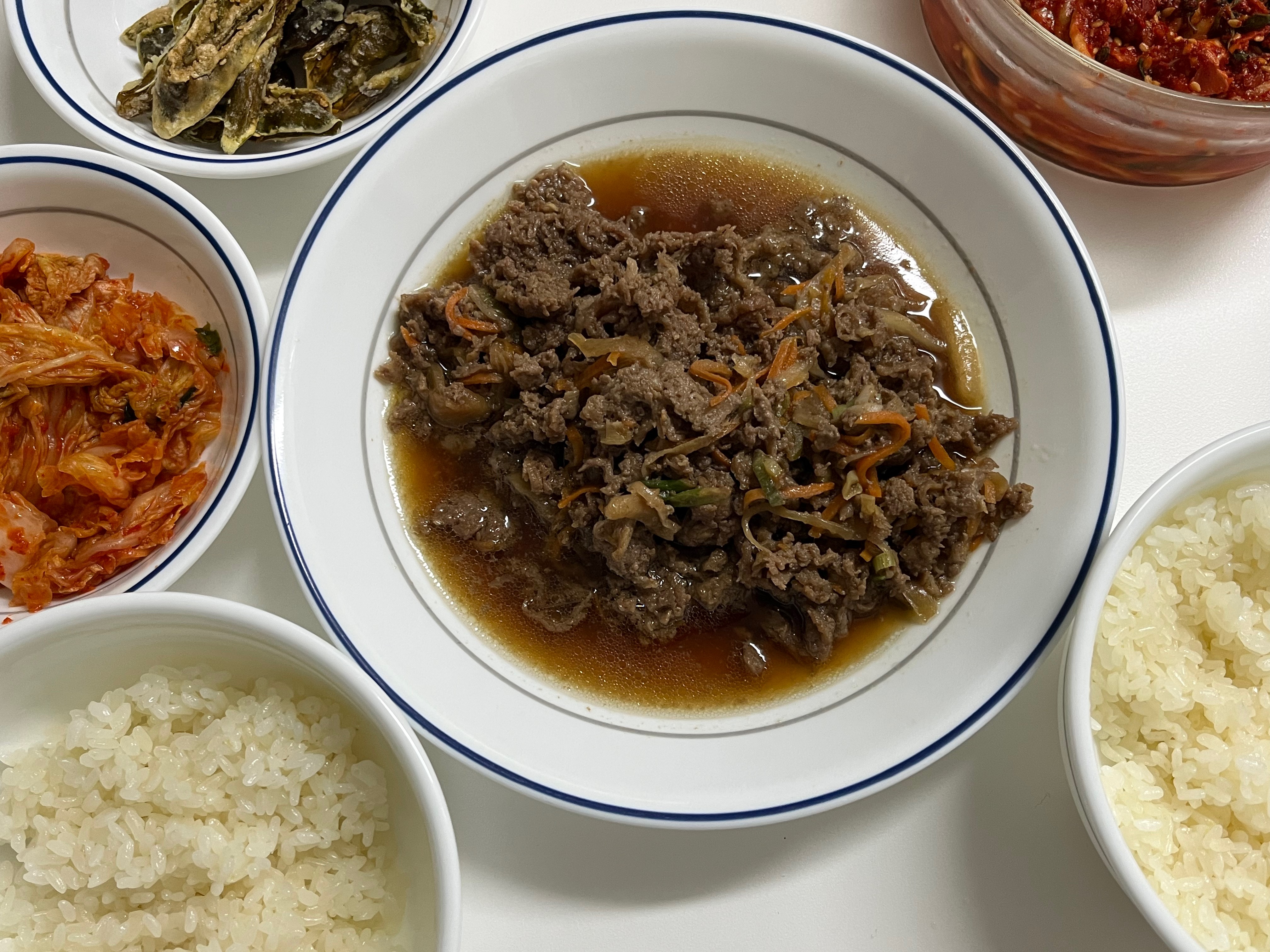 불고기만 놓았을 뿐인데 집 밥이 잔치상같은 느낌이네요.