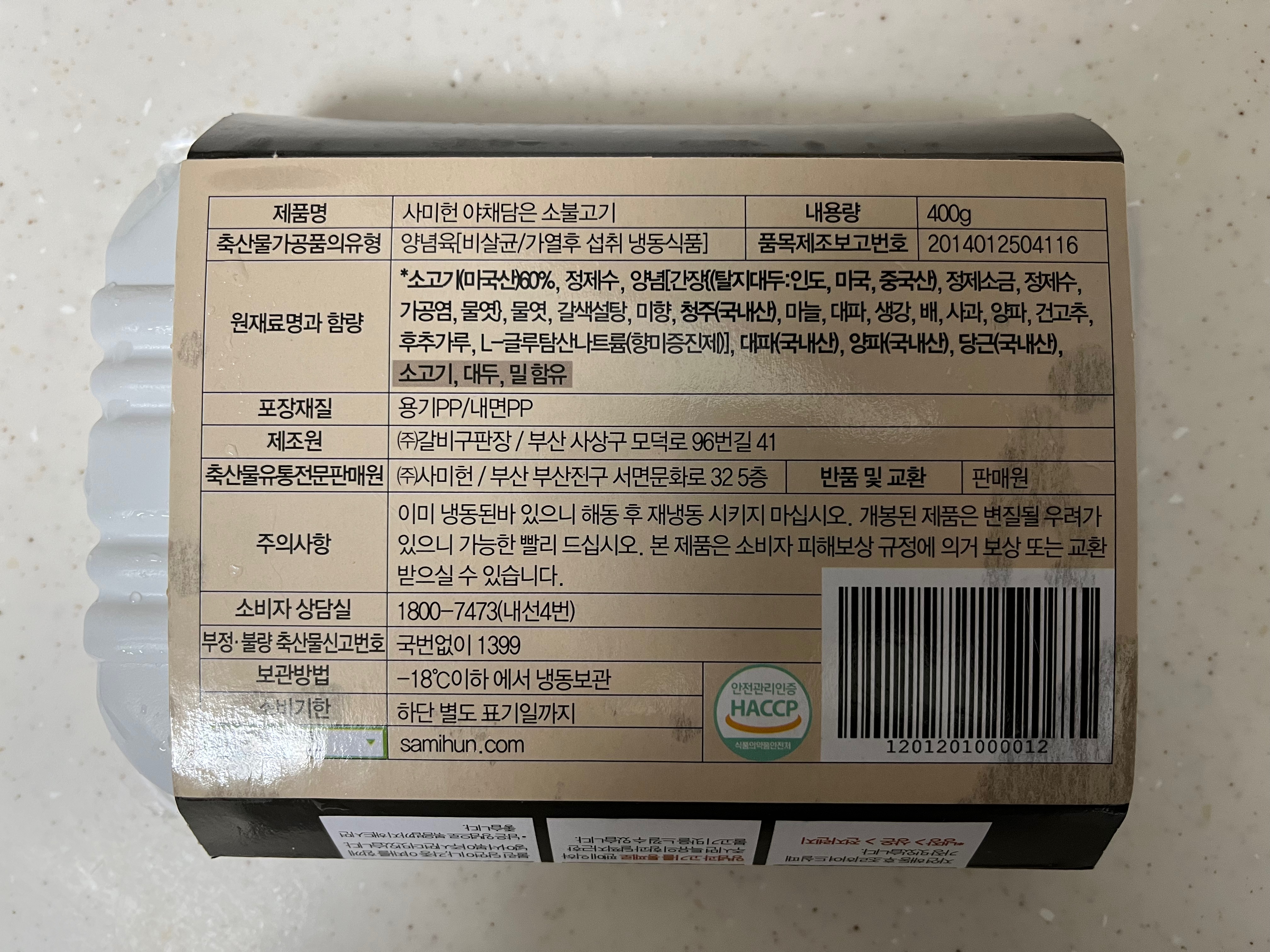 소불고기 원재료명과 함량까지 전부 나와있습니다. 유통기한은 긴 편입니다.