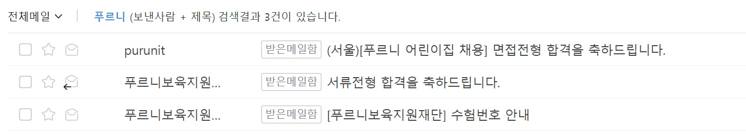 1차 서류를 보고, 면접 후 ~ 어린이집 합격했다고 메일이 옵니다.