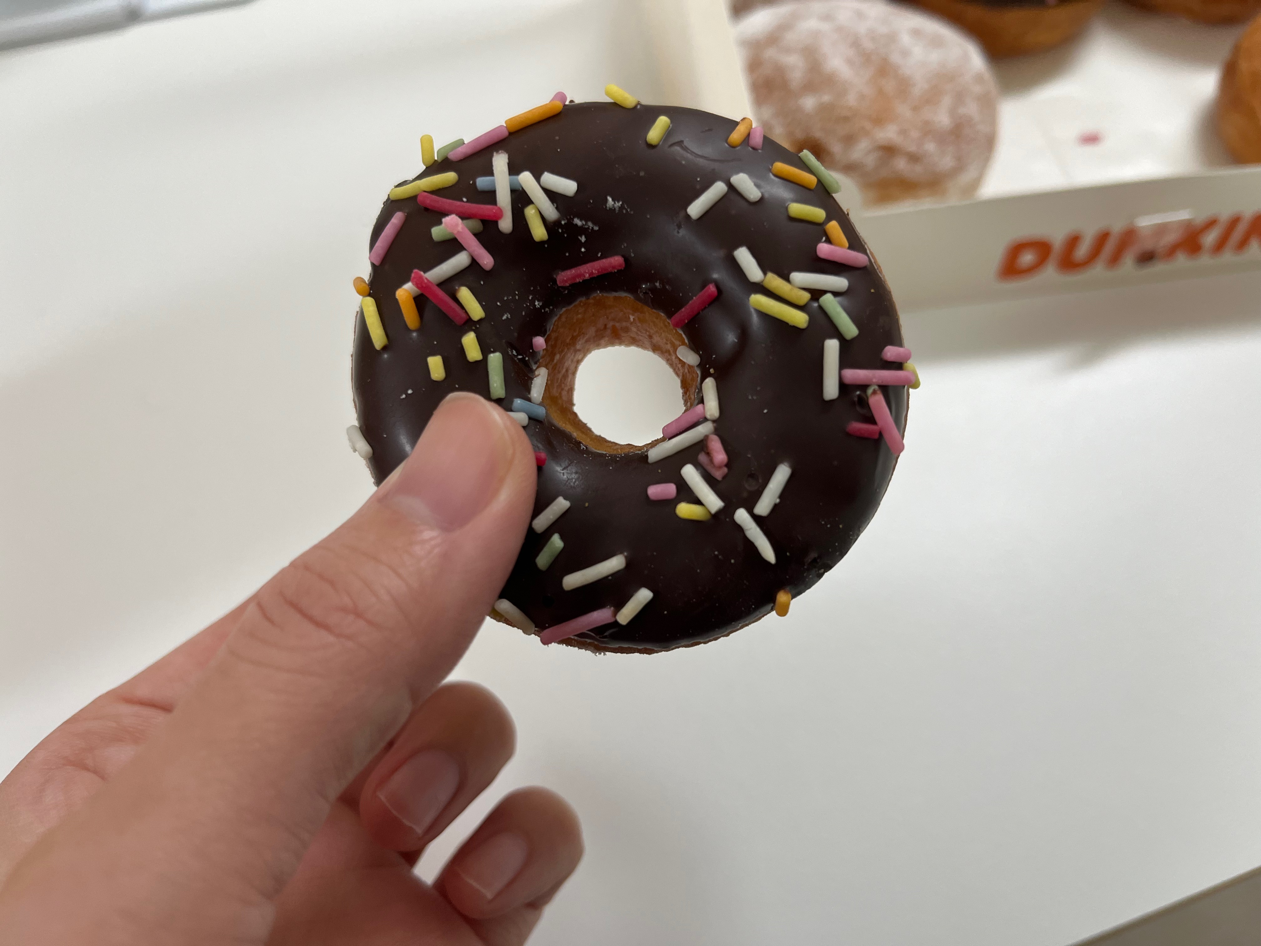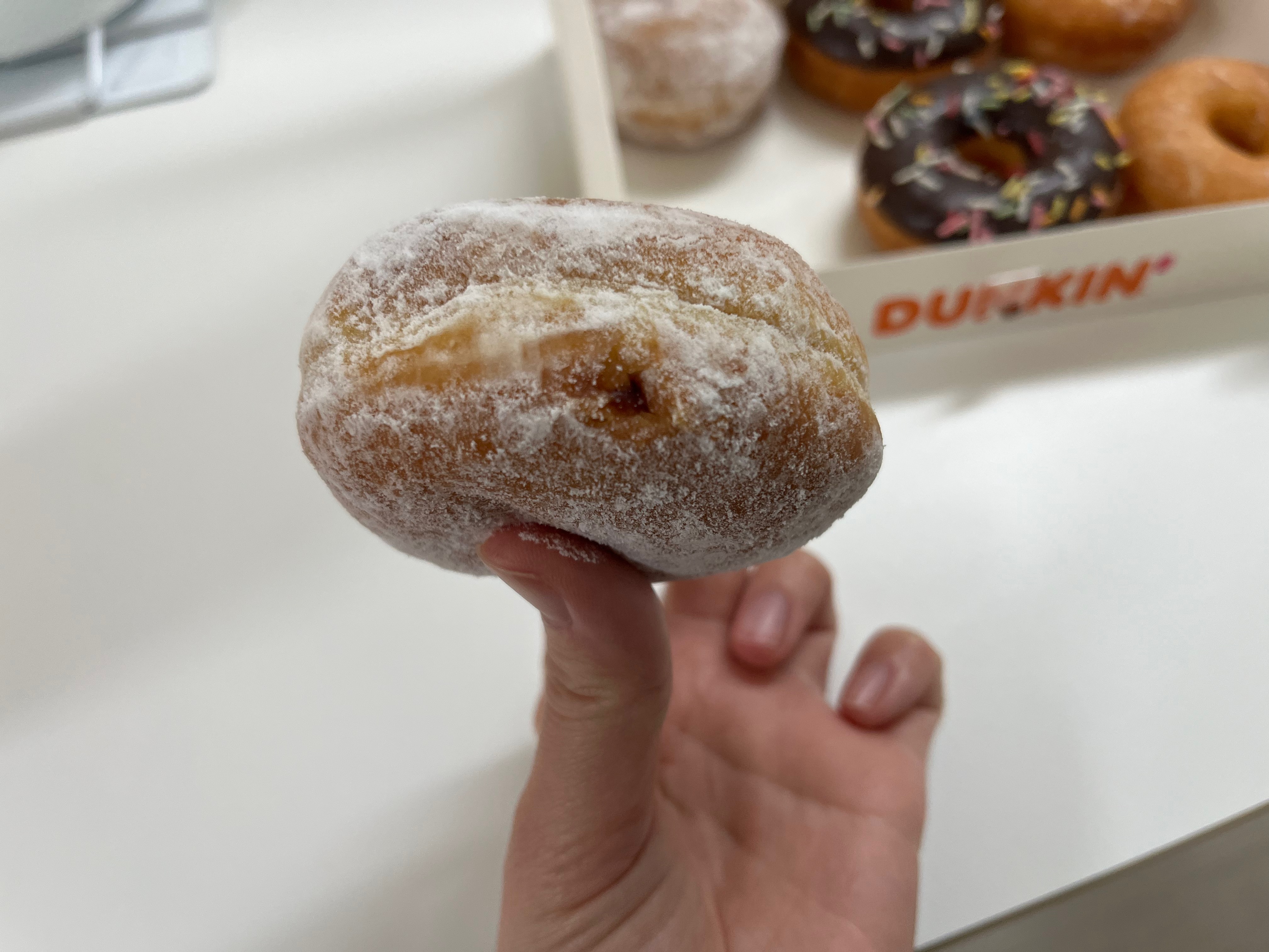 던킨은 겉에 설탕 코팅이 묻혀있지만 단맛이 적은 느낌이라 담백하게 먹을 수 있습니다.