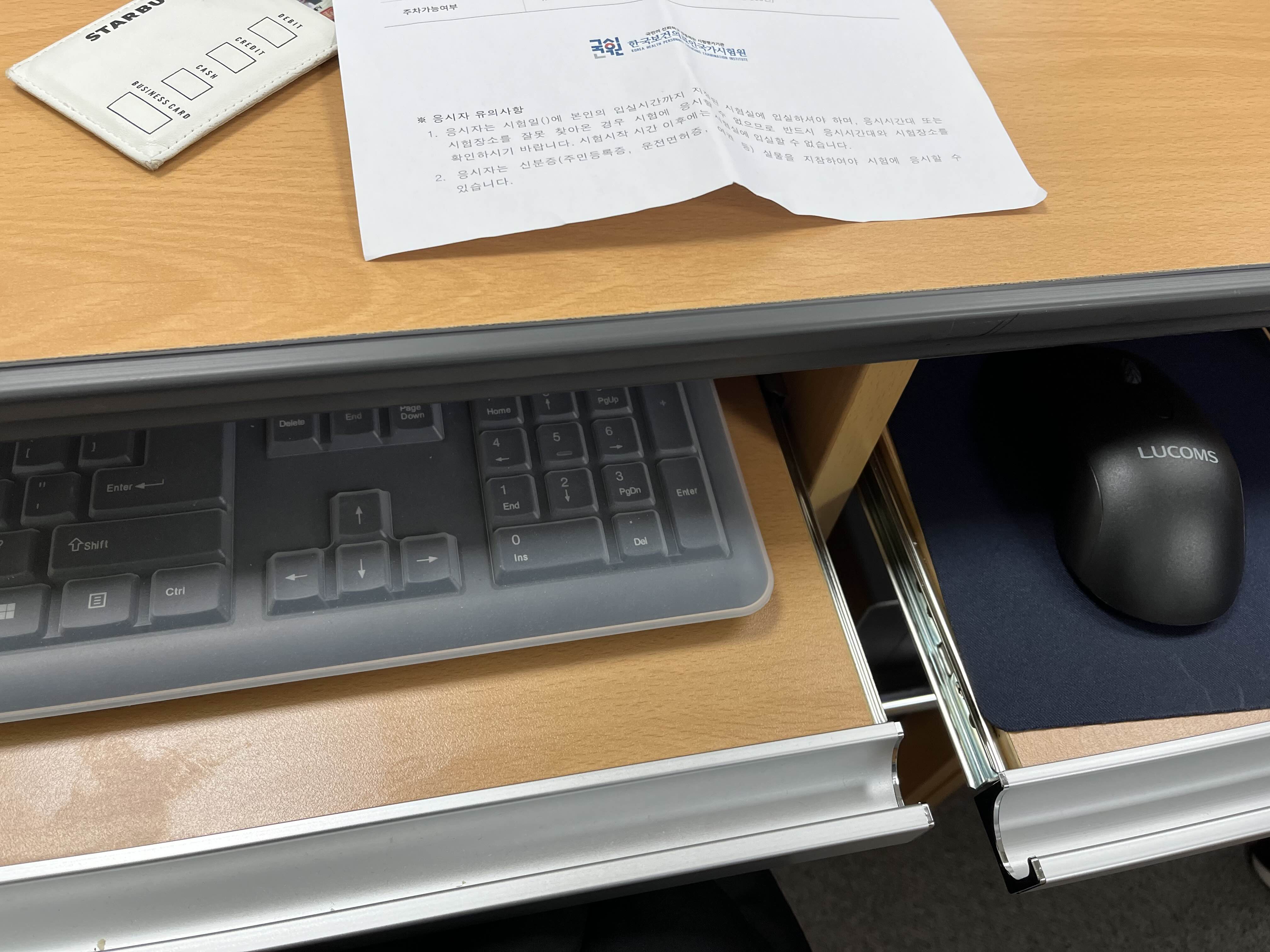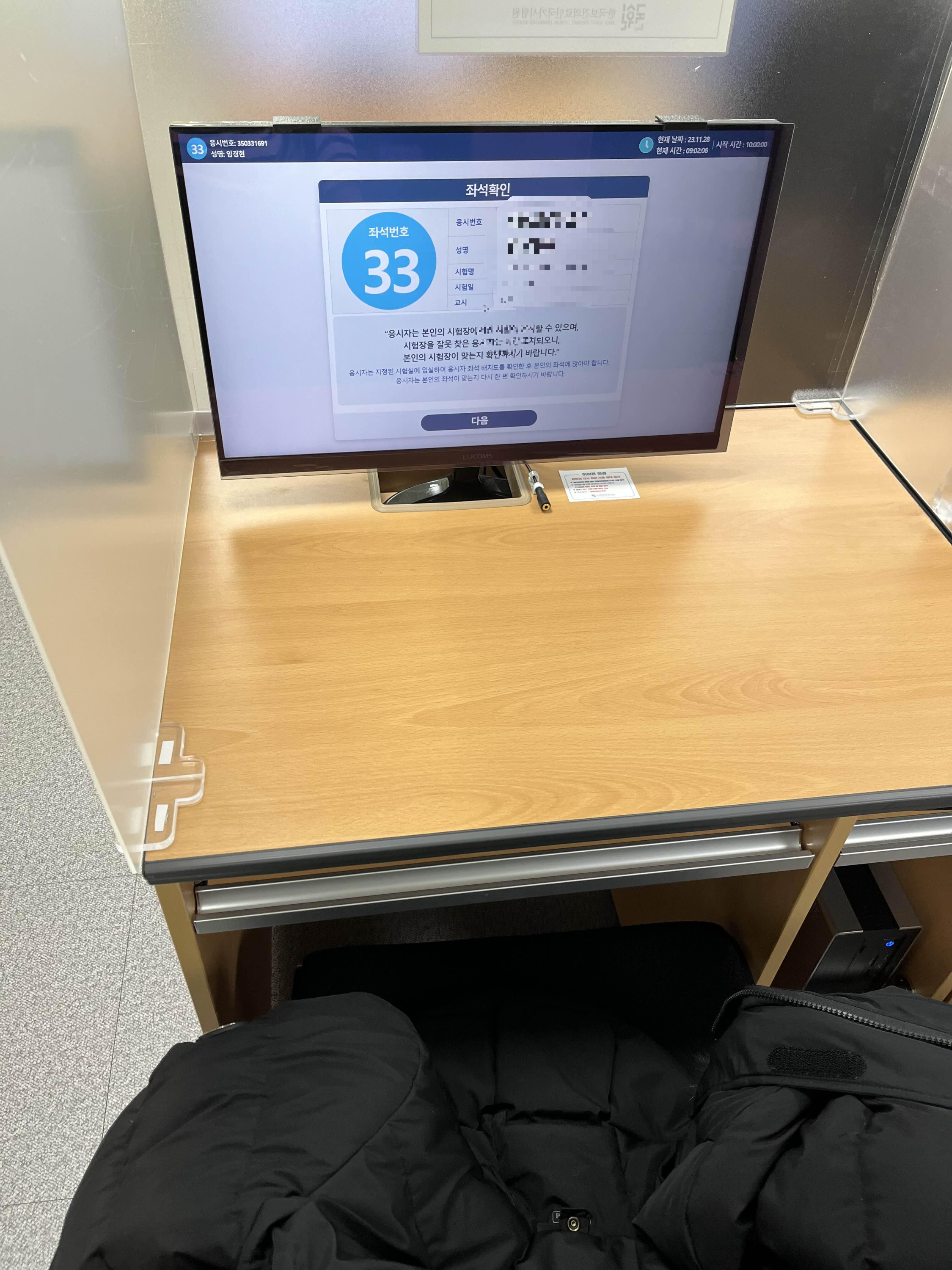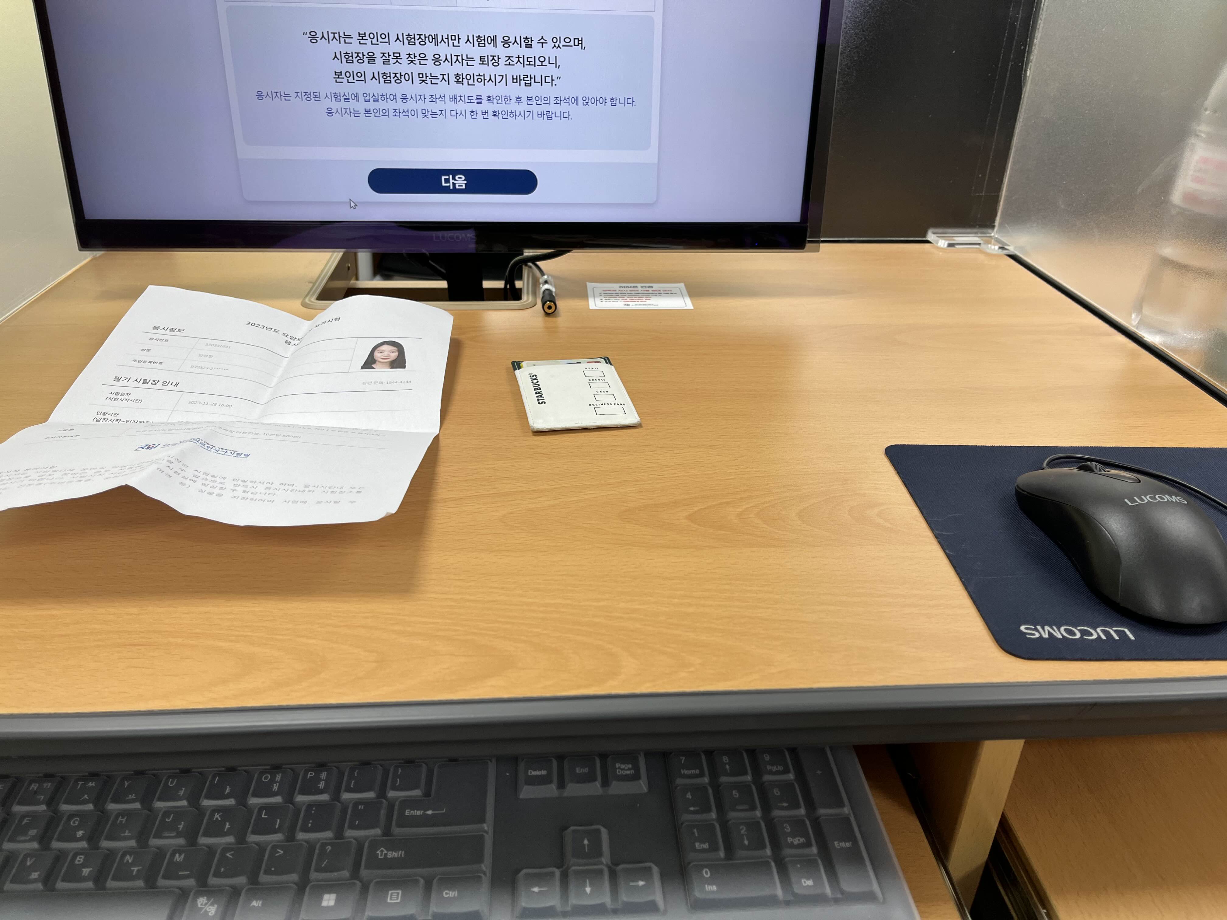 본인 확인을 위해 신분증은 컴퓨터 책상에 올려 놓은 후, 마이크로 설명해주시는 선생님께서 번호를 부르십니다.